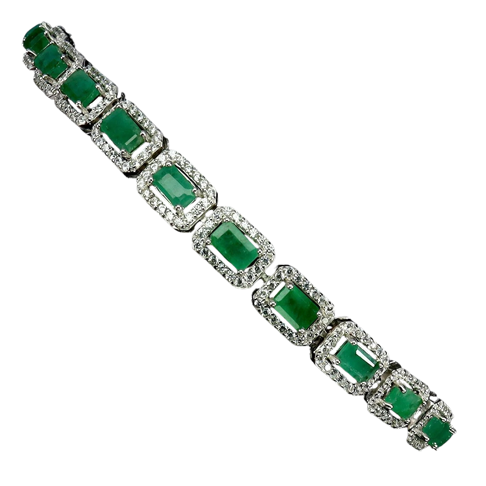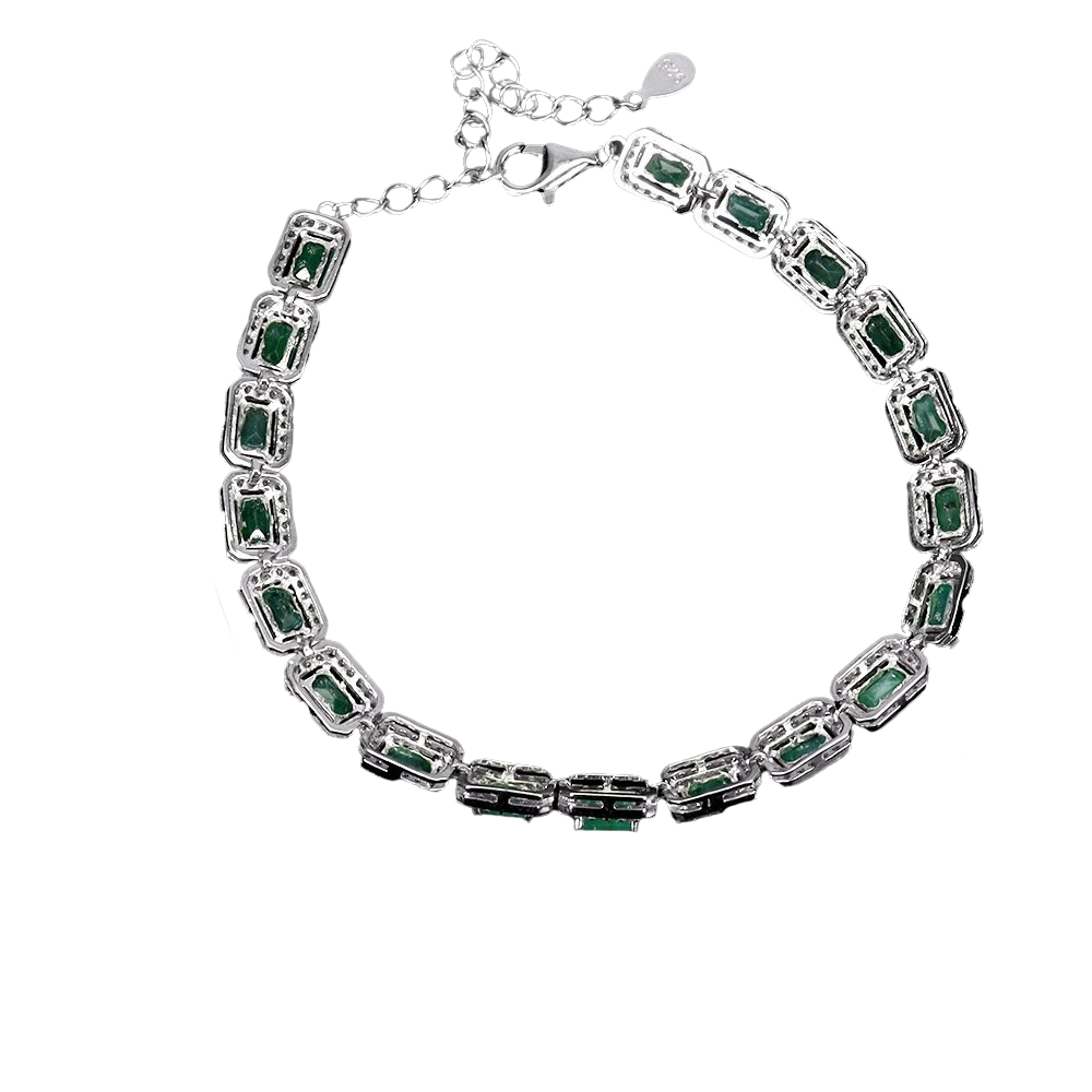 Bijuterii argint,: Bratara, argint 925 aurita cu aur alb de 14k, cu pietre naturale: smarald; cz.