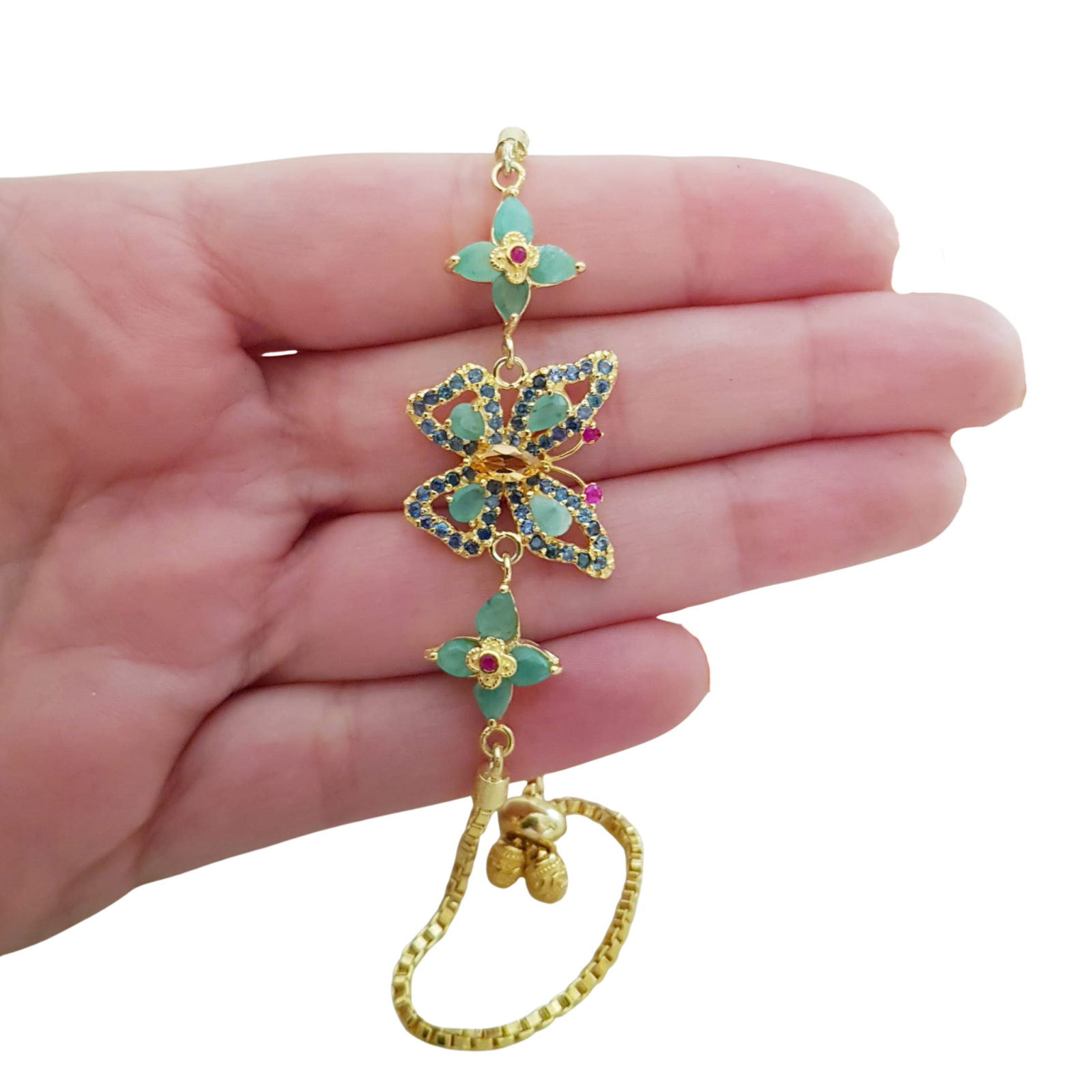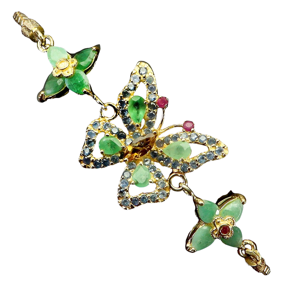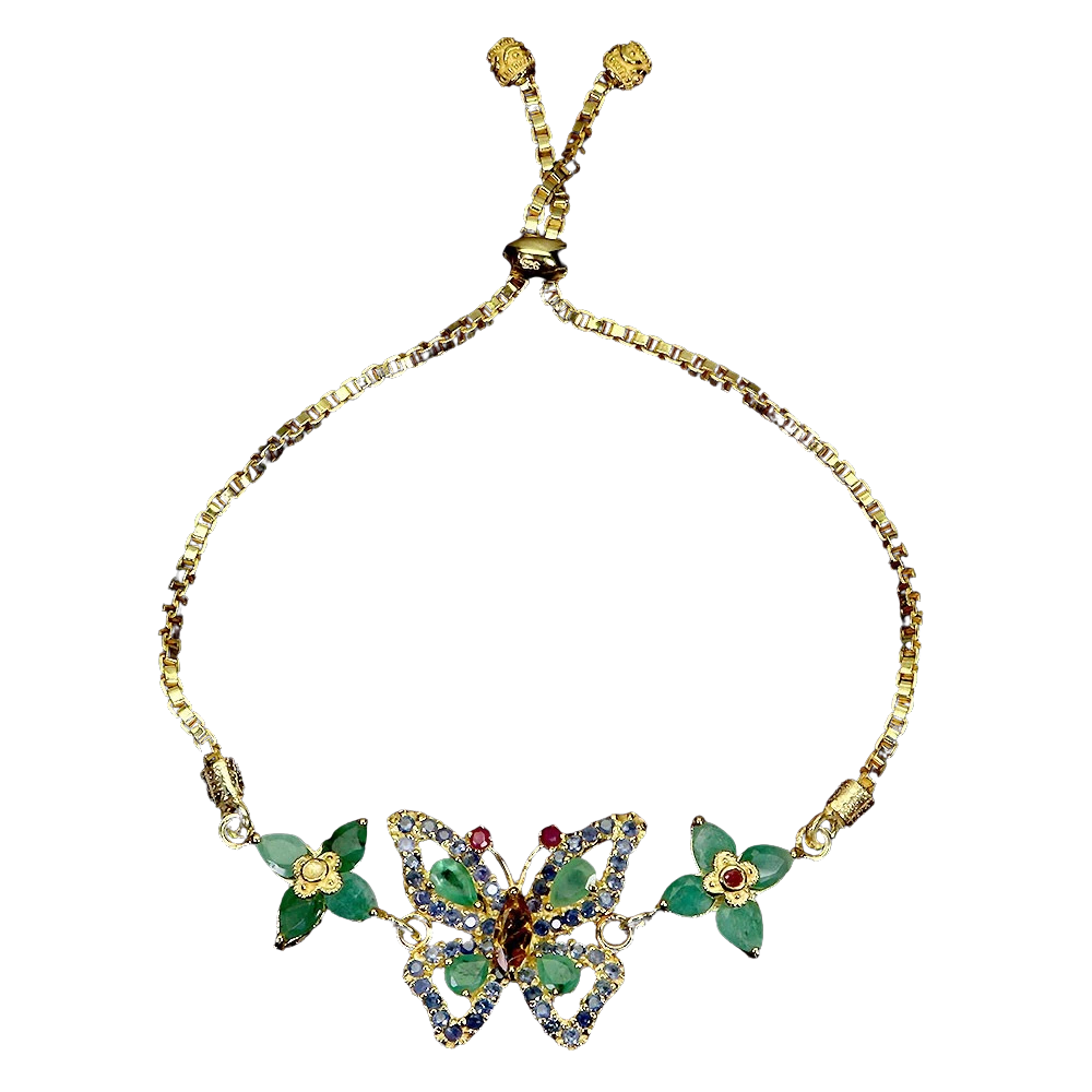 Bijuterii argint,: Bratara, argint 925 aurita cu aur galben de 14k, cu pietre naturale: smarald, safir, rubin si citrin.