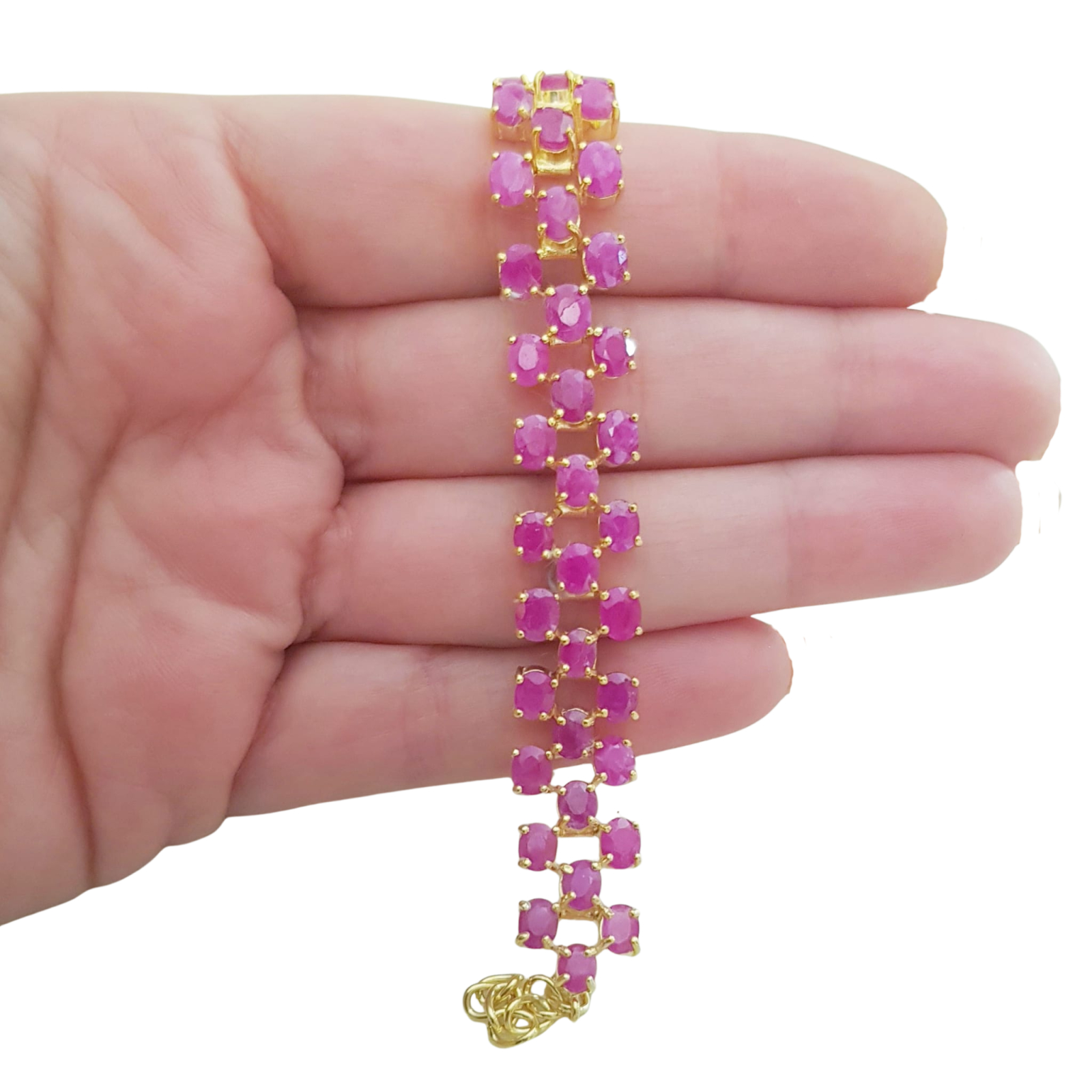 Bijuterii argint,: Bratara, argint 925 aurita cu aur galben de 14k, cu pietre naturale: rubin.