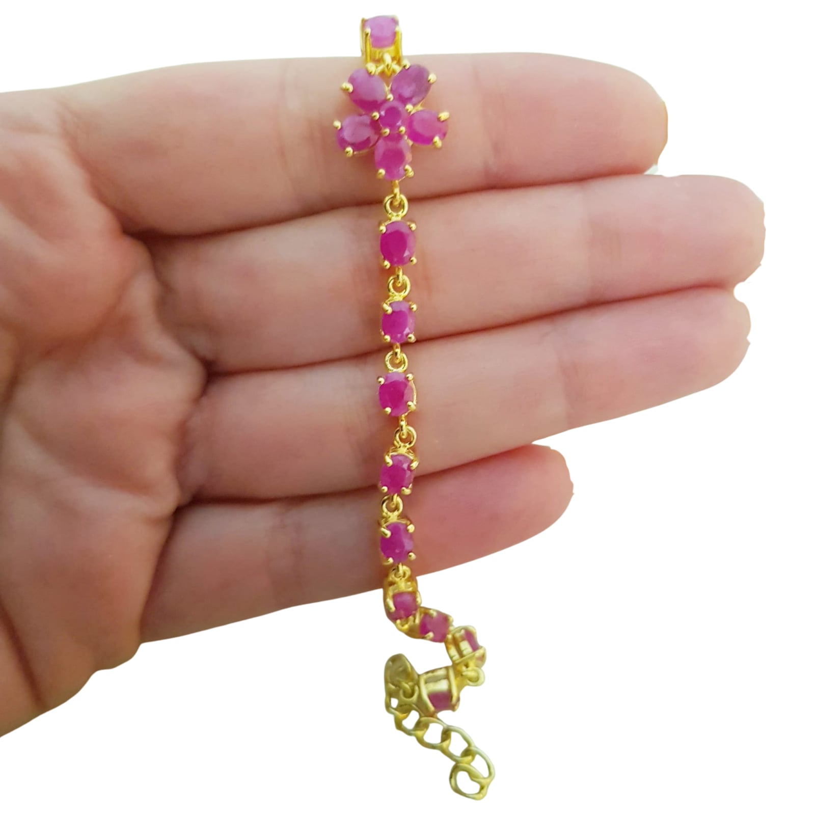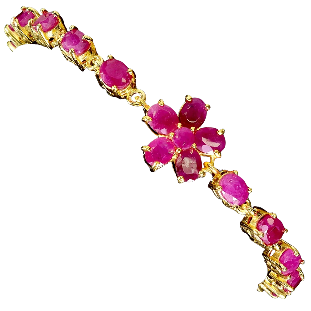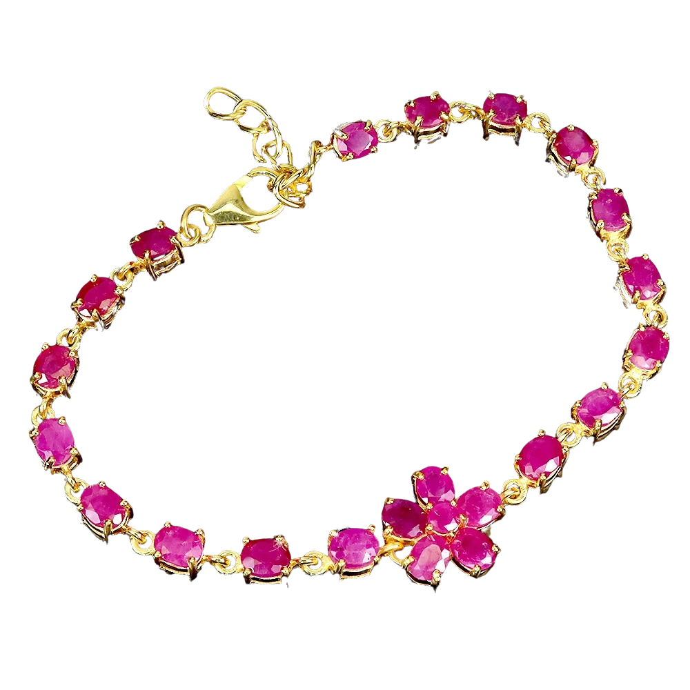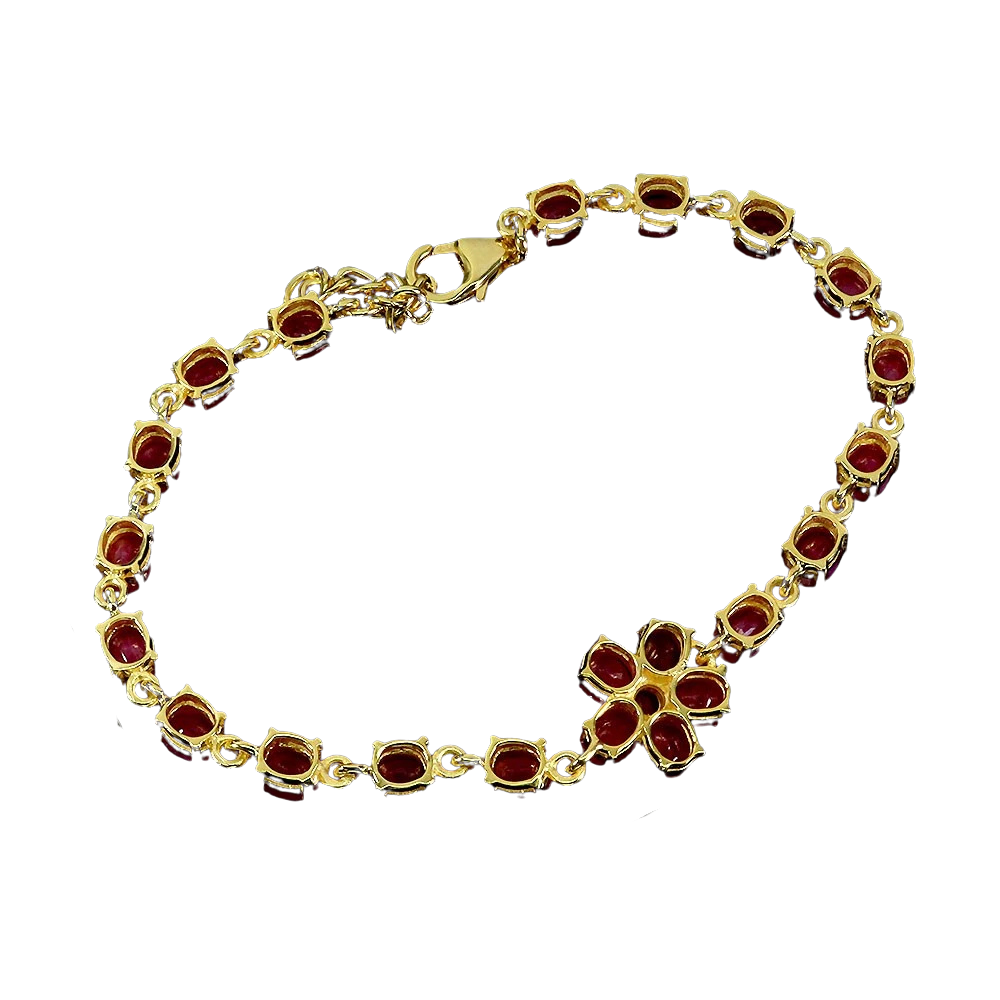 Bijuterii argint,: Bratara, argint 925 aurita cu aur galben de 14k, cu pietre naturale: rubin.