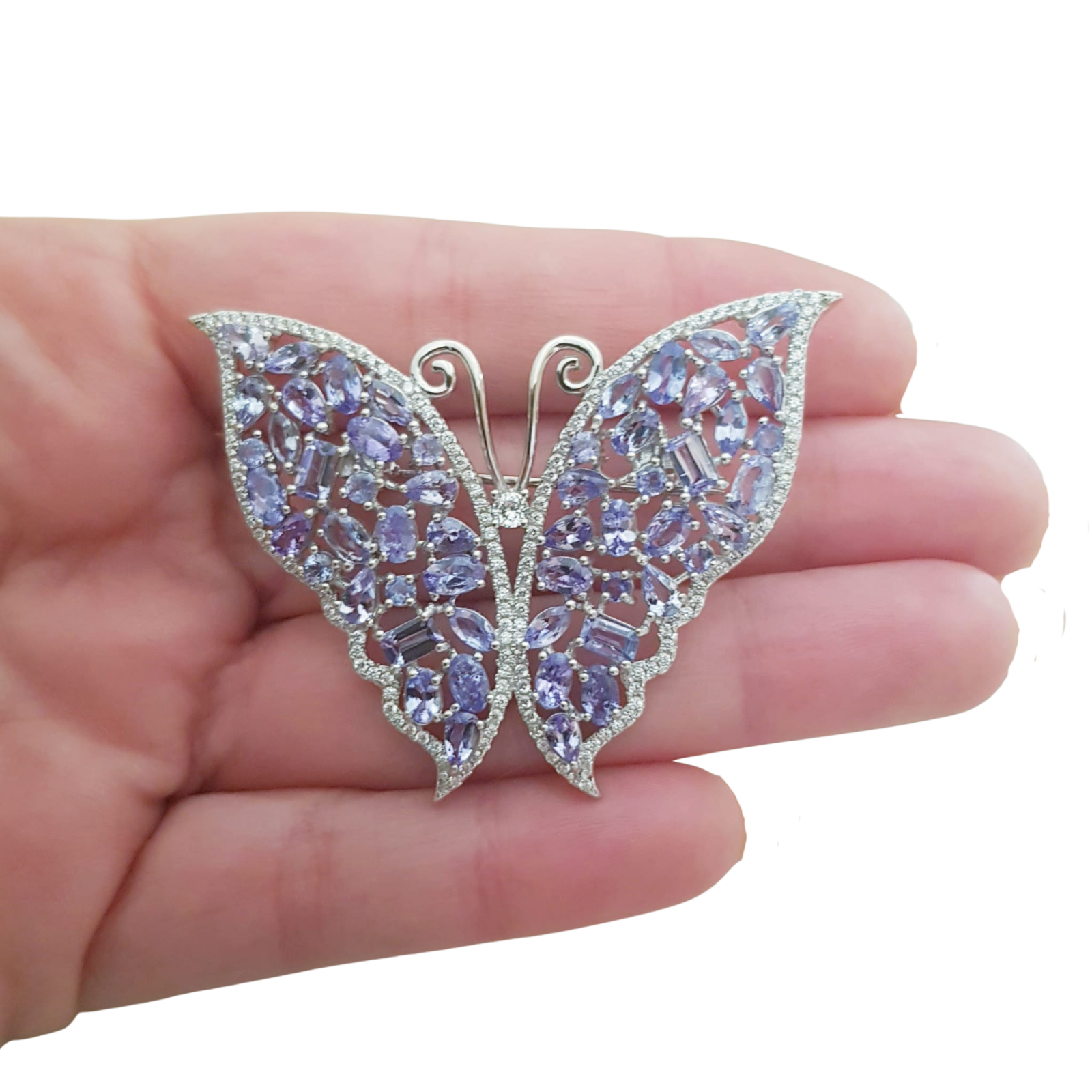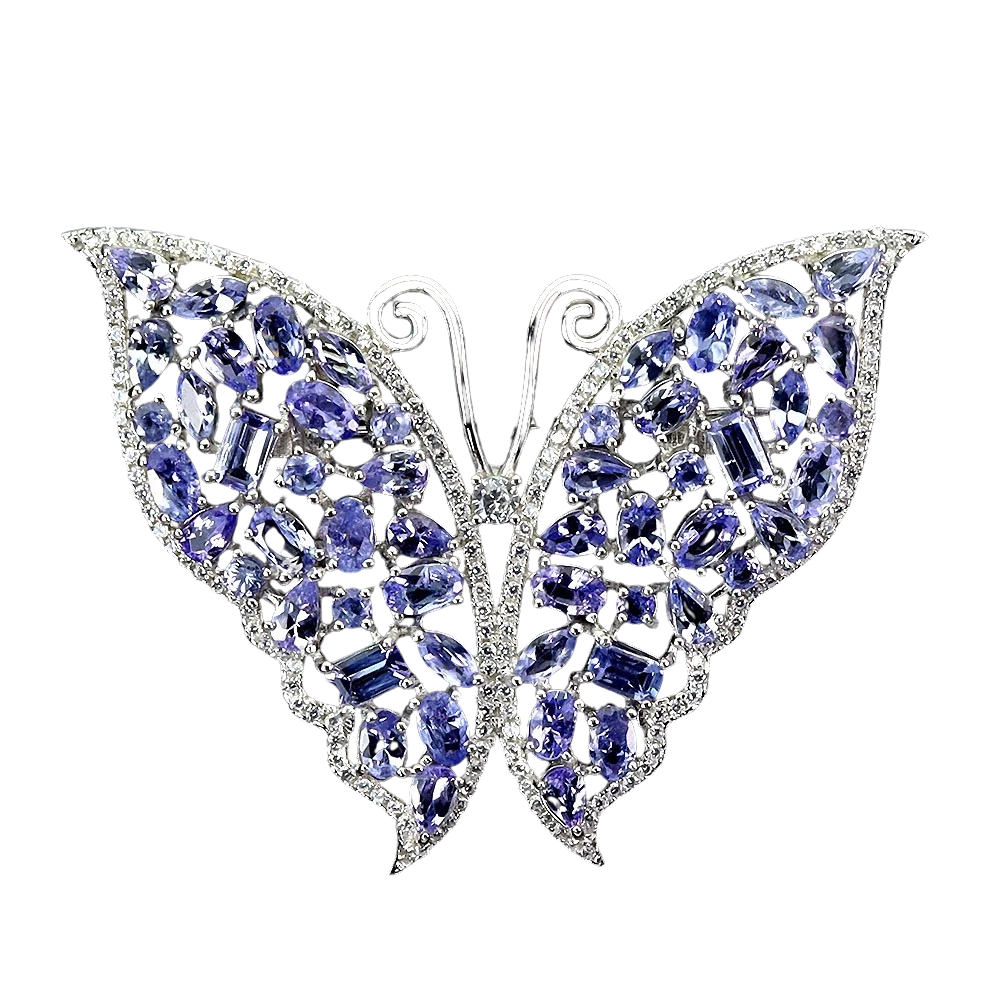 Bijuterii argint,: Brosa, argint 925, aurit cu aur alb de 14k cu pietre: tanzanit; cz. .