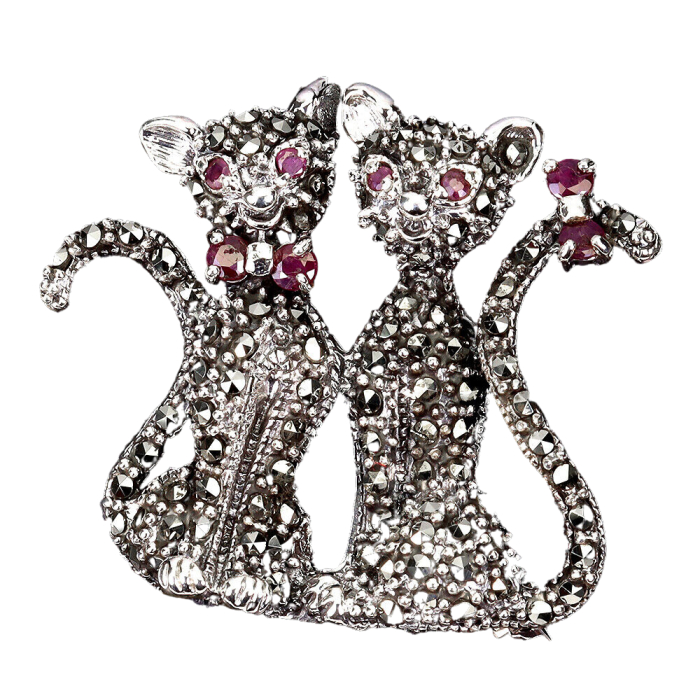 Bijuterii argint,: Brosa, argint 925, matuit cu pietre naturale: marcasite , smarald si rubin.