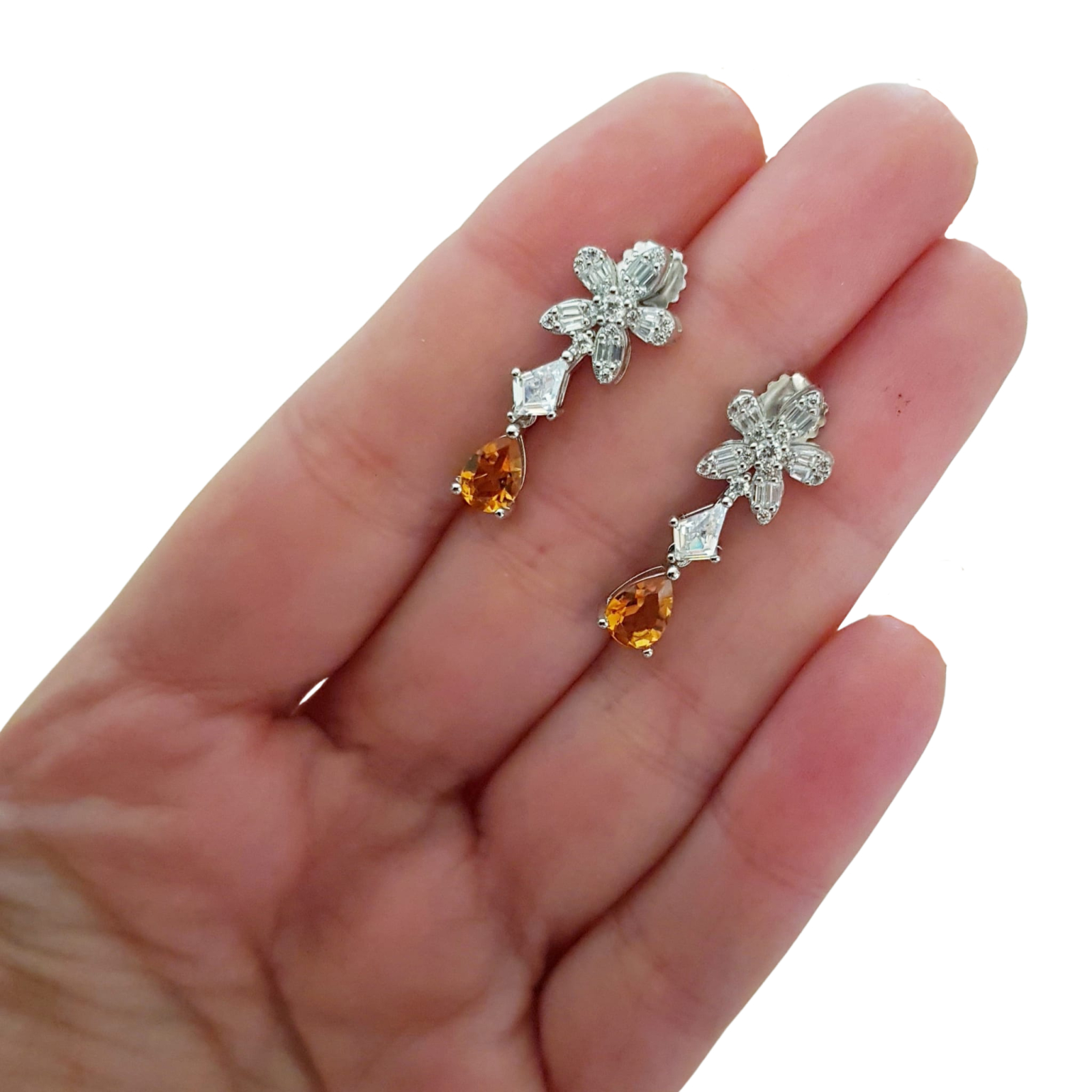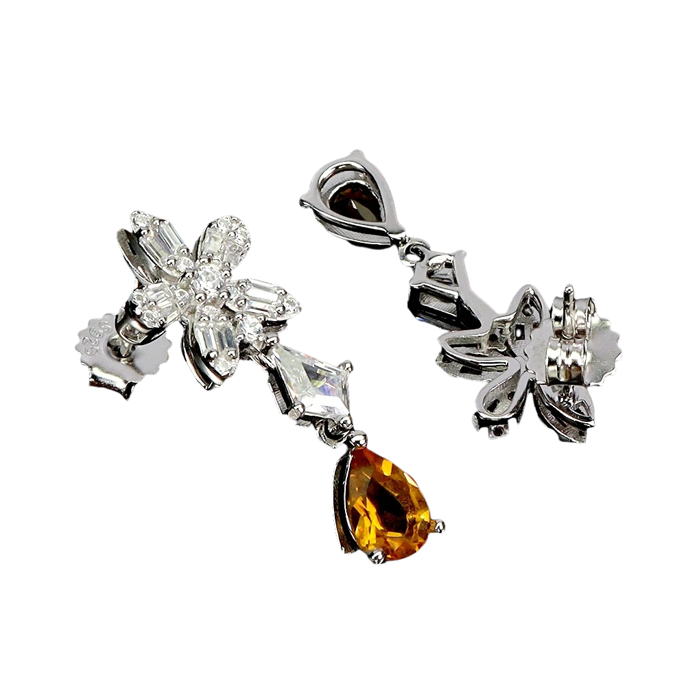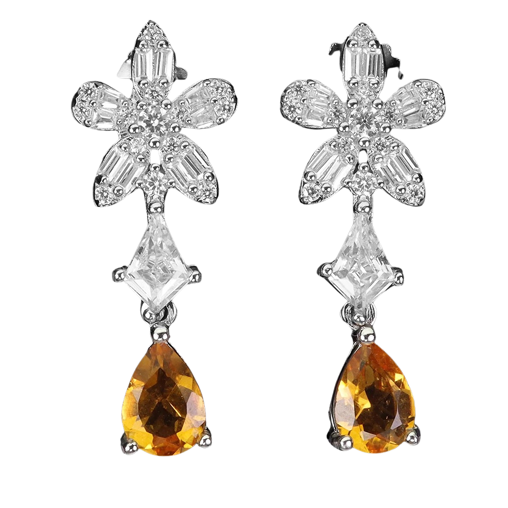 Bijuterii argint,: Cercei argint, 925, aurit cu aur alb de 14k, cu pietre naturale: citrin; cz.