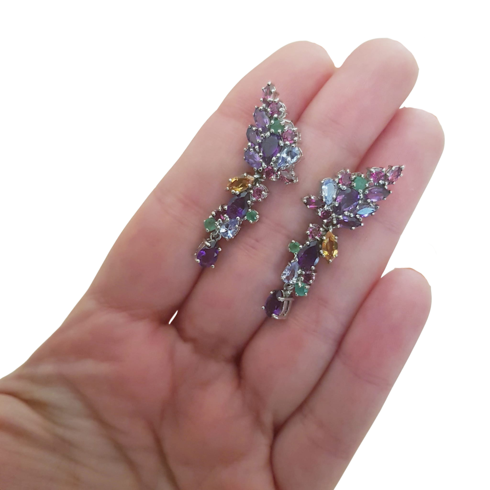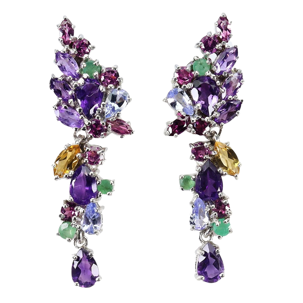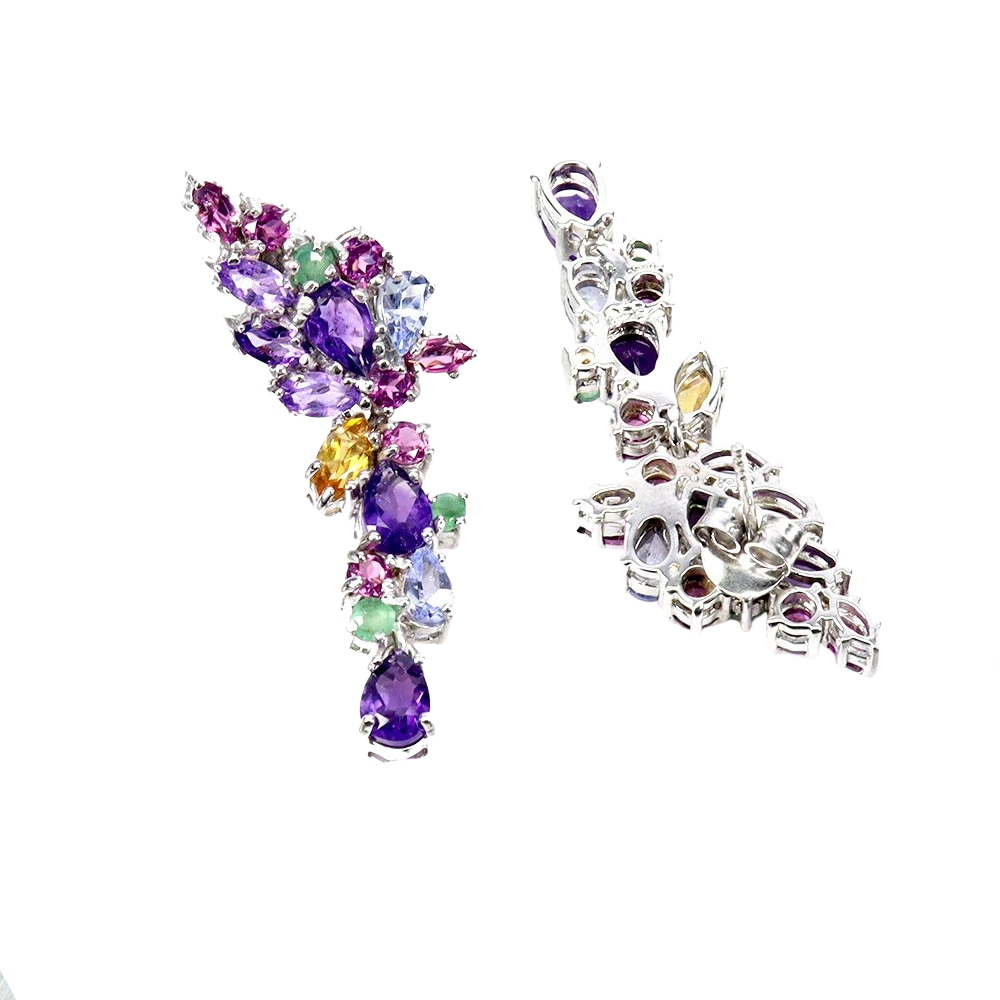 Bijuterii argint,: Cercei argint, 925, aurit cu aur alb de 14k, cu pietre naturale: ametist, granat, citrin topaz si smarald.