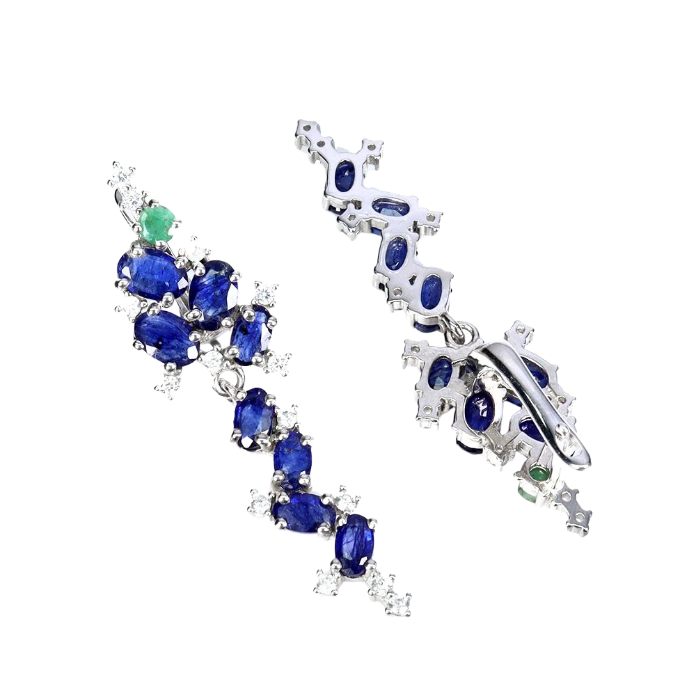 Bijuterii argint,: Cercei argint, 925, aurit cu aur alb de 14k, cu pietre naturale: safir si smarald; cz.