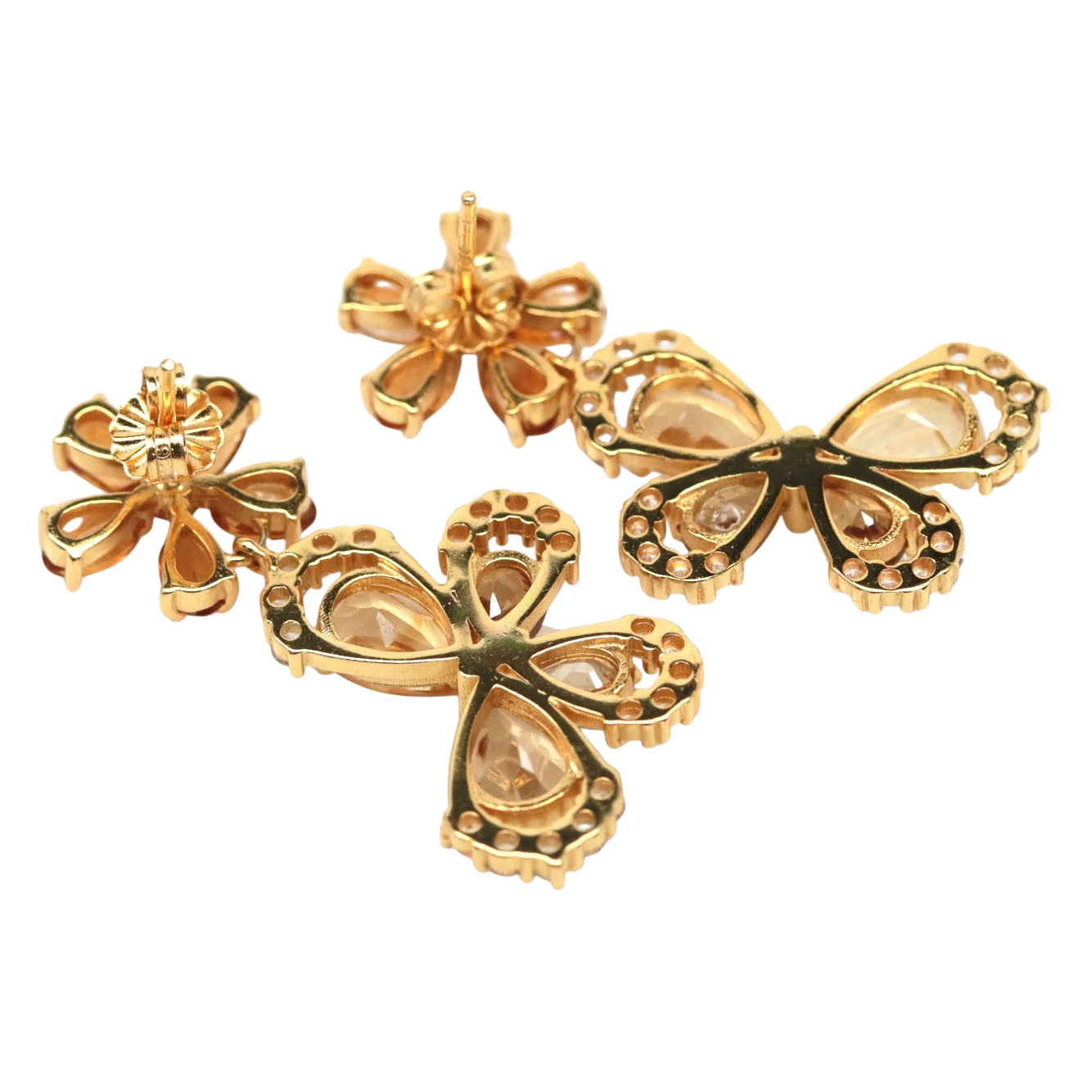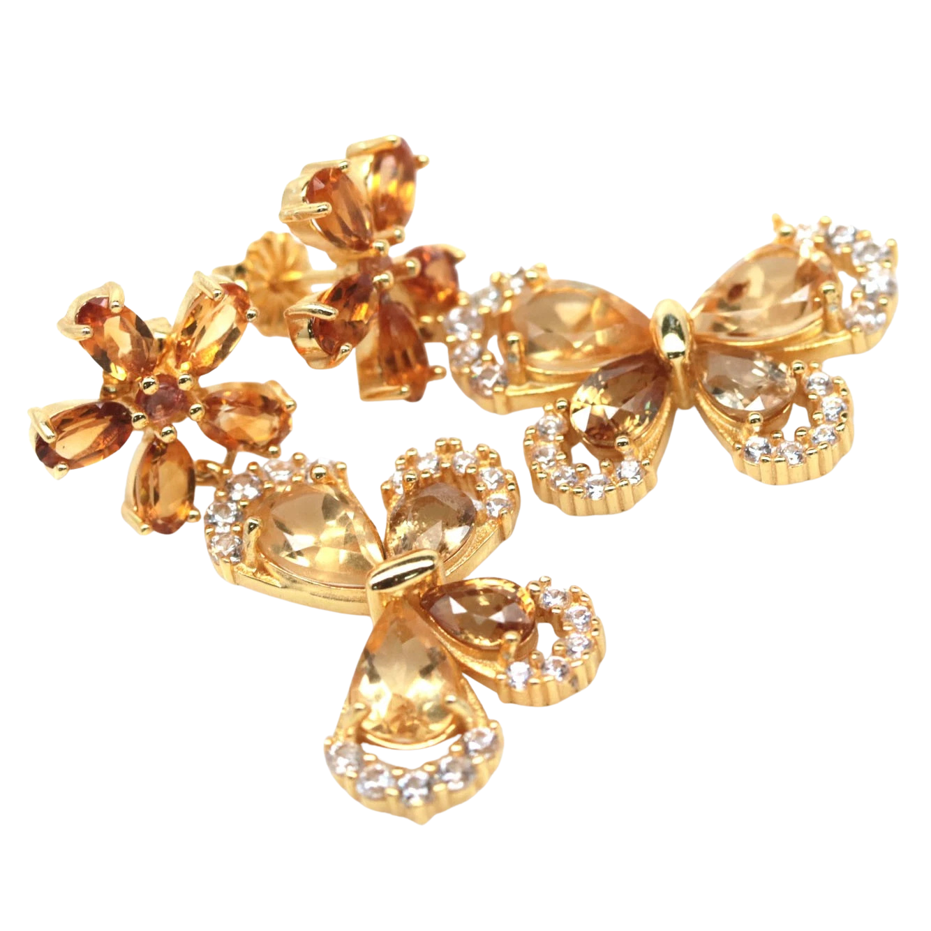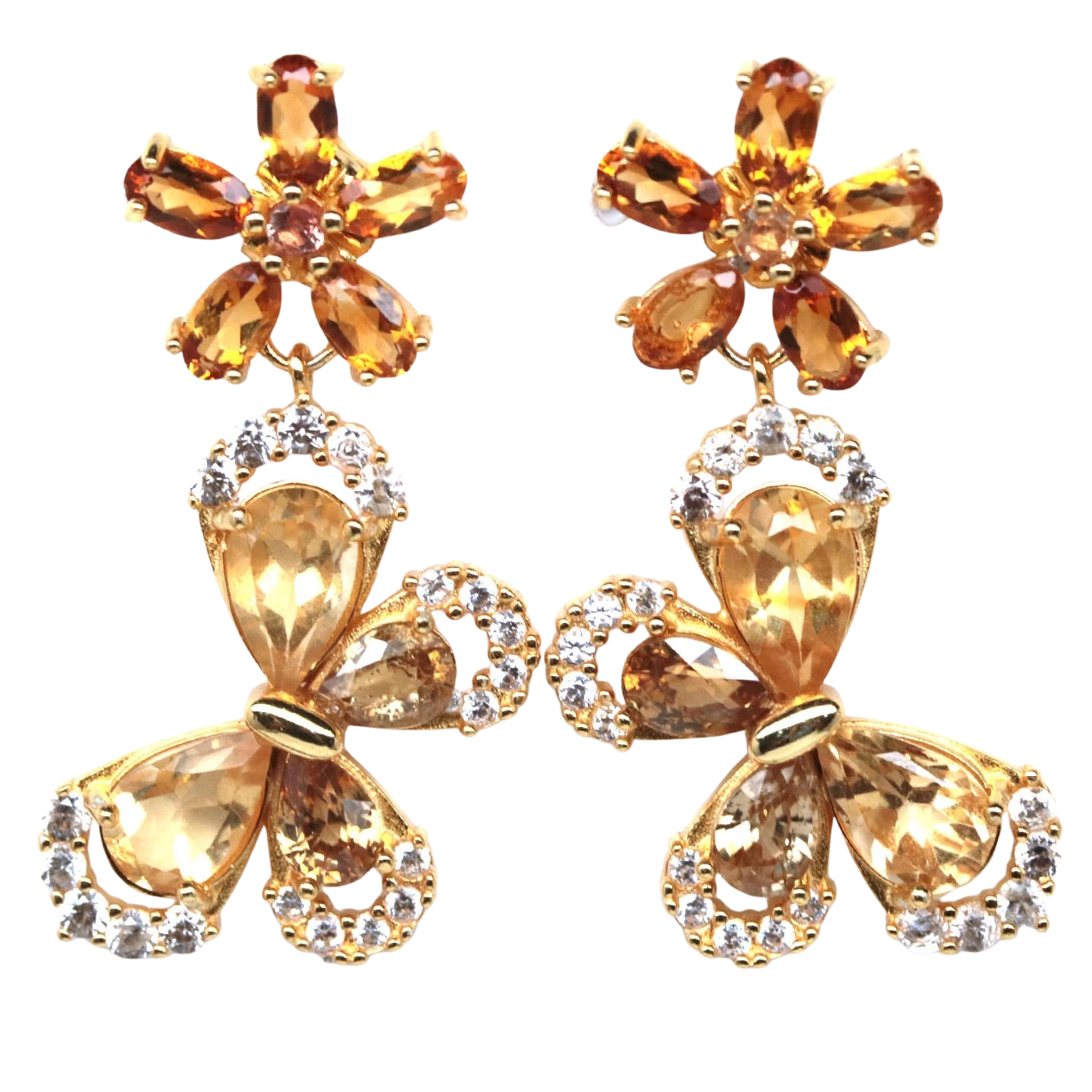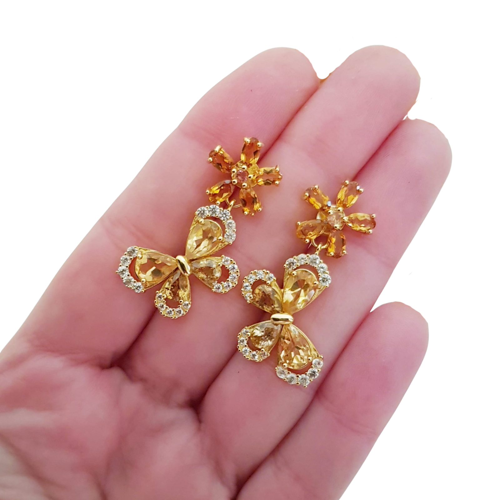 Bijuterii argint,: Cercei argint, 925, aurit cu aur galben de 14k, cu pietre naturale: citrin; cz.