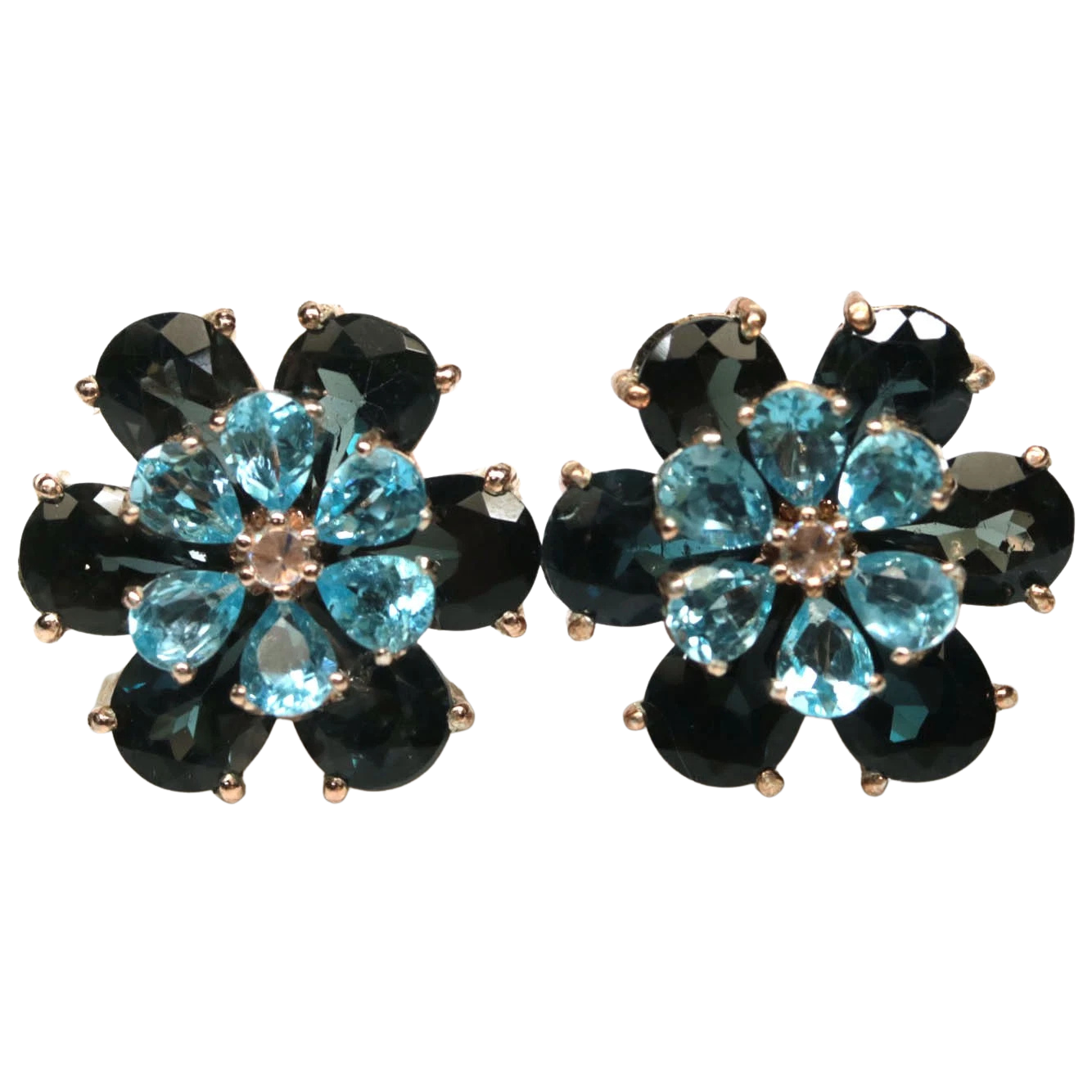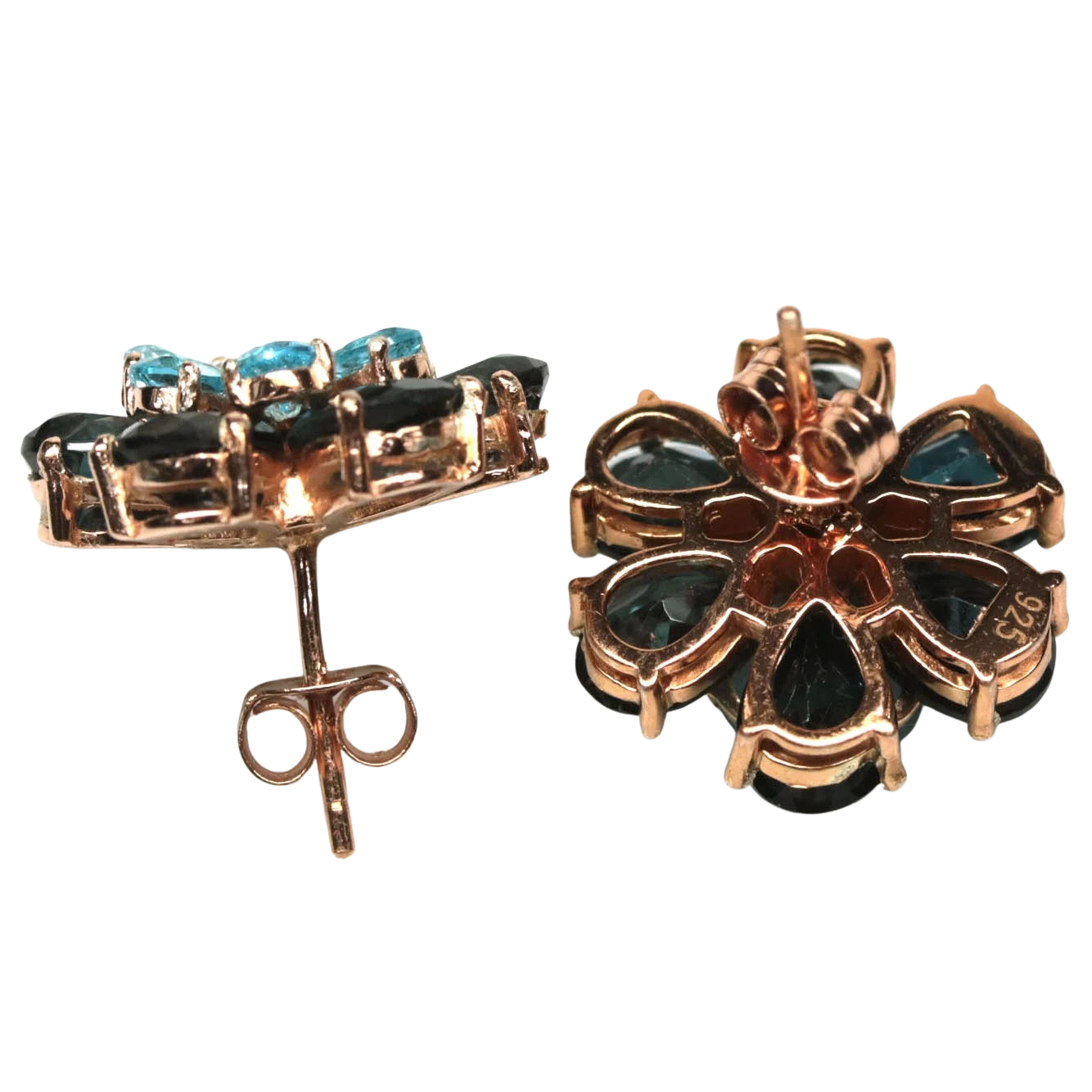 Bijuterii argint,: Cercei argint, 925, aurit cu aur galben de 14k, cu pietre naturale: safir si topaz.