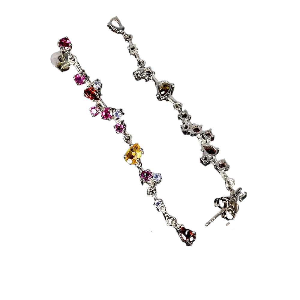 Bijuterii argint,: Cercei argint, 925, aurit cu aur alb de 14k, cu pietre naturale: tanzanit, granat, crom-diopsid si citrin.