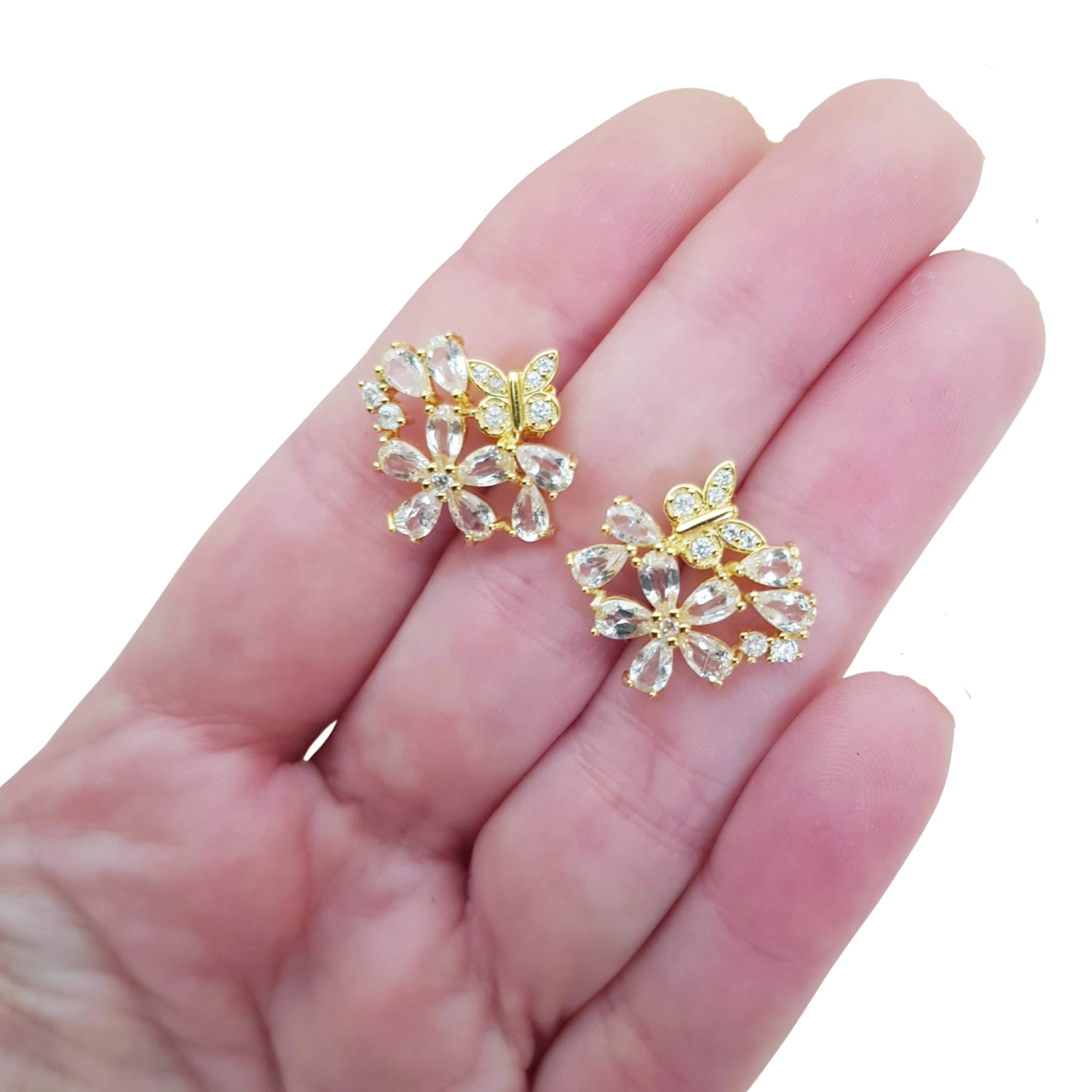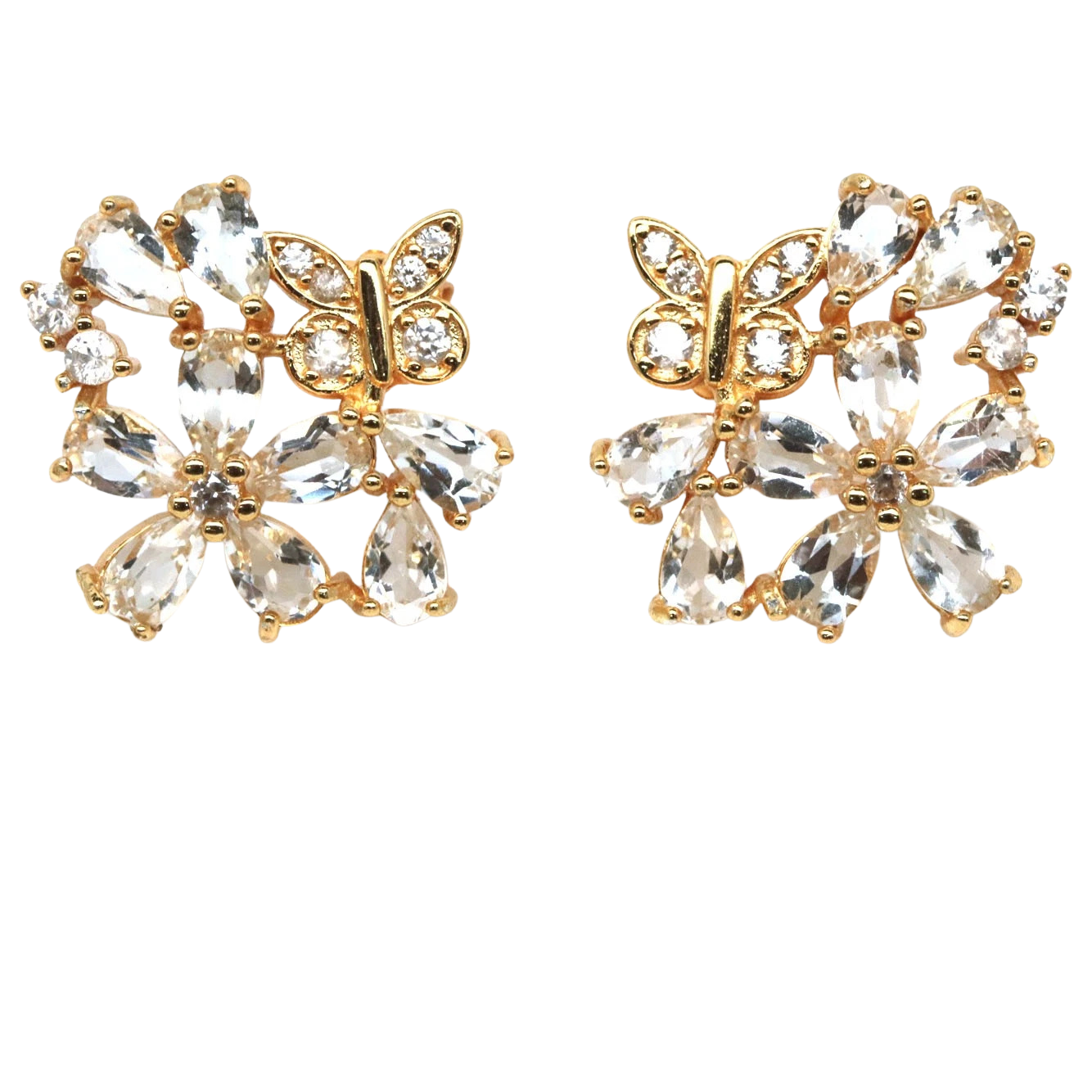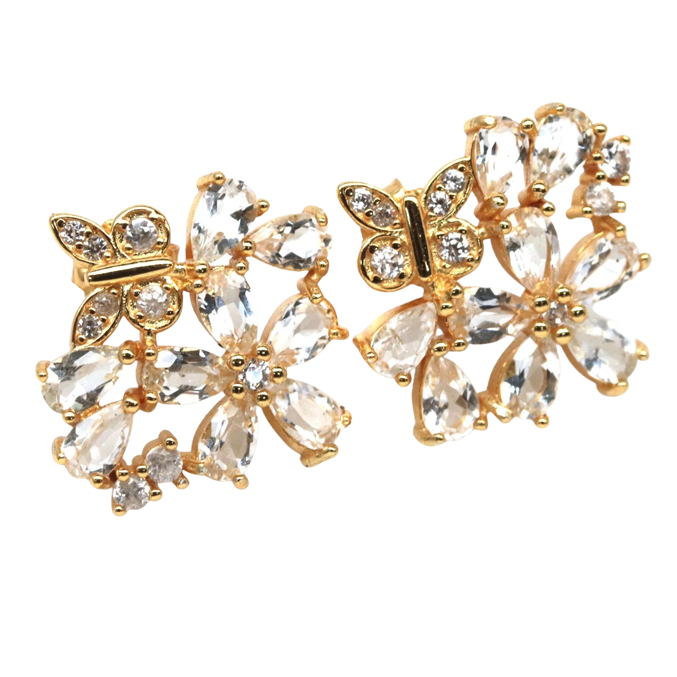 Bijuterii argint,: Cercei argint, 925, aurit cu aur alb de 14k, cu pietre naturale: topaz alb; cz..