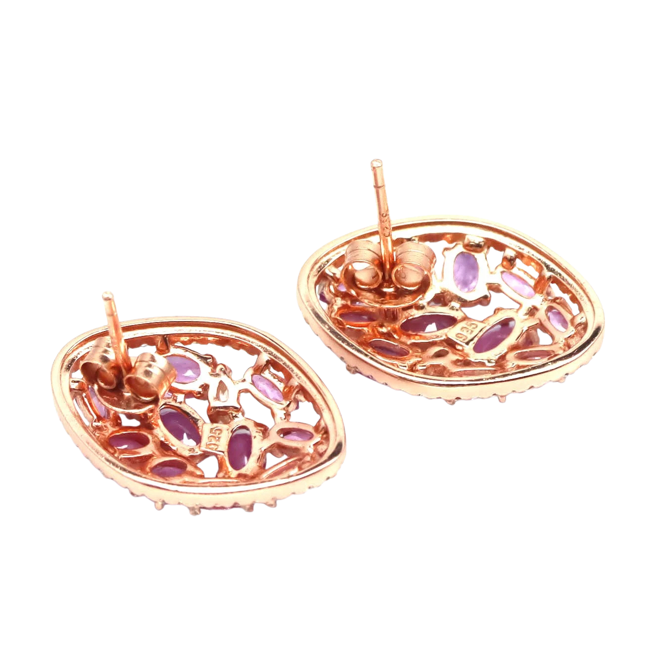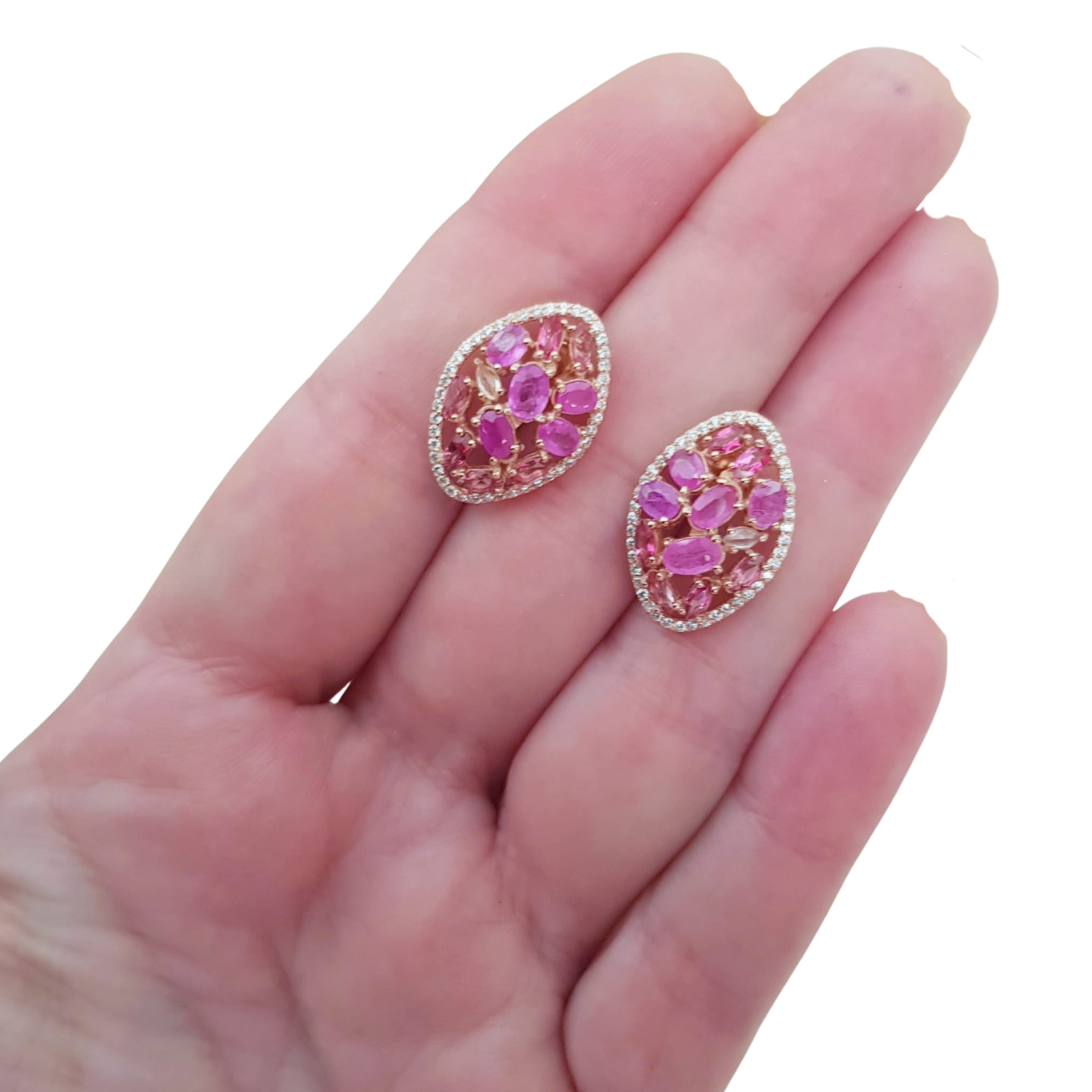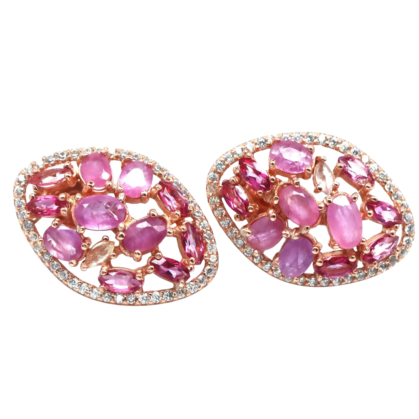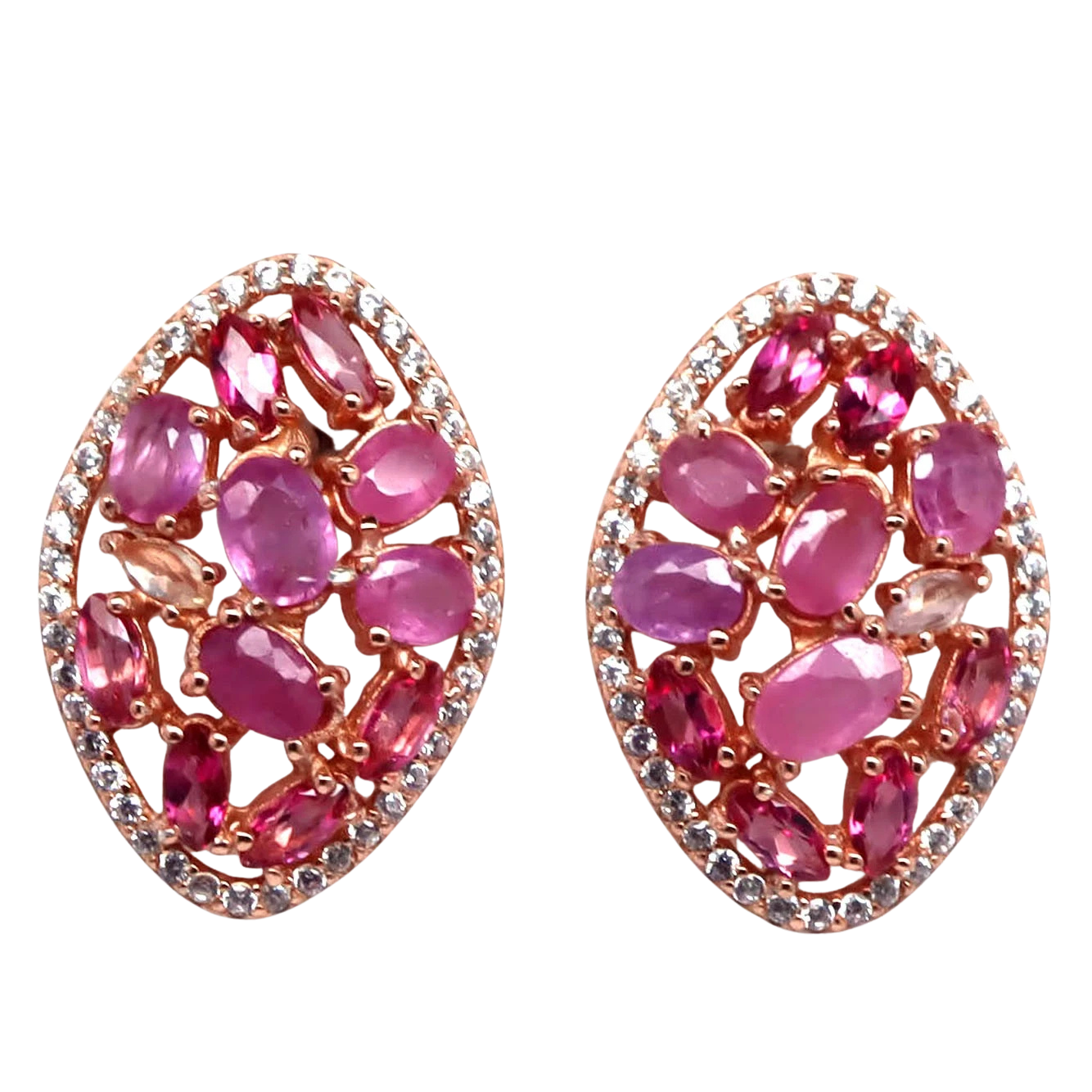 Bijuterii argint,: Cercei argint, 925, aurit cu aur roz de 14k, cu pietre naturale: rubin, topaz (trat.) si turmalina; cz..