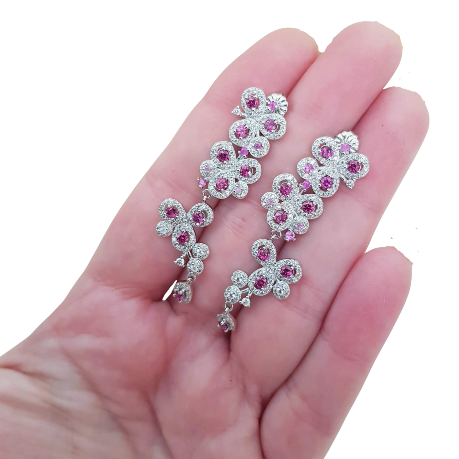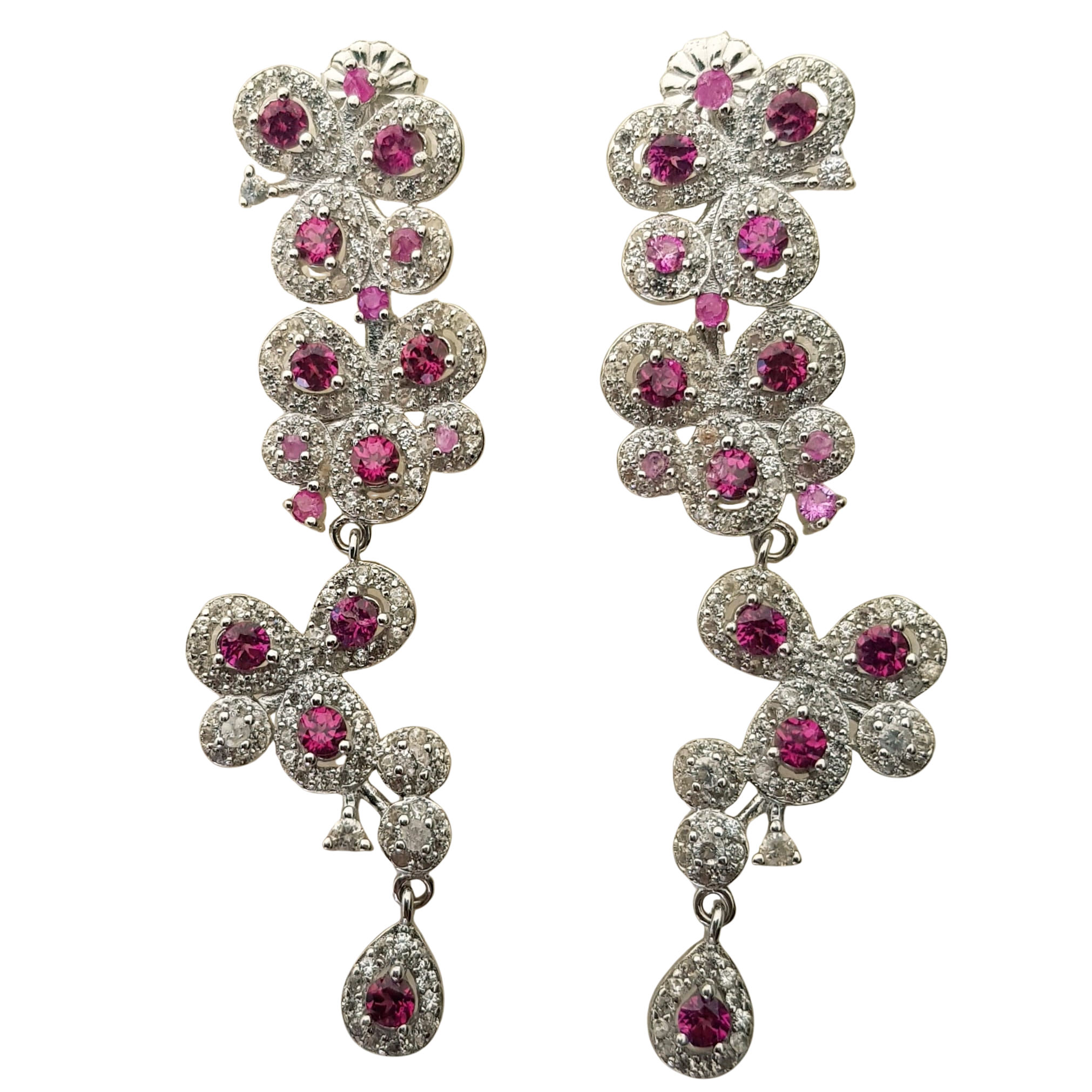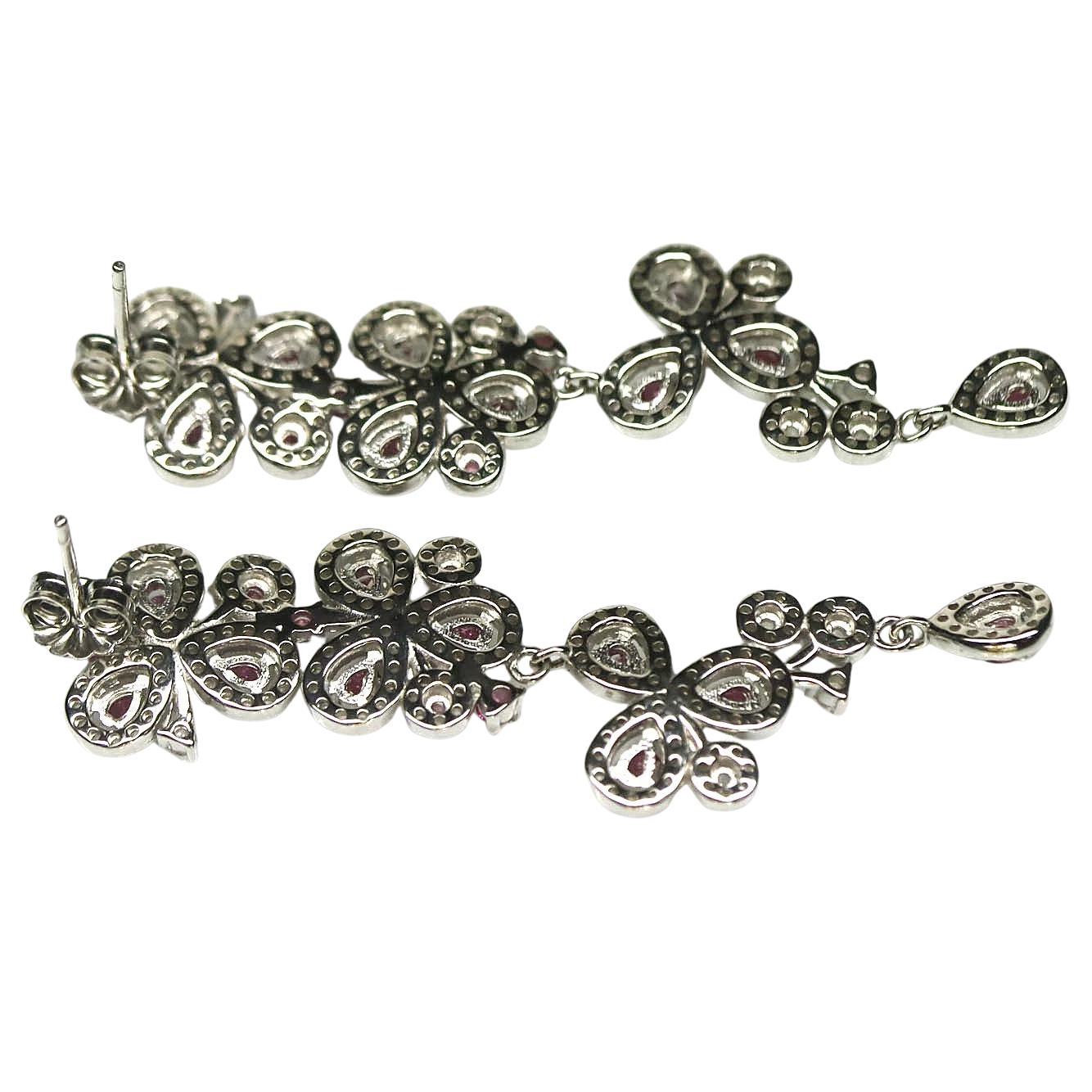 Bijuterii argint,: Cercei argint, 925, aurit cu aur alb de 14k, cu pietre naturale: granat; cz.