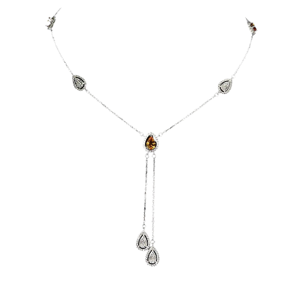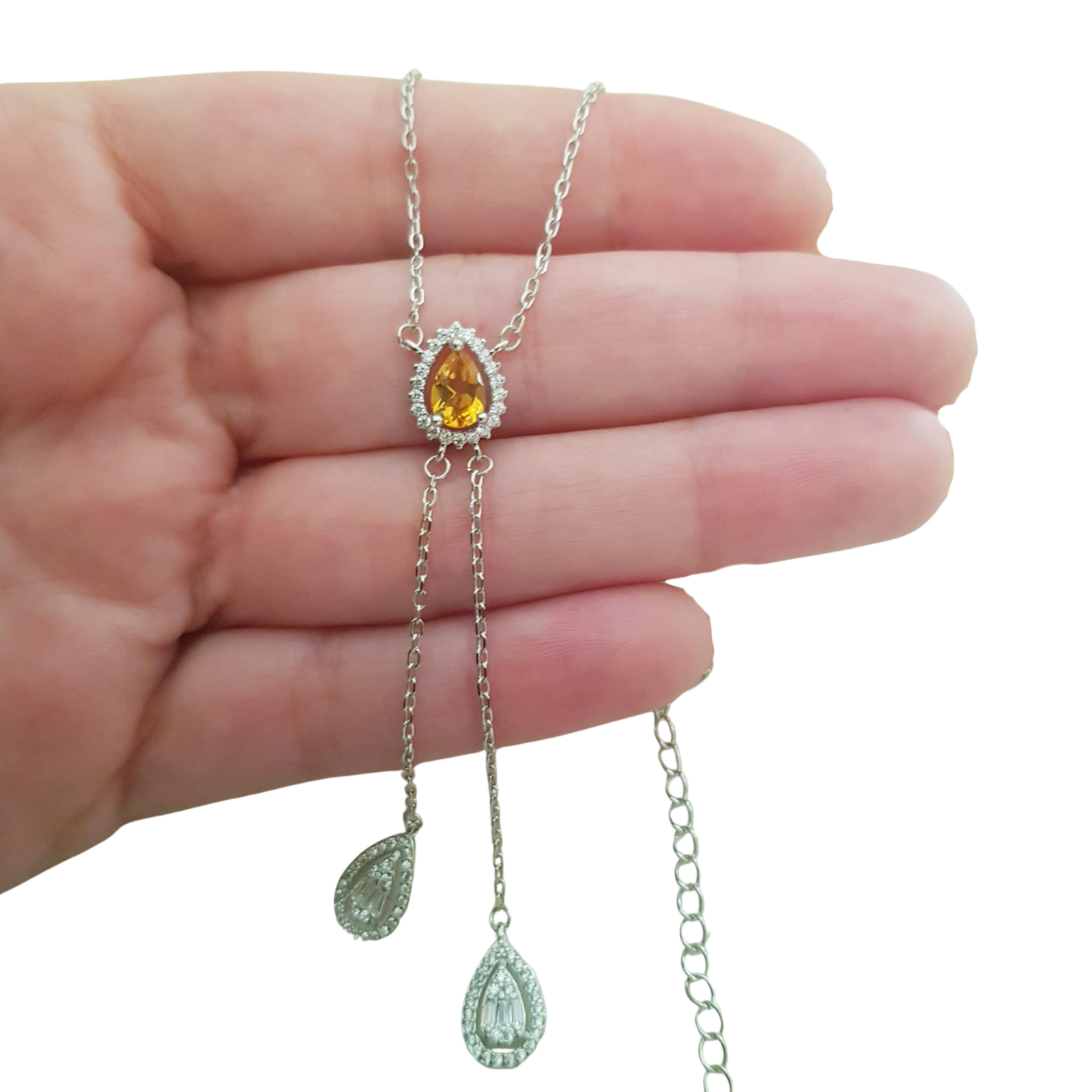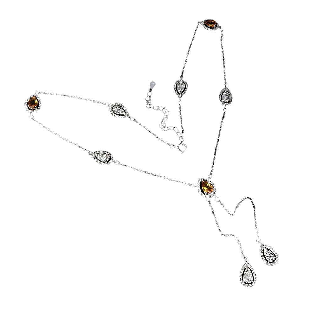 Bijuterii argint: Colier din argint , 925 aurit cu aur alb de 14k, cu pietre naturale: citrin; cz.