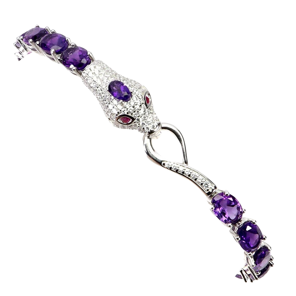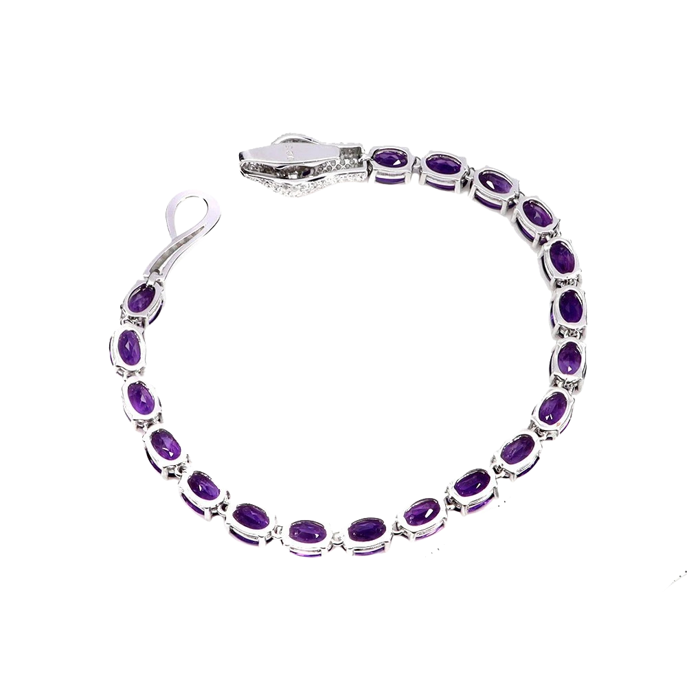 Bijuterii argint,: Bratara, argint 925 aurita cu aur alb de 14k, cu pietre naturale: ametist; cz.