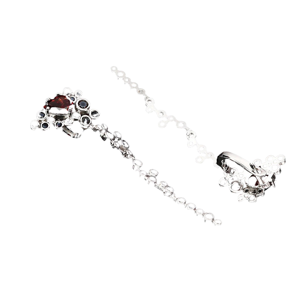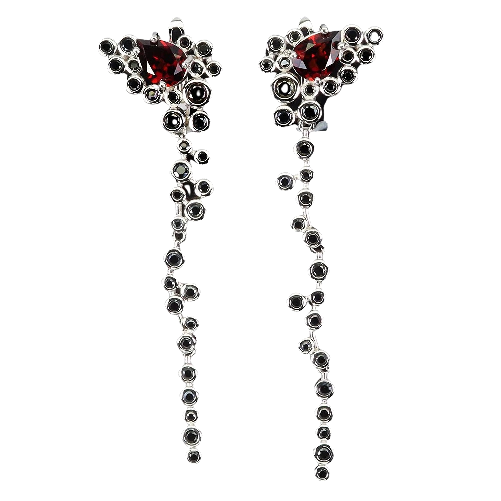 Bijuterii argint,: Cercei argint, 925, aurit cu aur alb de 14k, cu pietre naturale: granat si spinel.