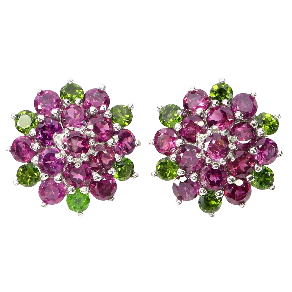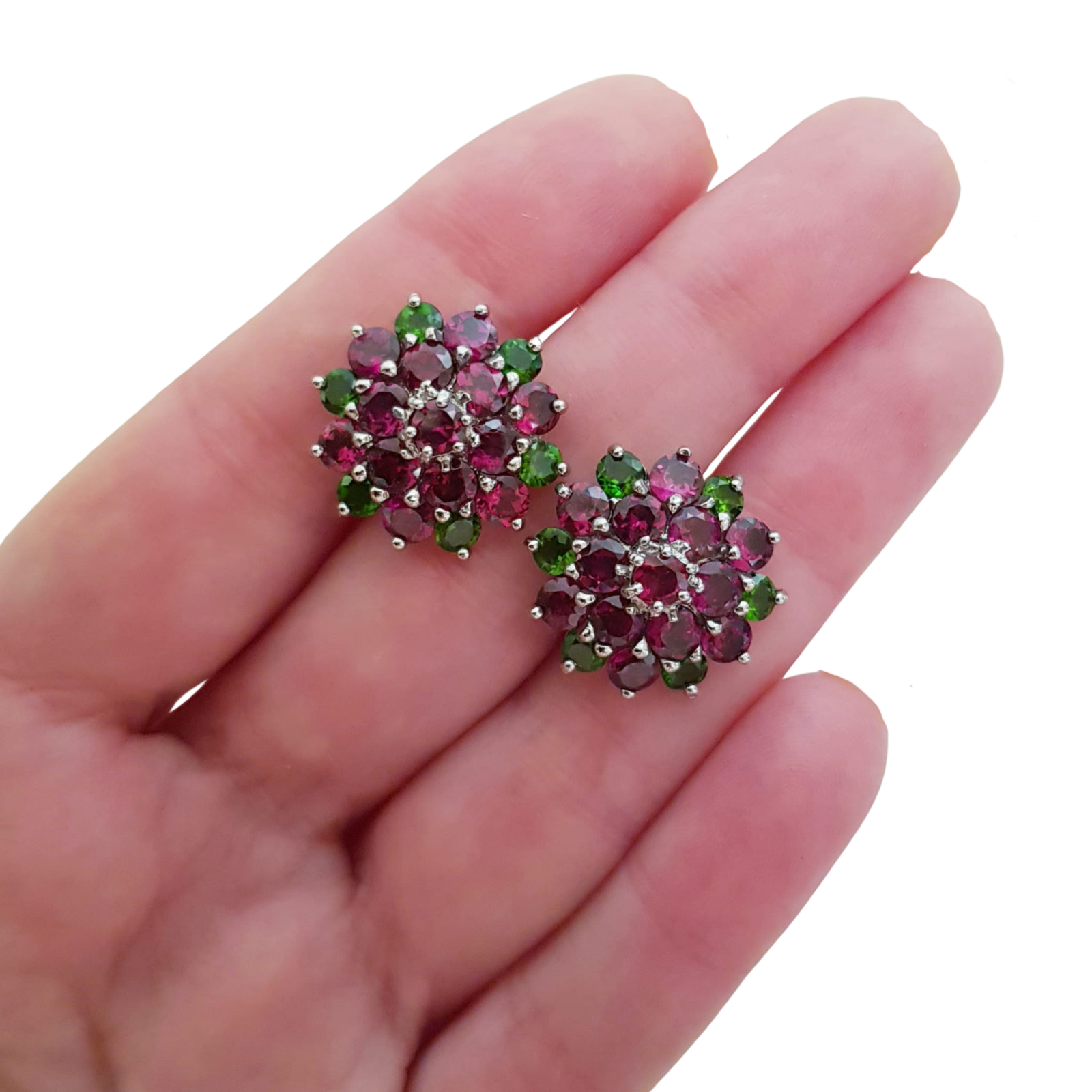 Bijuterii argint,: Cercei argint, 925, aurit cu aur alb de 14k, cu pietre naturale: granat si crom-diopsid.