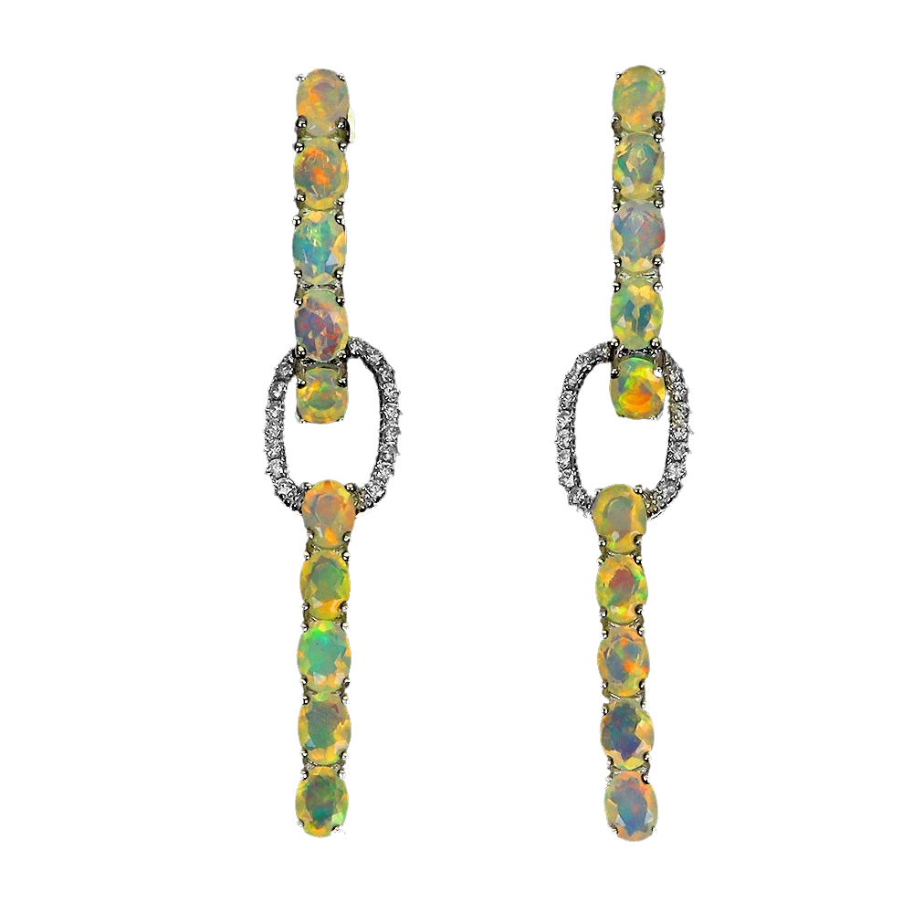 Bijuterii argint,: Cercei modulari din argint, 925, aurit cu aur alb de 14k, cu pietre naturale: opal; cz.