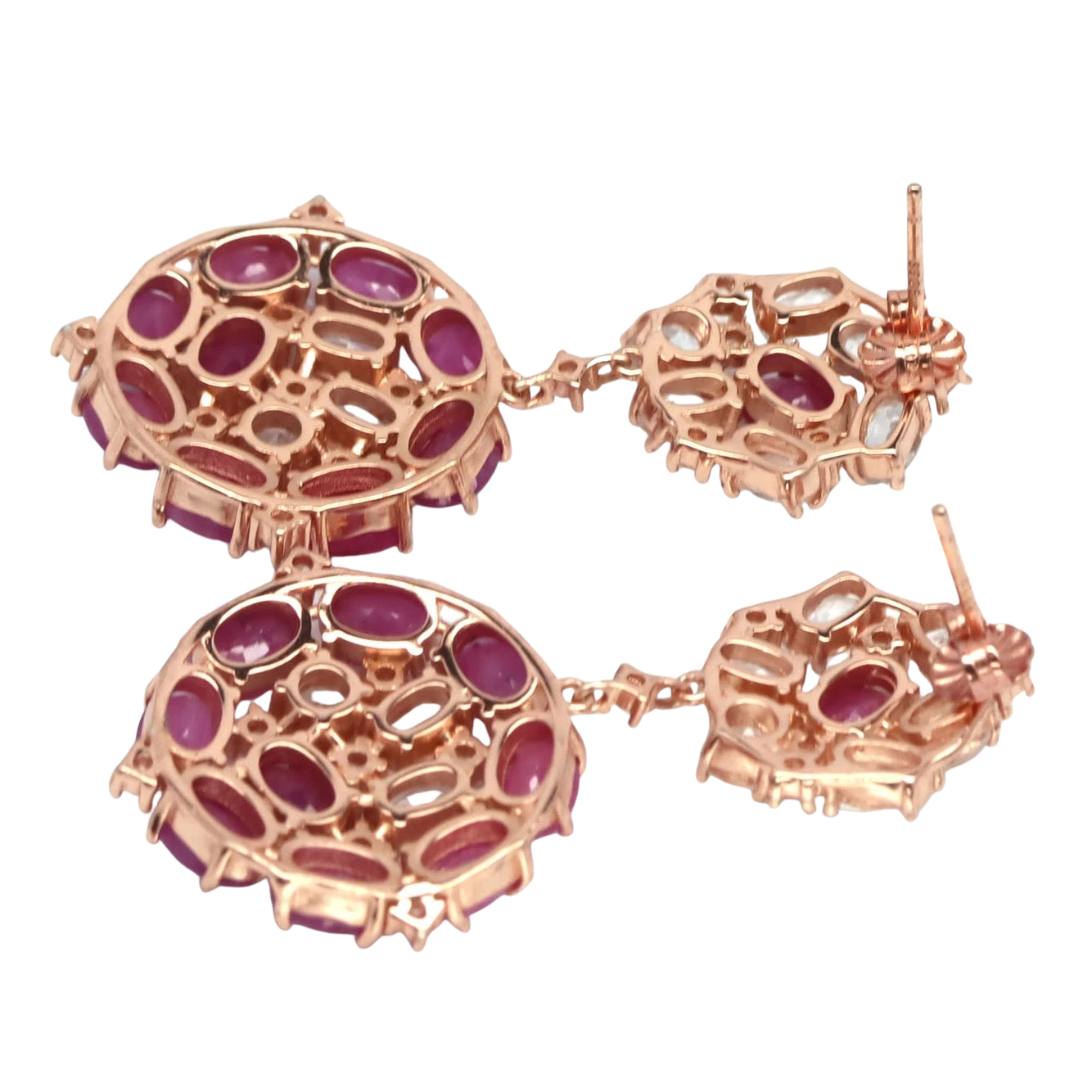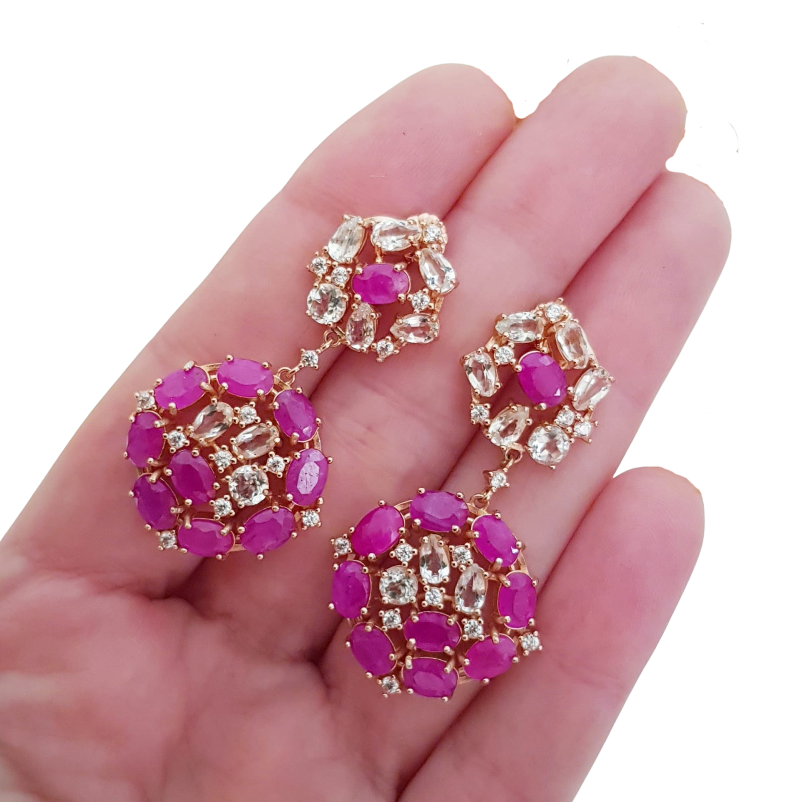 Bijuterii argint,: Cercei argint, 925, aurit cu aur roz de 14k, cu pietre naturale: rubin si topaz; cz.