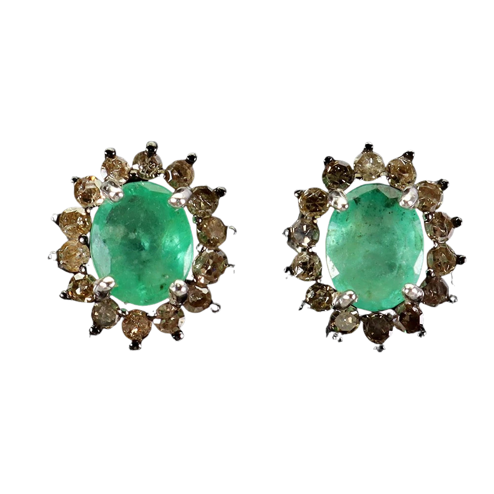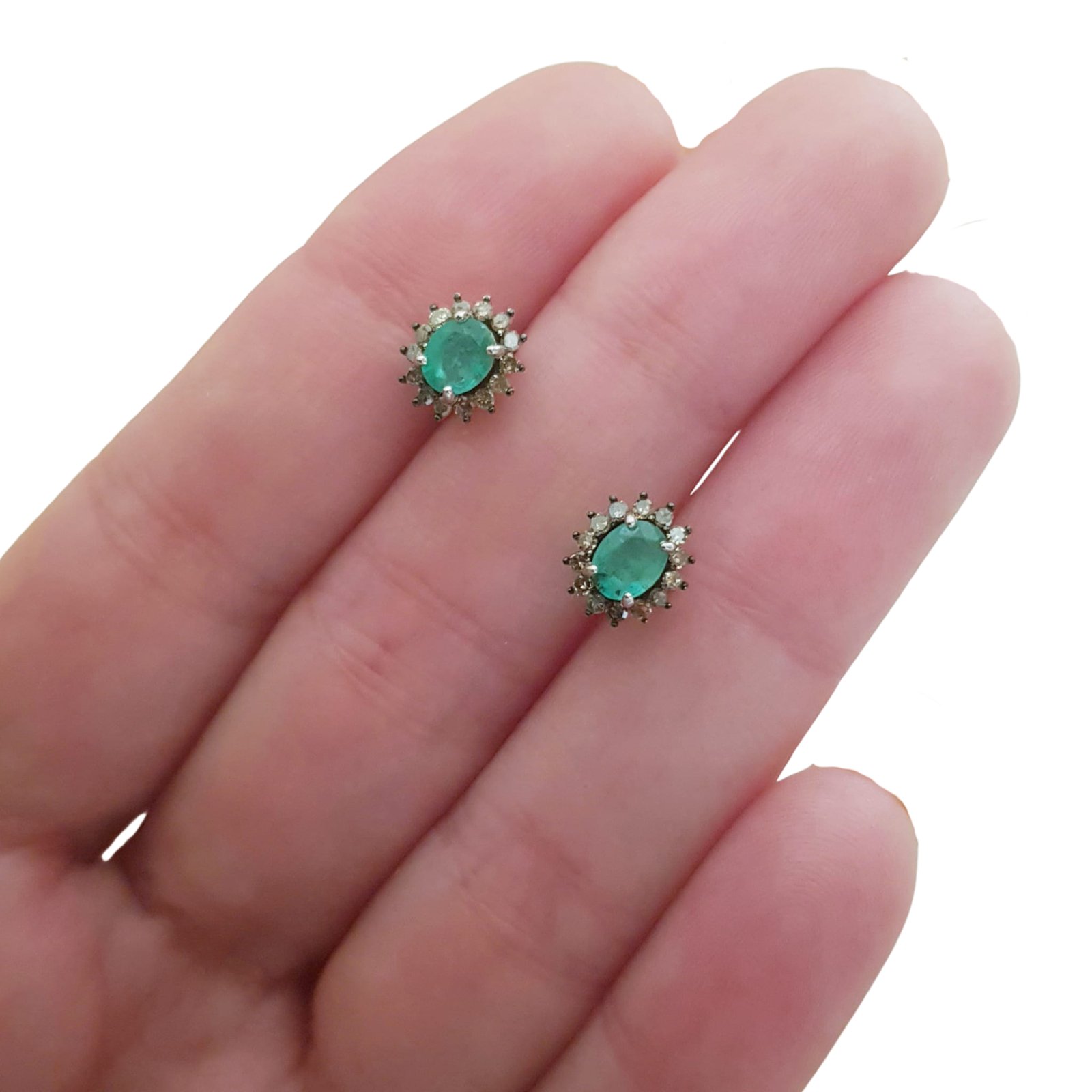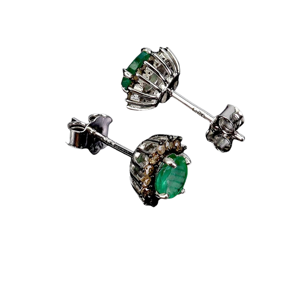 Bijuterii argint,: Cercei argint, 925, aurit cu aur alb de 14k, cu pietre naturale: smarald si diamant (culoare N-R, claritate I2-I3, 0.14 ct). Piatra principala 5/4 mm Diamant: 28 buc x 1 mm