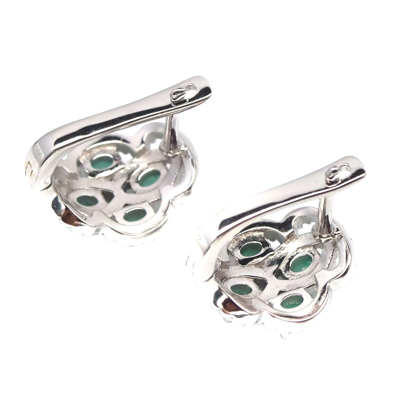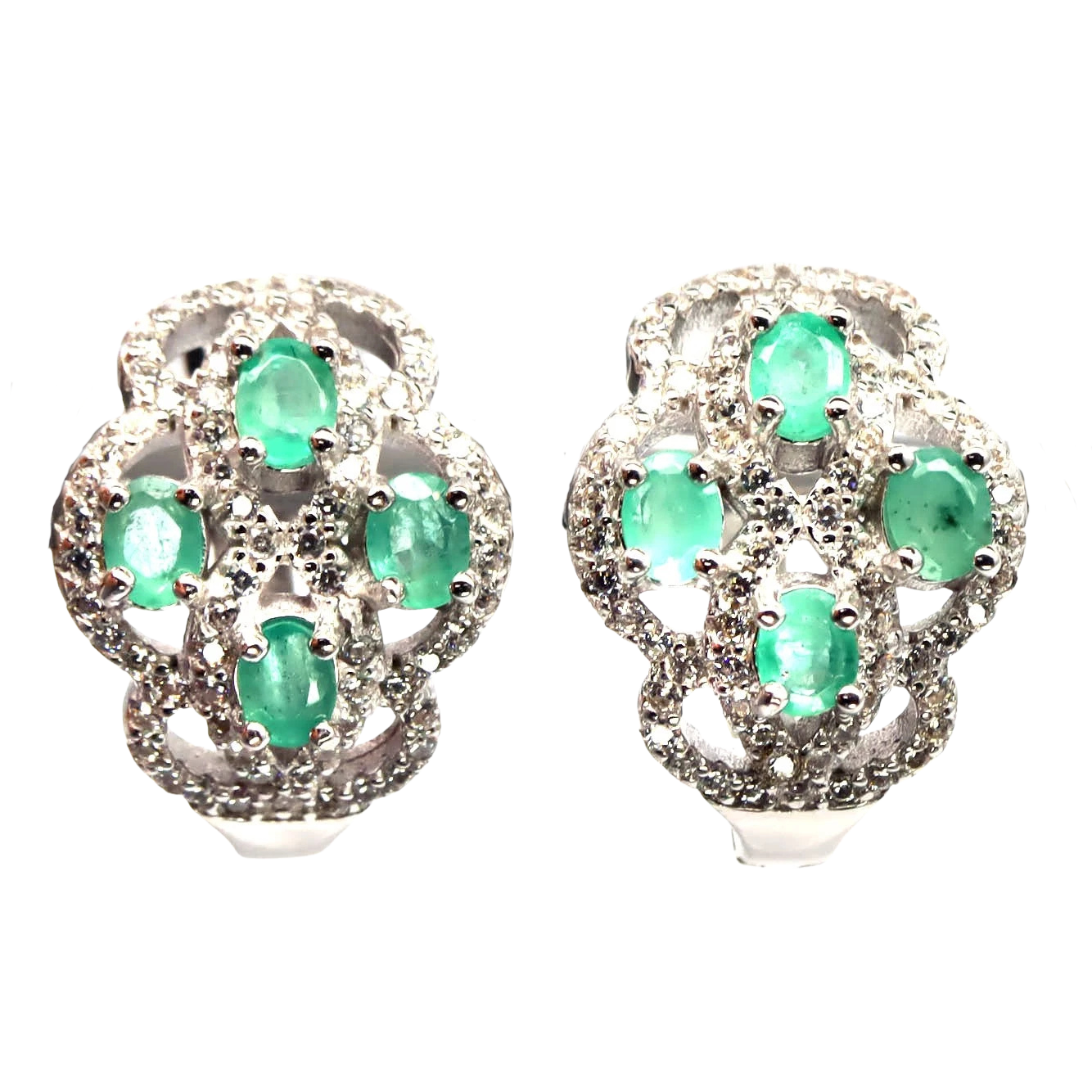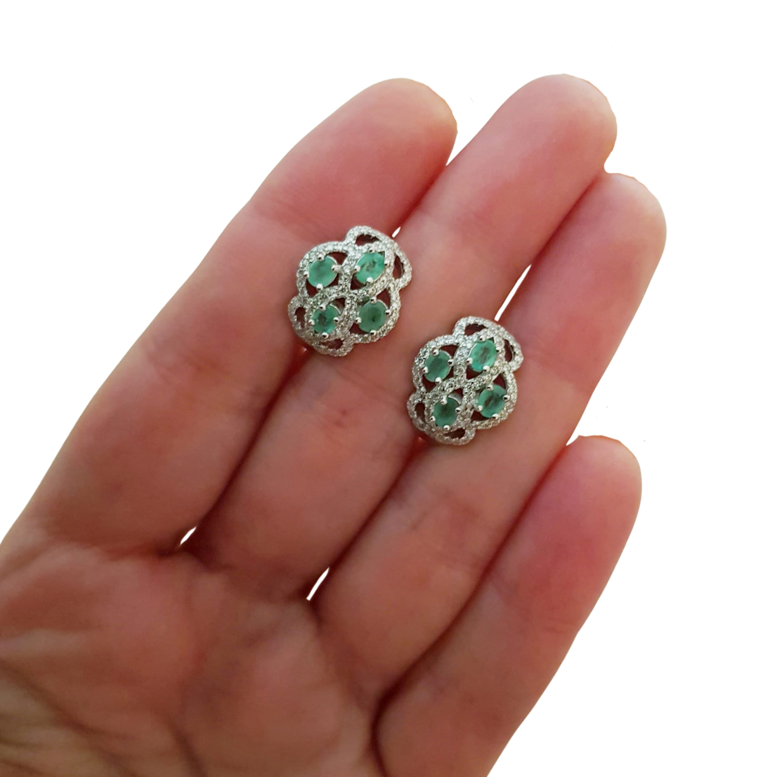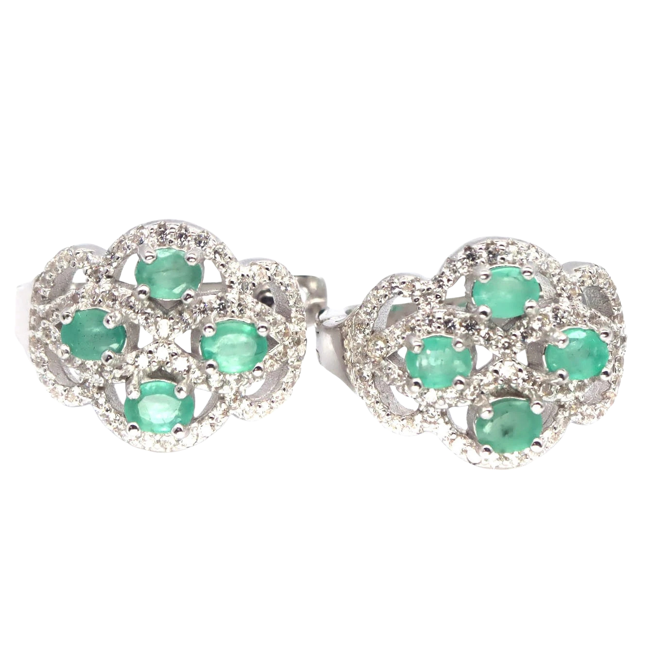 Bijuterii argint,: Cercei argint, 925, aurit cu aur alb de 14k, cu pietre naturale: smarald; cz.