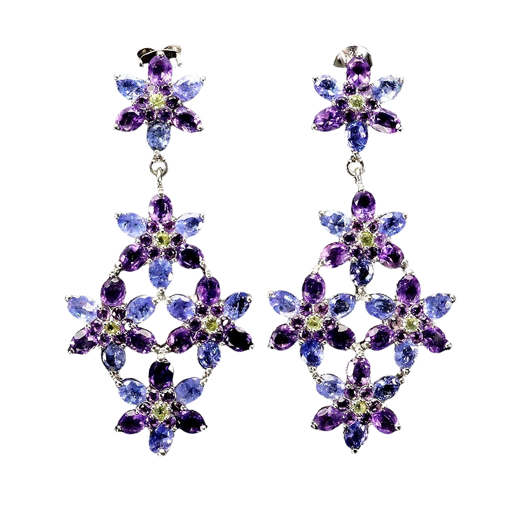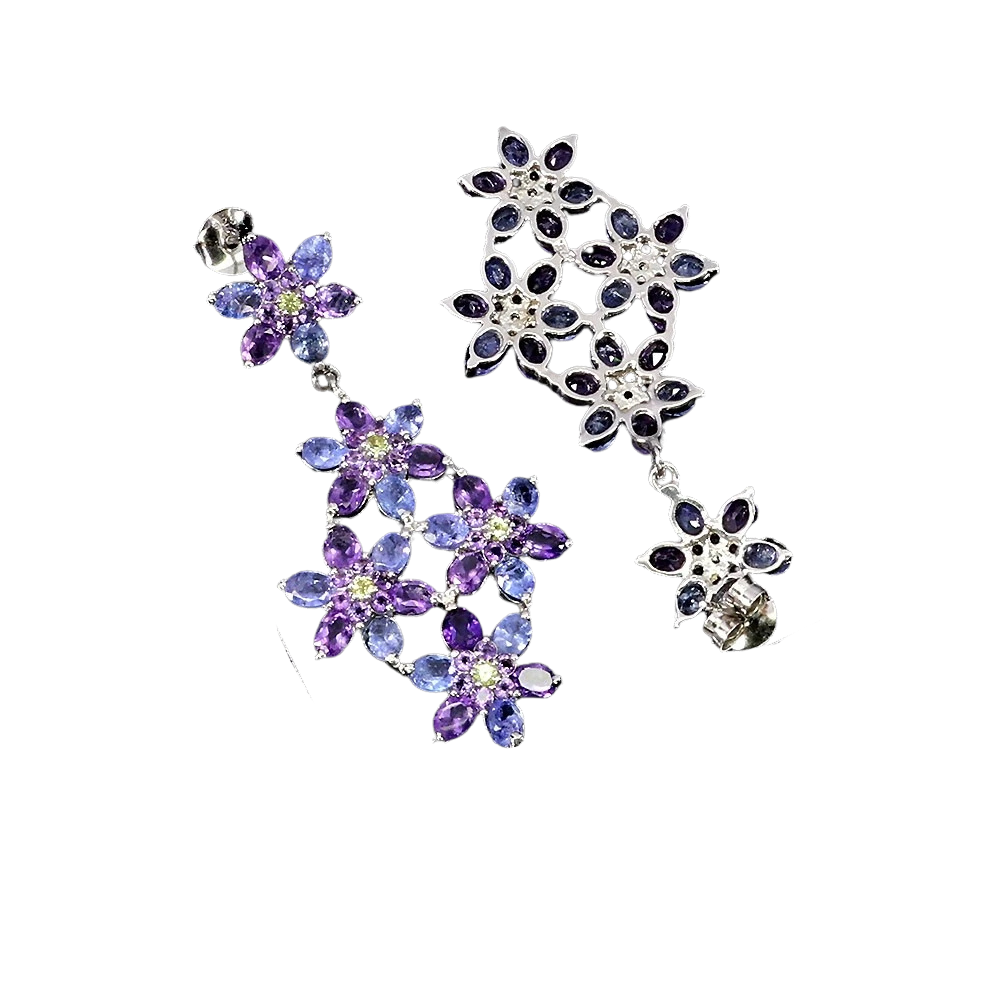 Bijuterii argint,: Cercei argint, 925, aurit cu aur alb de 14k, cu pietre naturale: tanzanit si ametist.