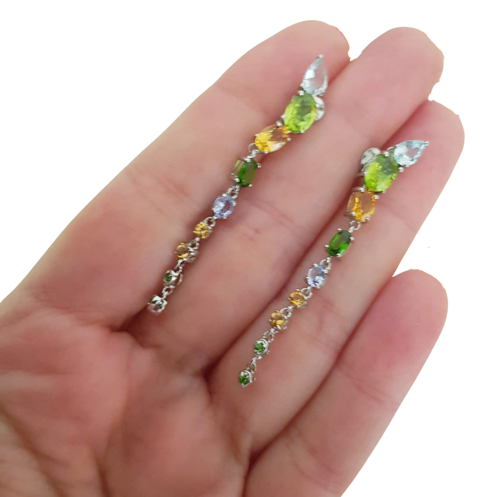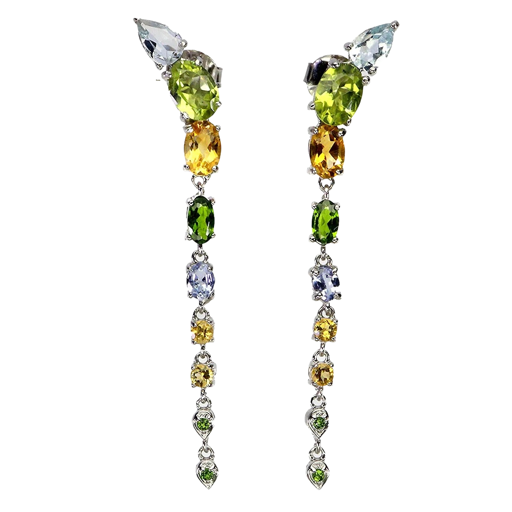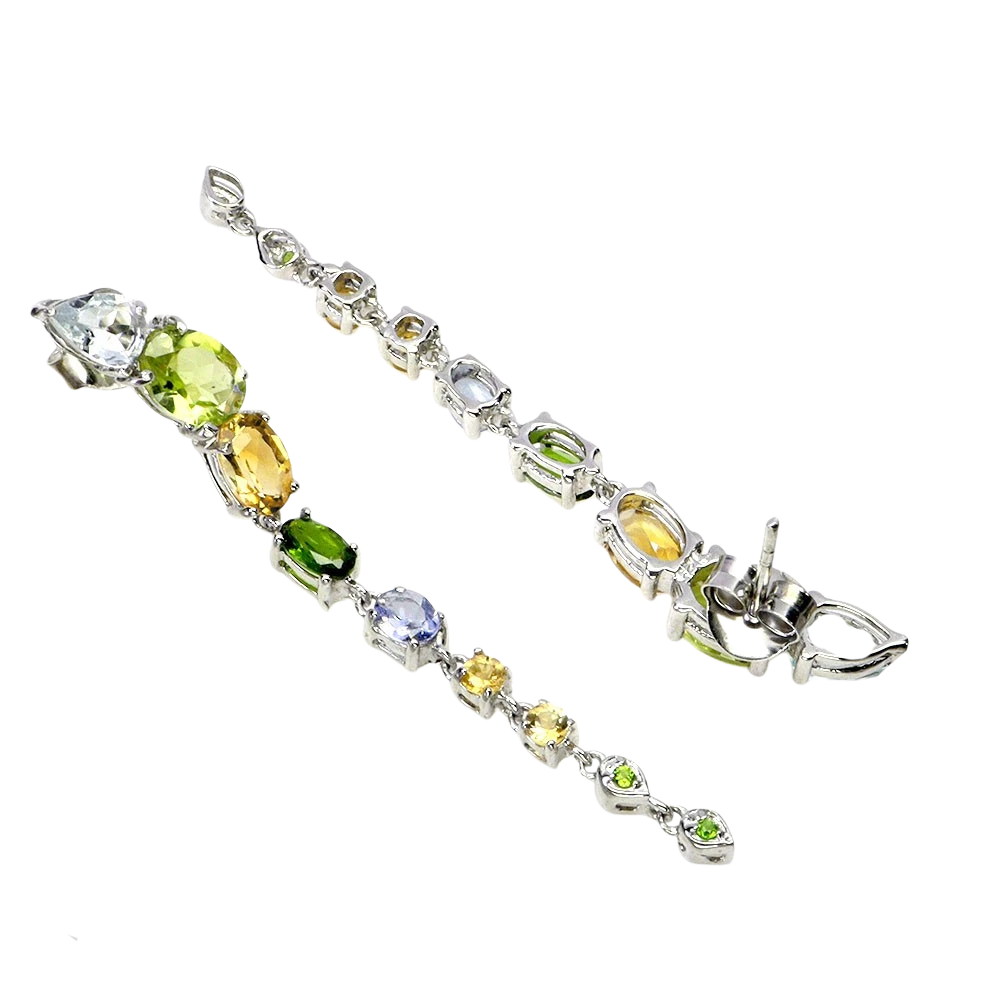 Bijuterii argint,: Cercei argint, 925, aurit cu aur alb de 14k, cu pietre naturale: topaz, peridot, citrin, crom-diopsid si smarald.