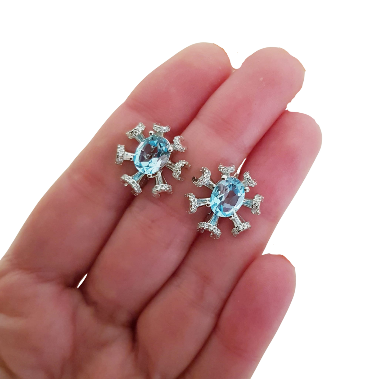 Bijuterii argint,: Cercei argint, 925, aurit cu aur alb de 14k, cu pietre naturale: topaz; cz.