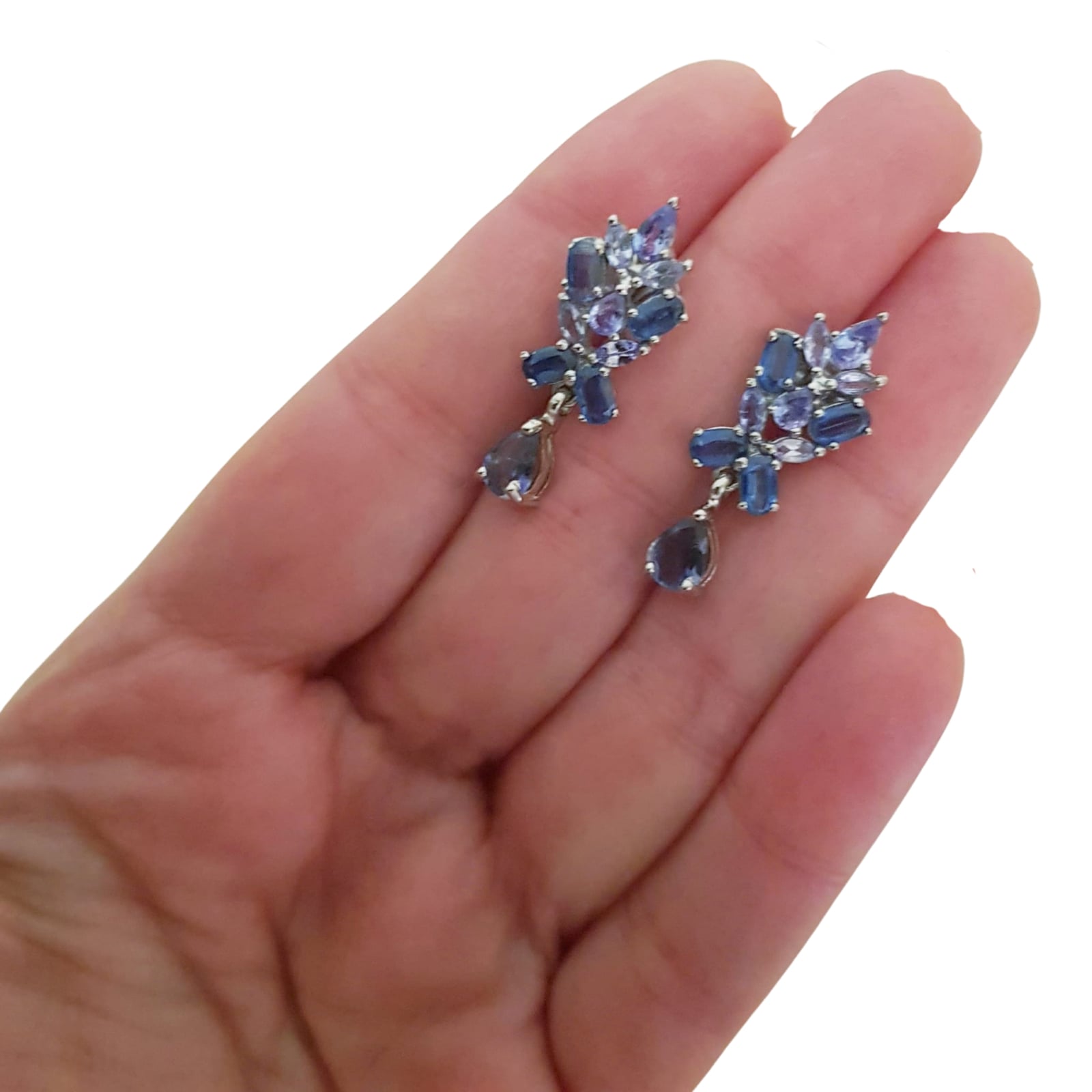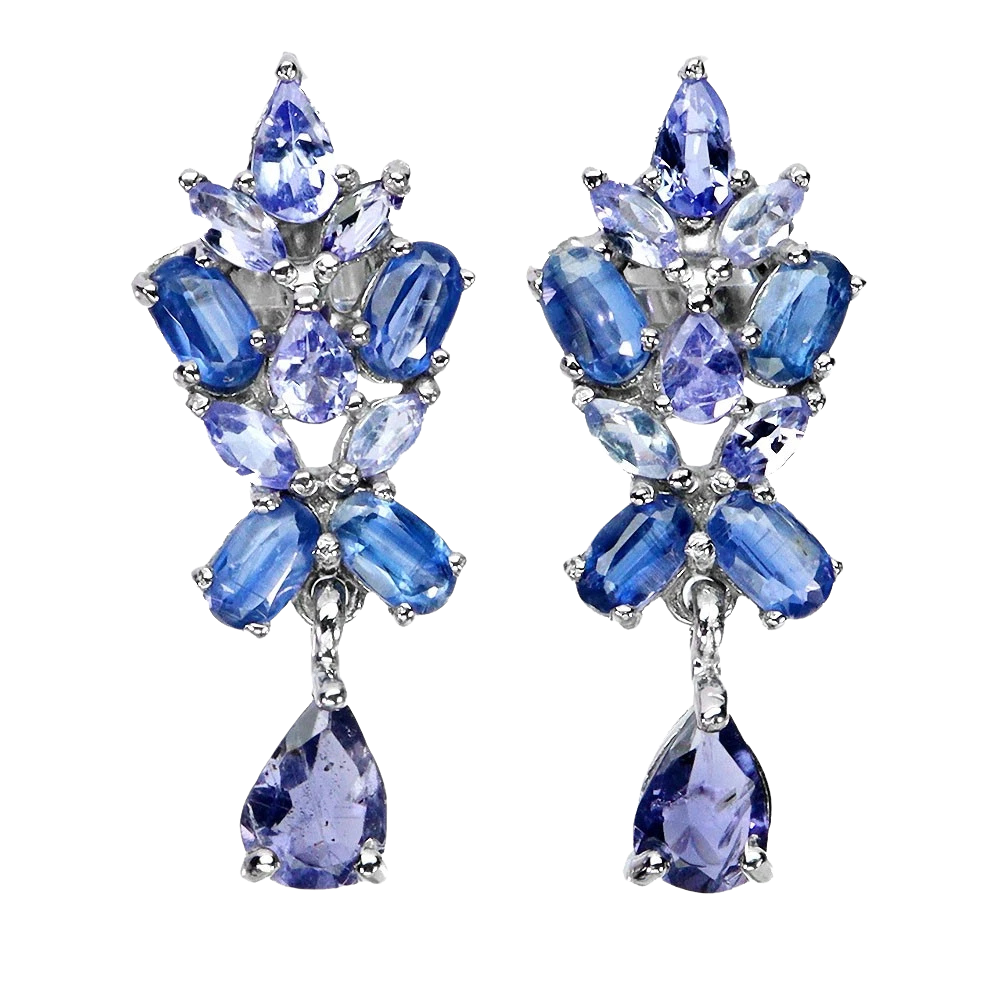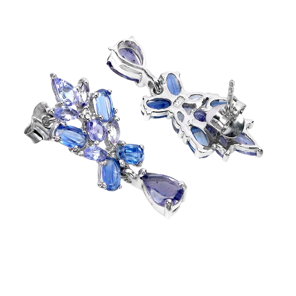 Bijuterii argint,: Cercei argint, 925, aurit cu aur alb de 14k, cu pietre naturale: kyanit si tanzanit.