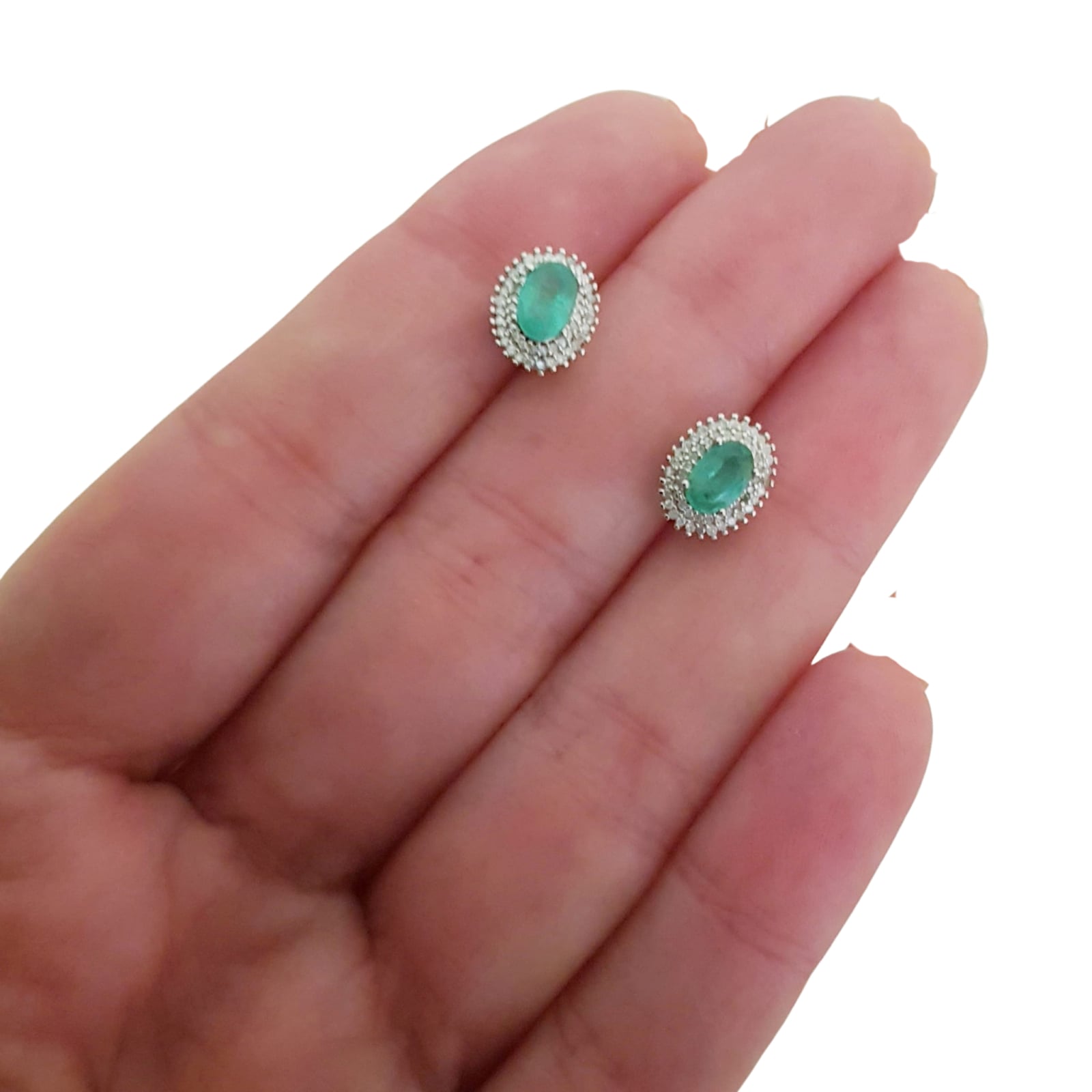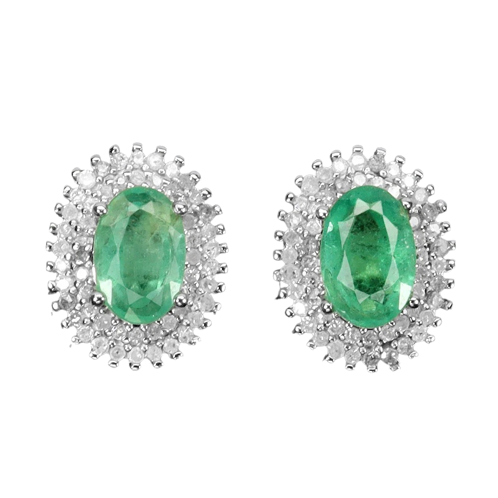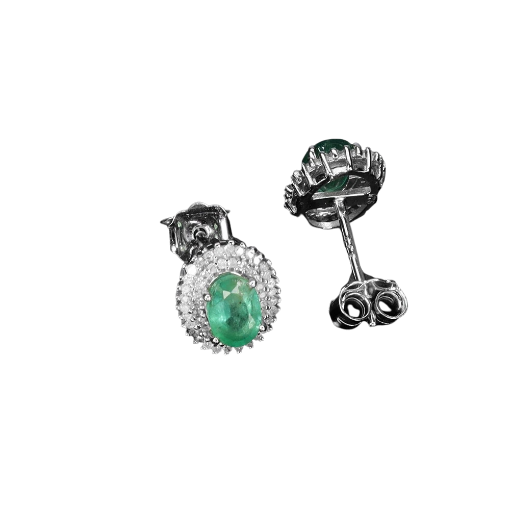 Bijuterii argint,: Cercei argint, 925, aurit cu aur alb de 14k, cu pietre naturale: smarald si diamant (0.54 ct, I 2-3, K-M ).