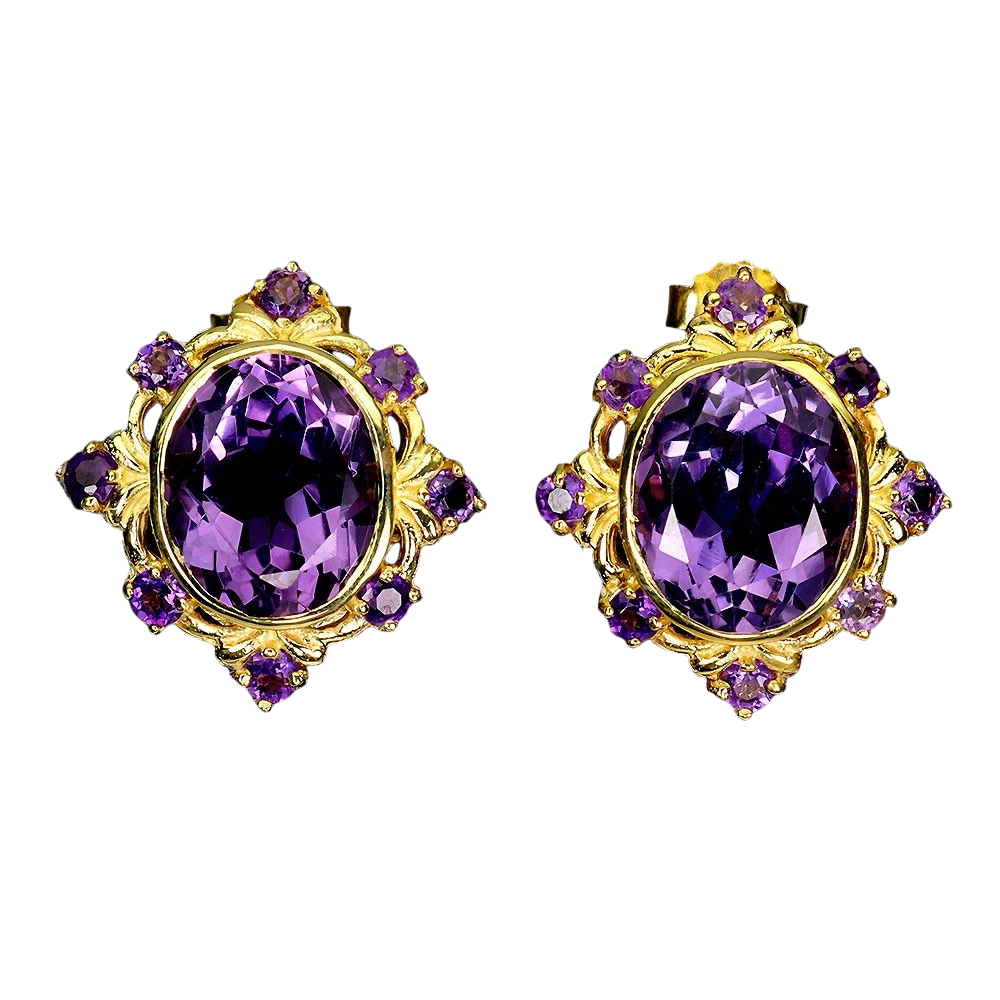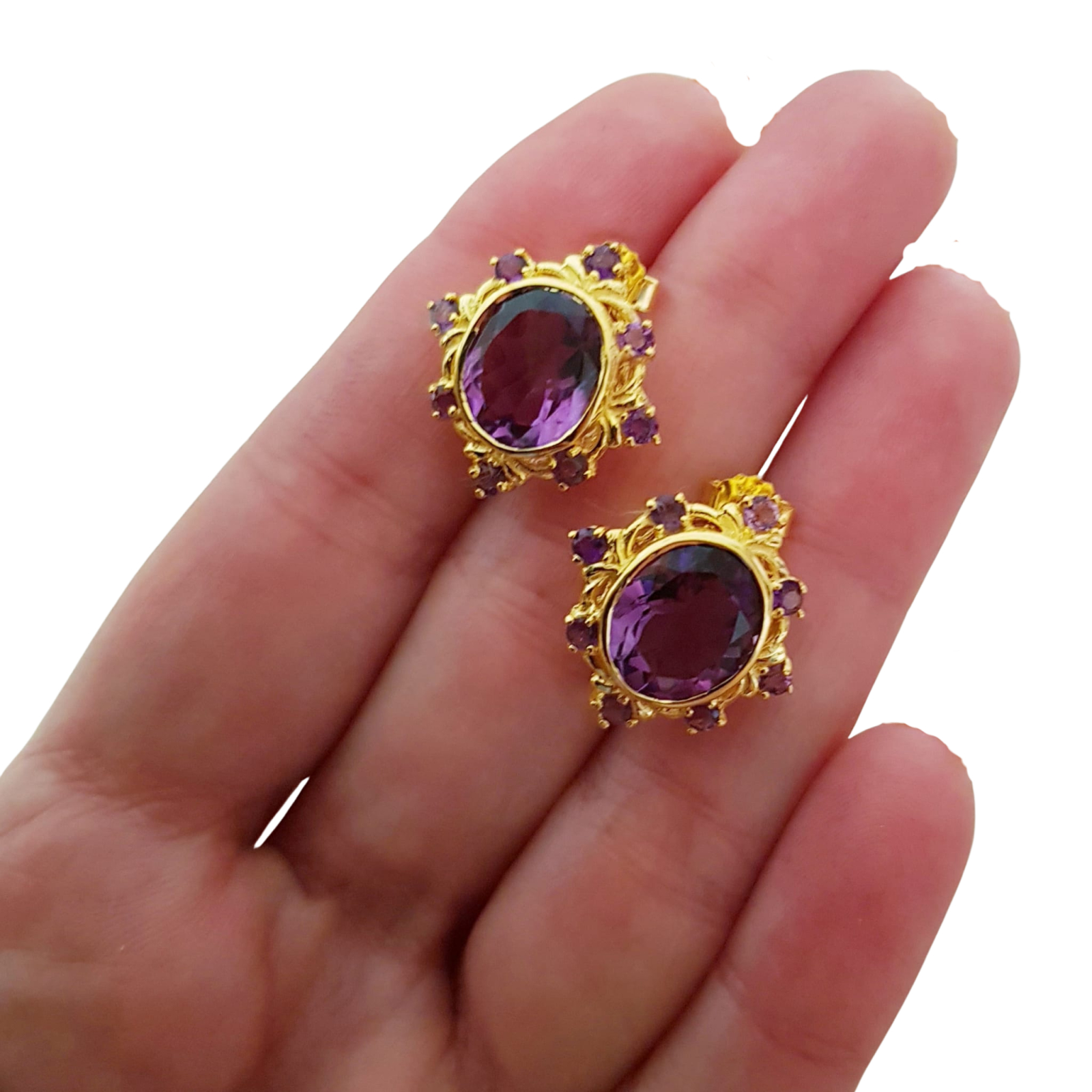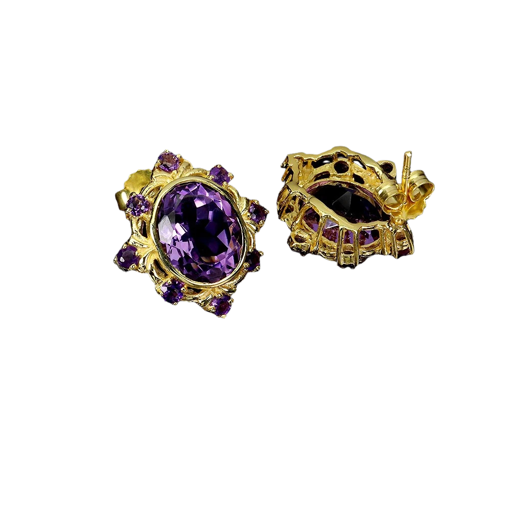 Bijuterii argint,: Cercei argint, 925, aurit cu aur galben de 14k, cu pietre naturale: ametist.