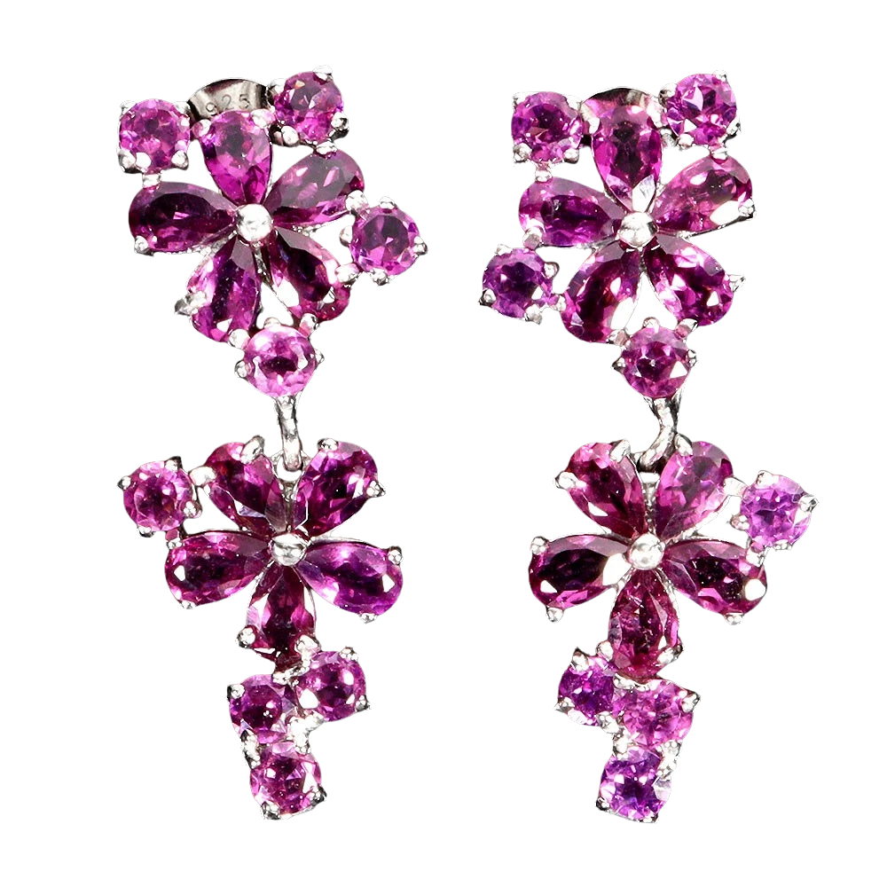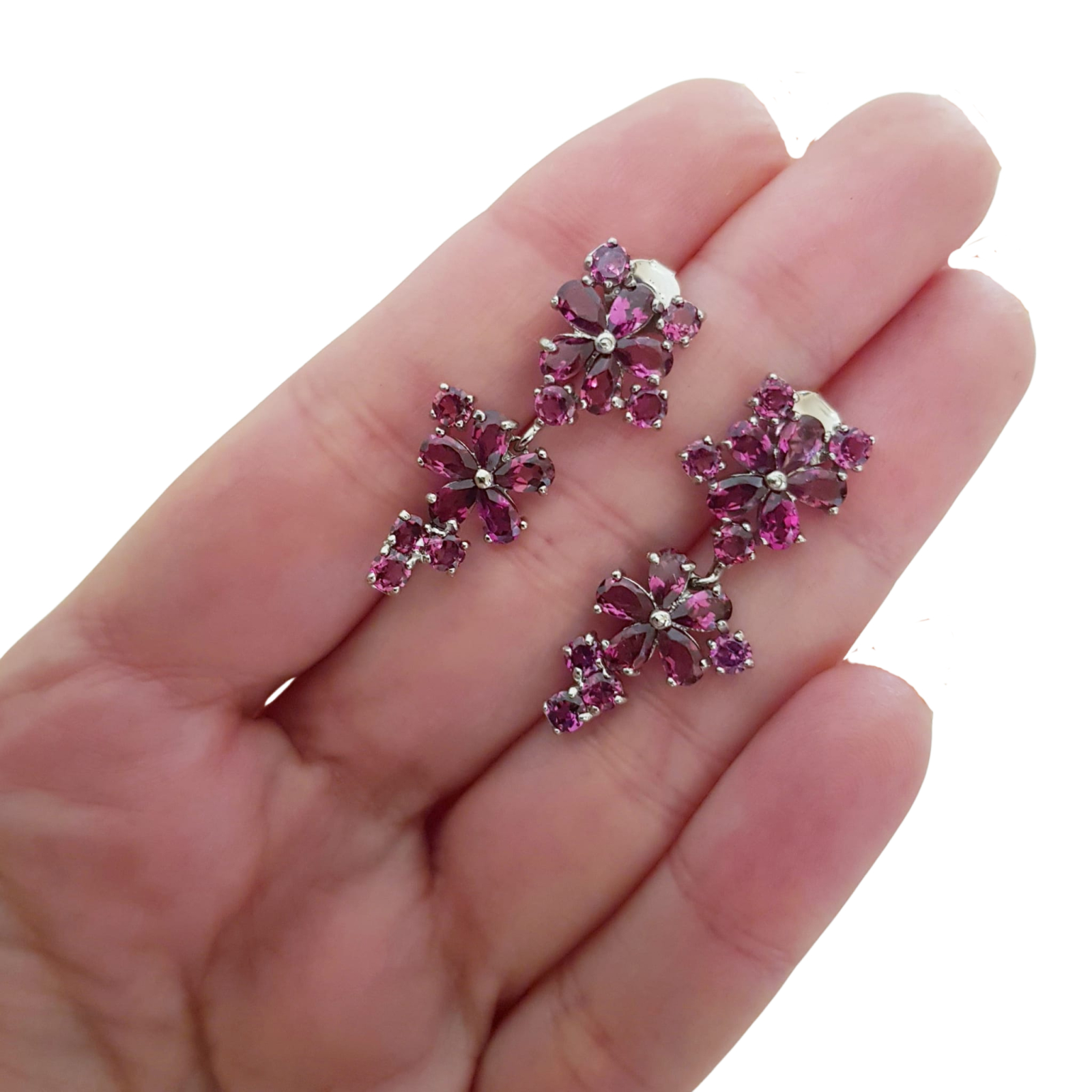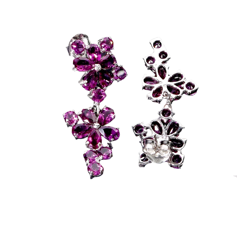 Bijuterii argint,: Cercei argint, 925, aurit cu aur alb de 14k, cu pietre naturale: granat rodolit.