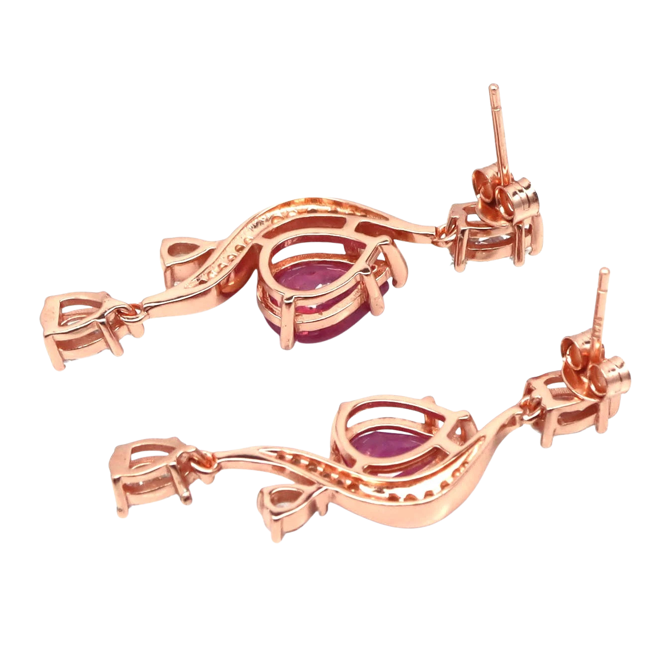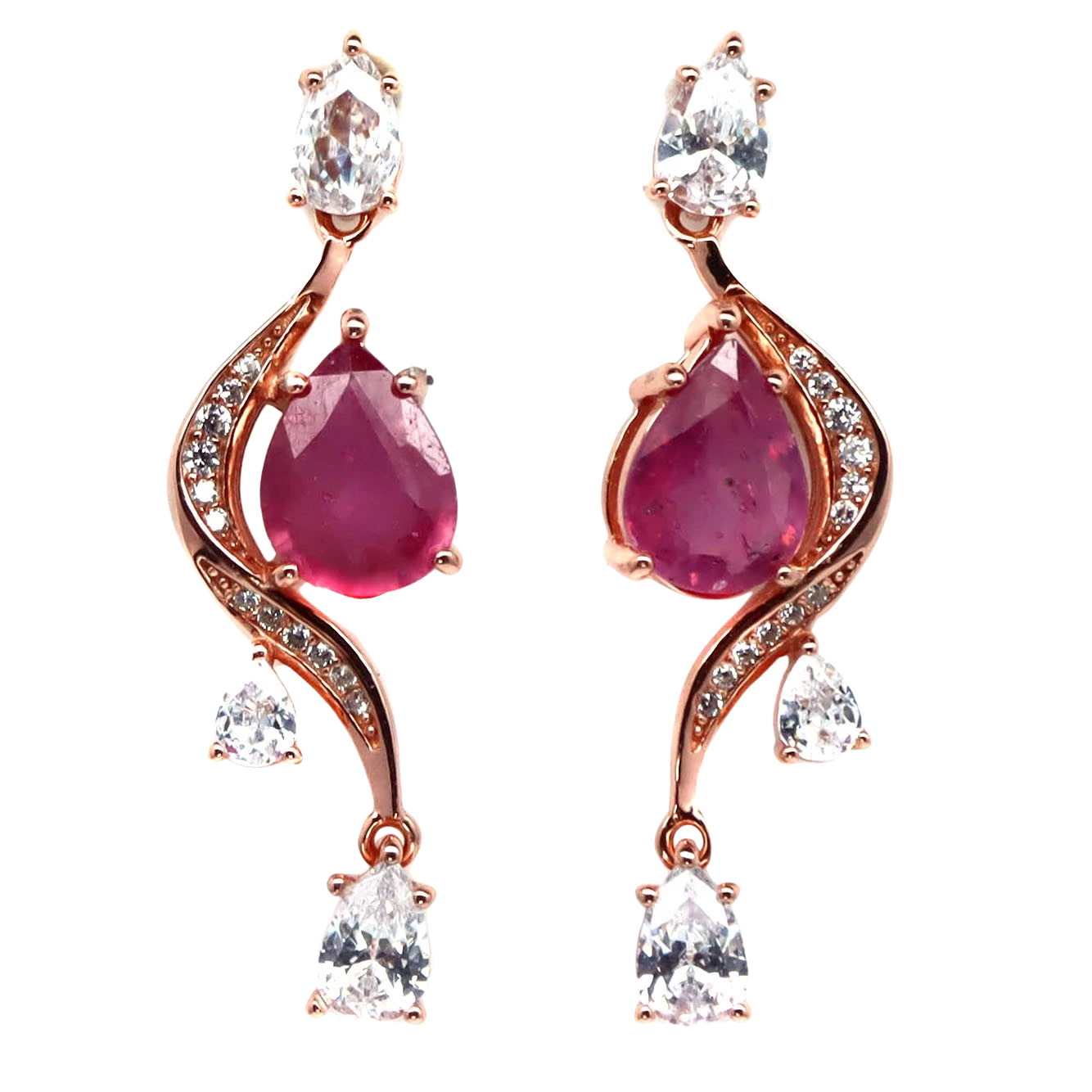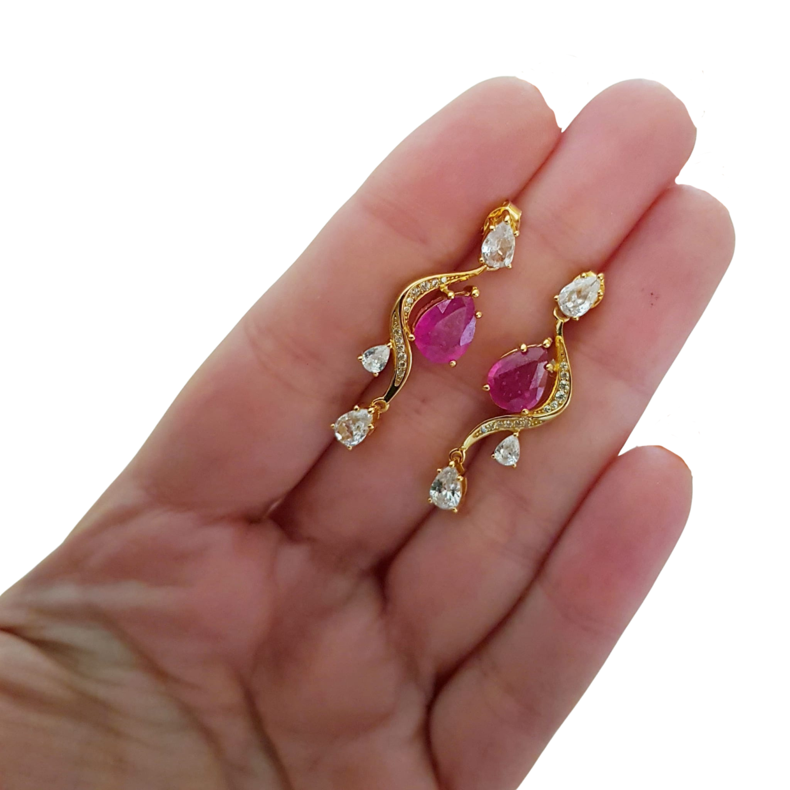 Bijuterii argint,: Cercei argint, 925, aurit cu aur galben de 14k, cu pietre naturale: rubin; cz.