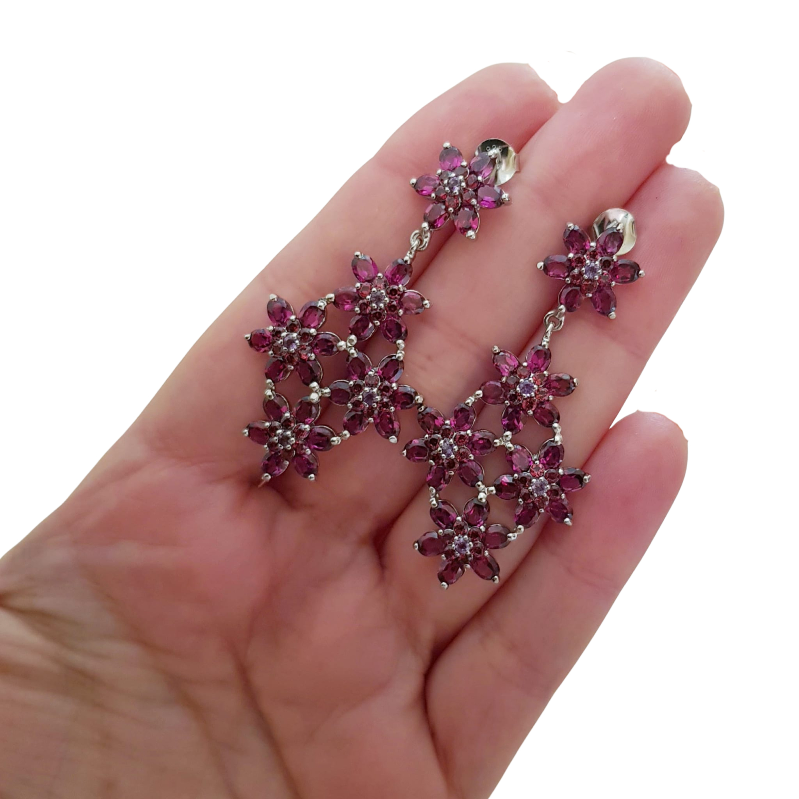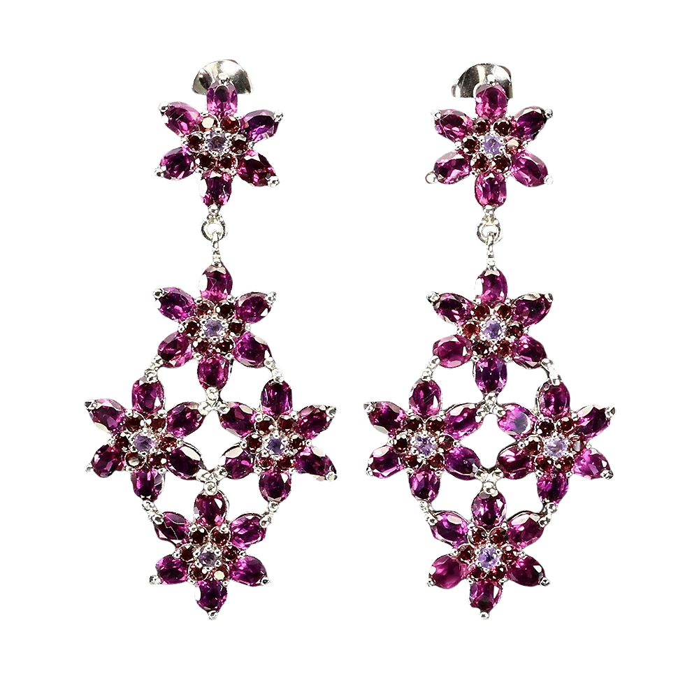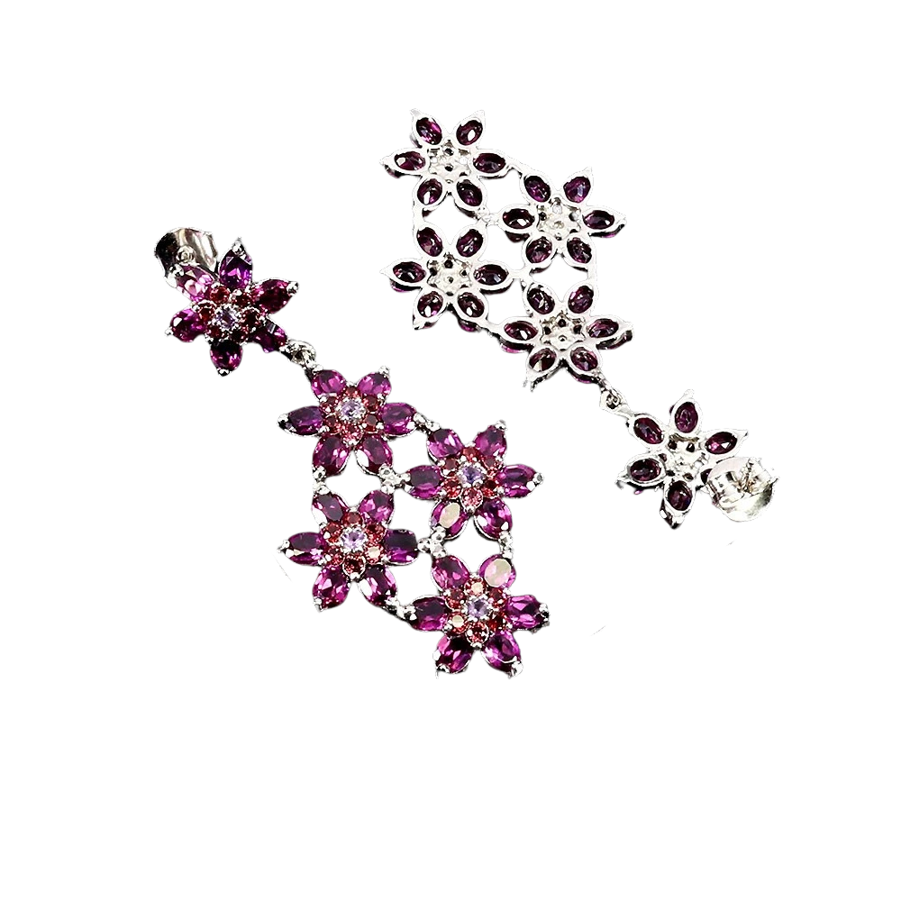 Bijuterii argint,: Cercei argint, 925, aurit cu aur alb de 14k, cu pietre naturale: granat rodolit.