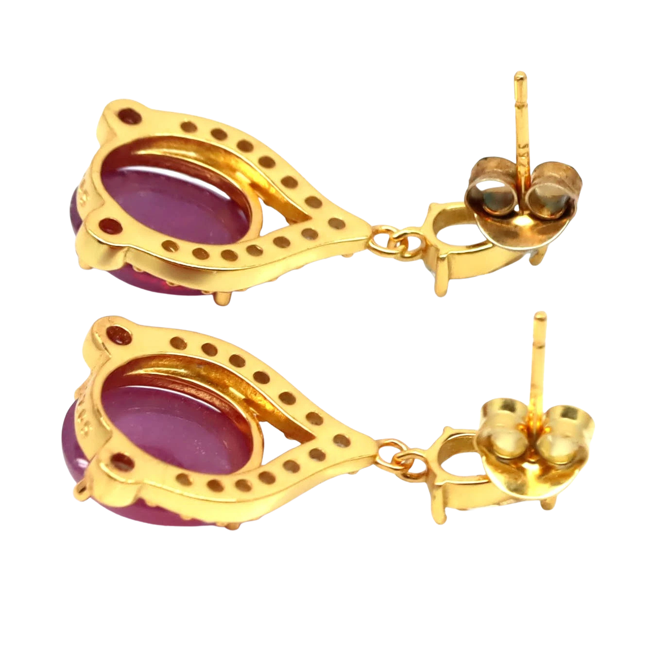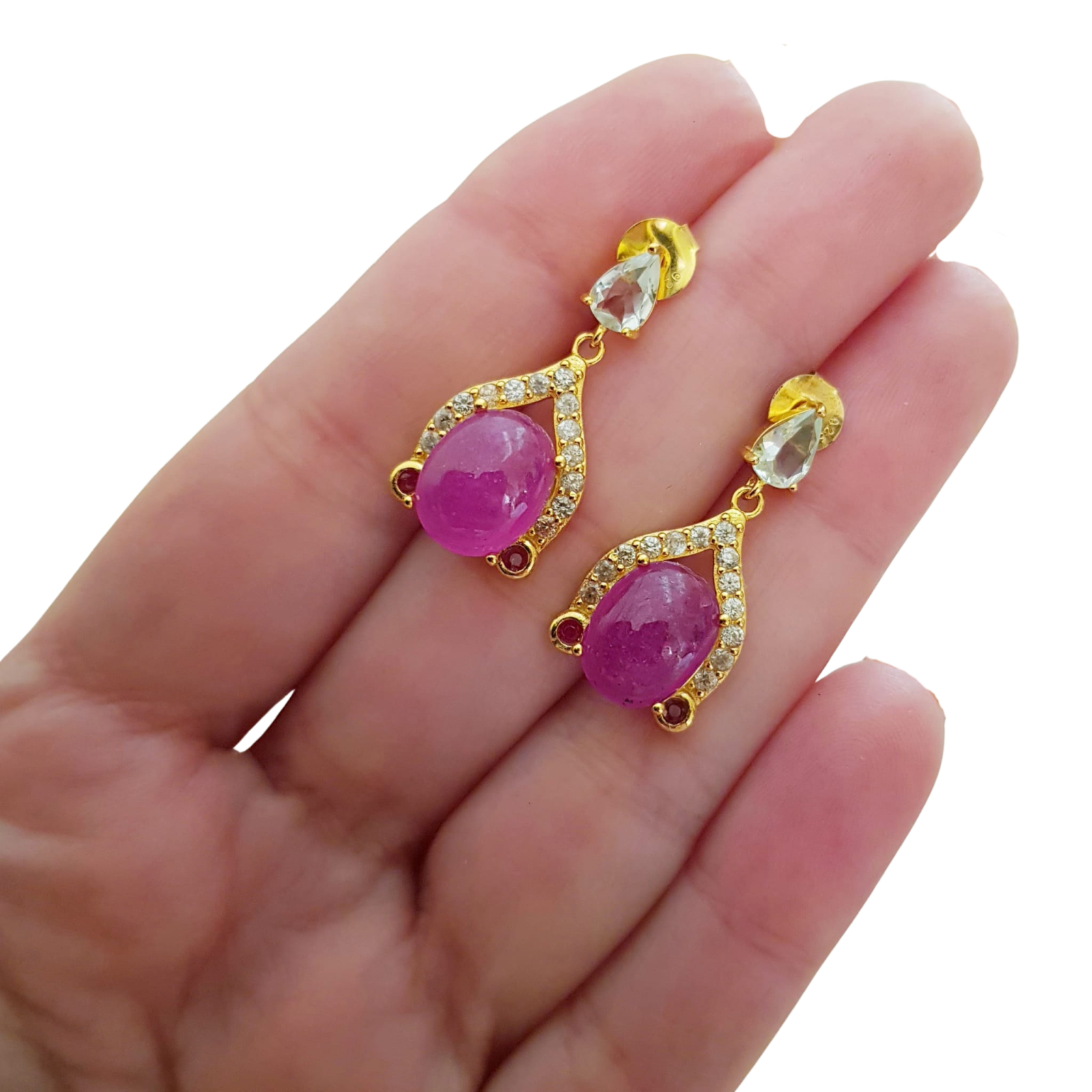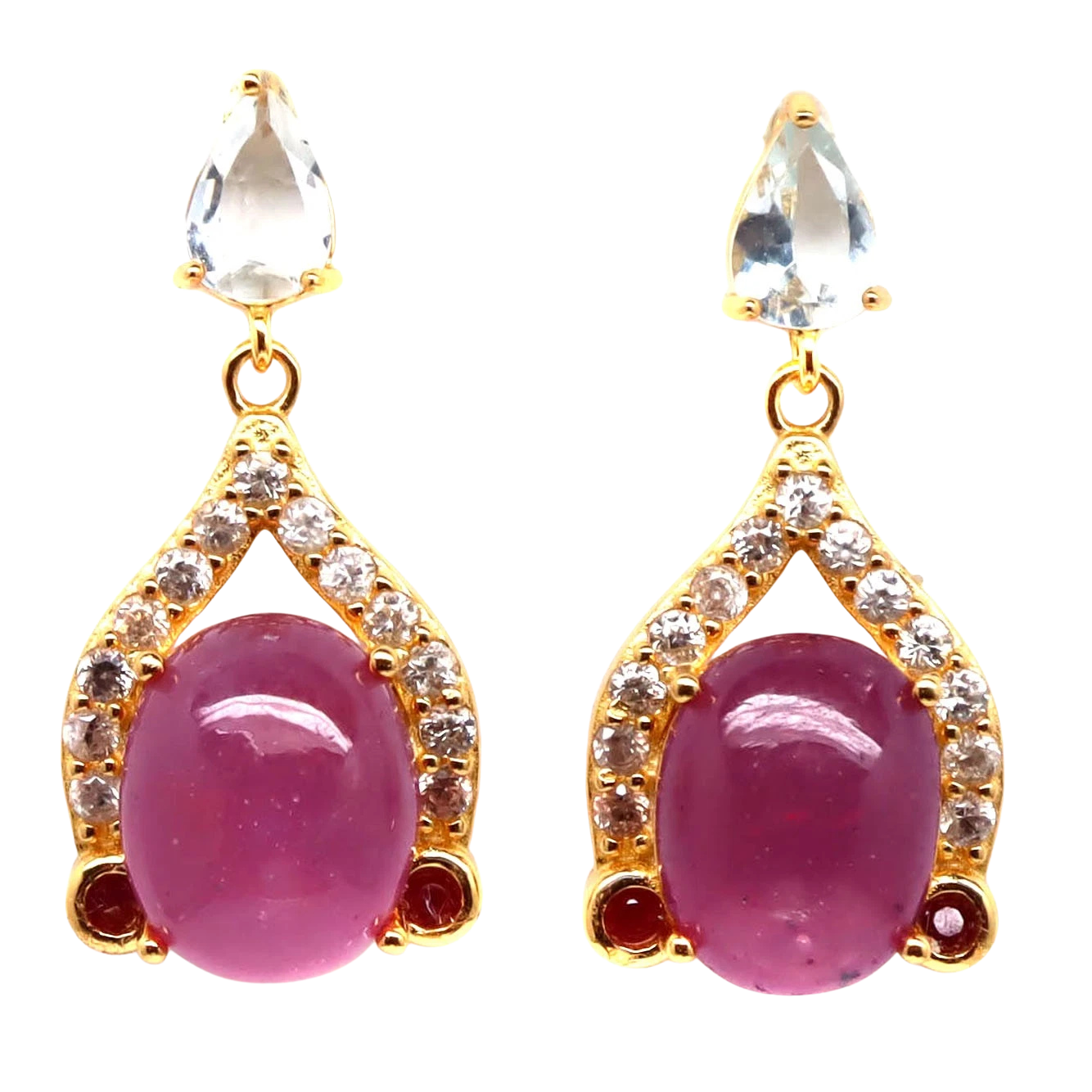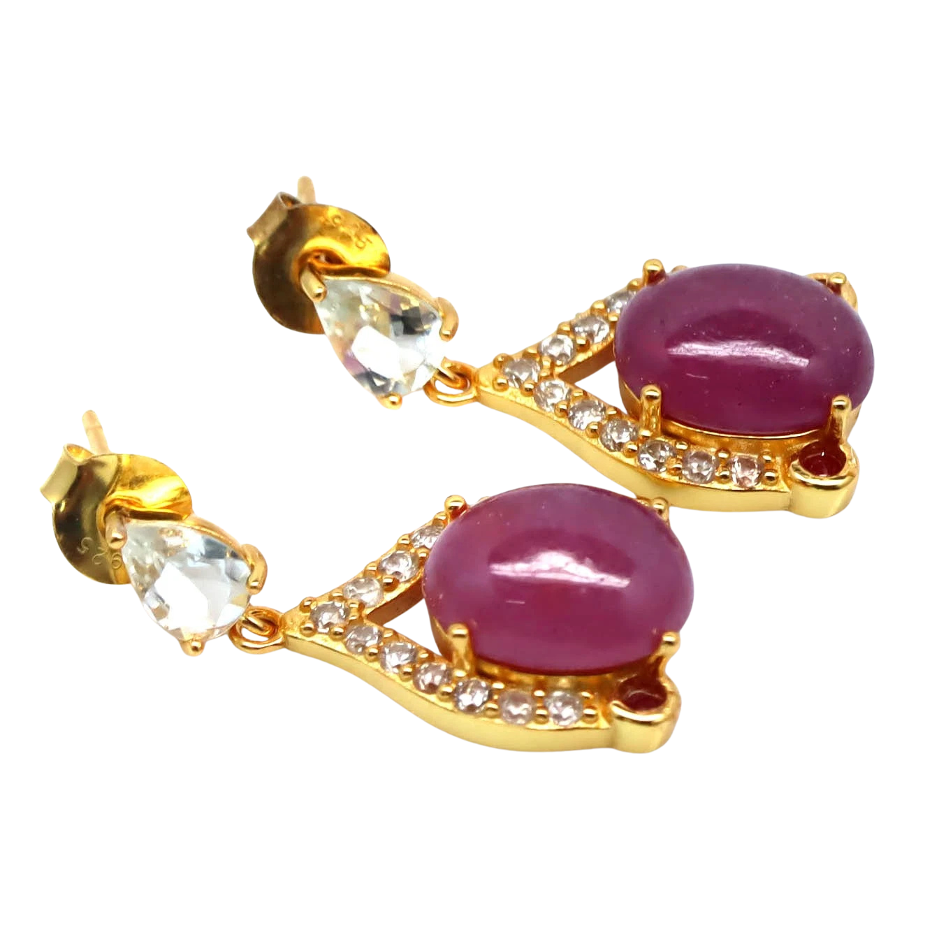 Bijuterii argint,: Cercei argint, 925, aurit cu aur galben de 14k, cu pietre naturale: rubin, topaz si granat; cz.