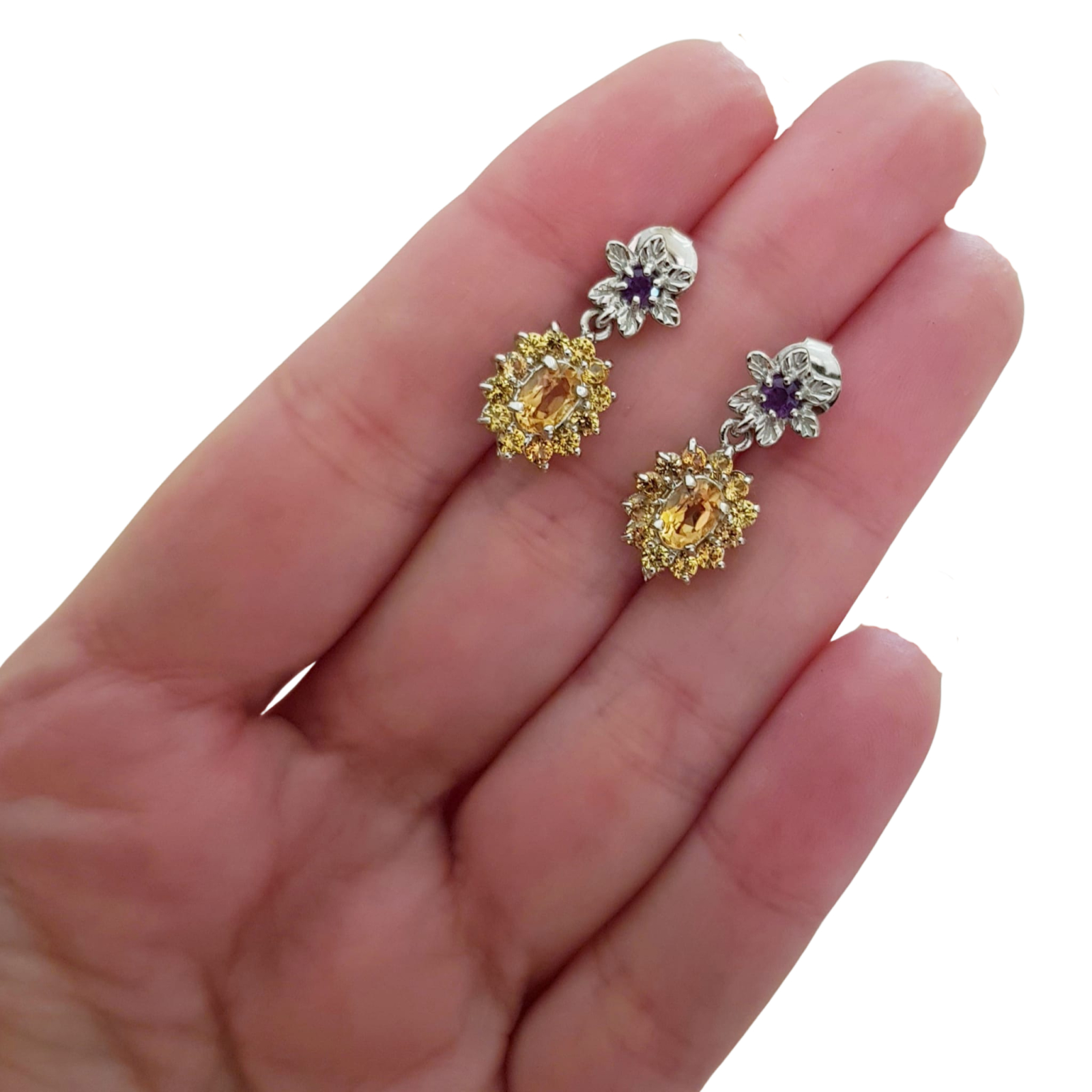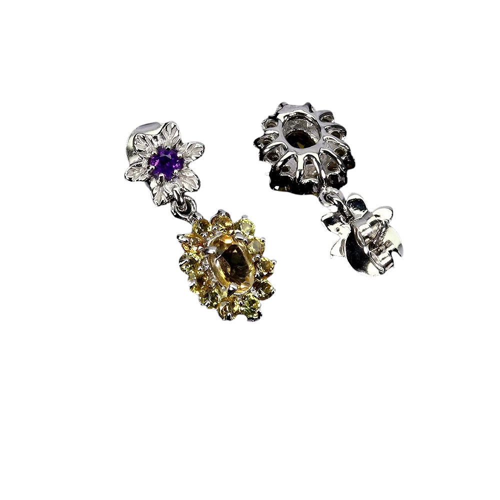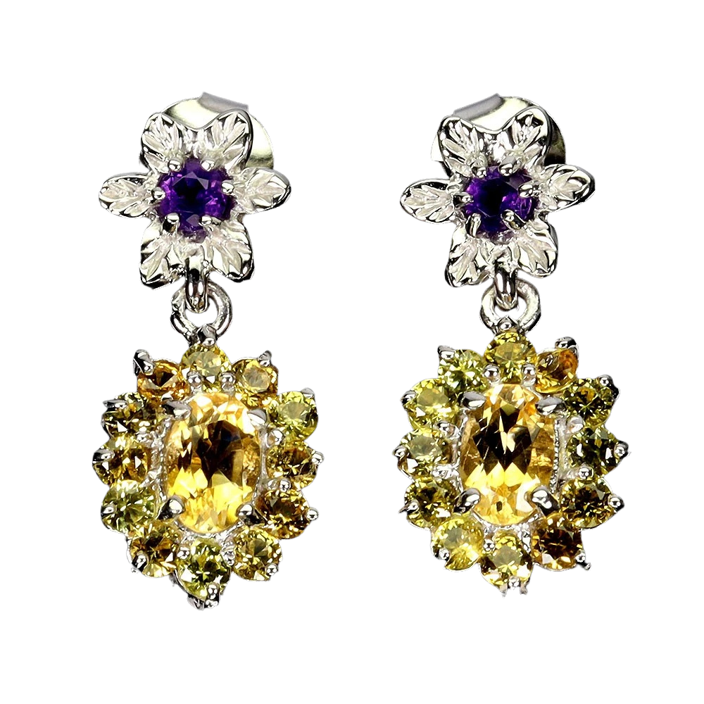 Bijuterii argint,: Cercei argint, 925, aurit cu aur alb de 14k, cu pietre naturale: citrin si granat.