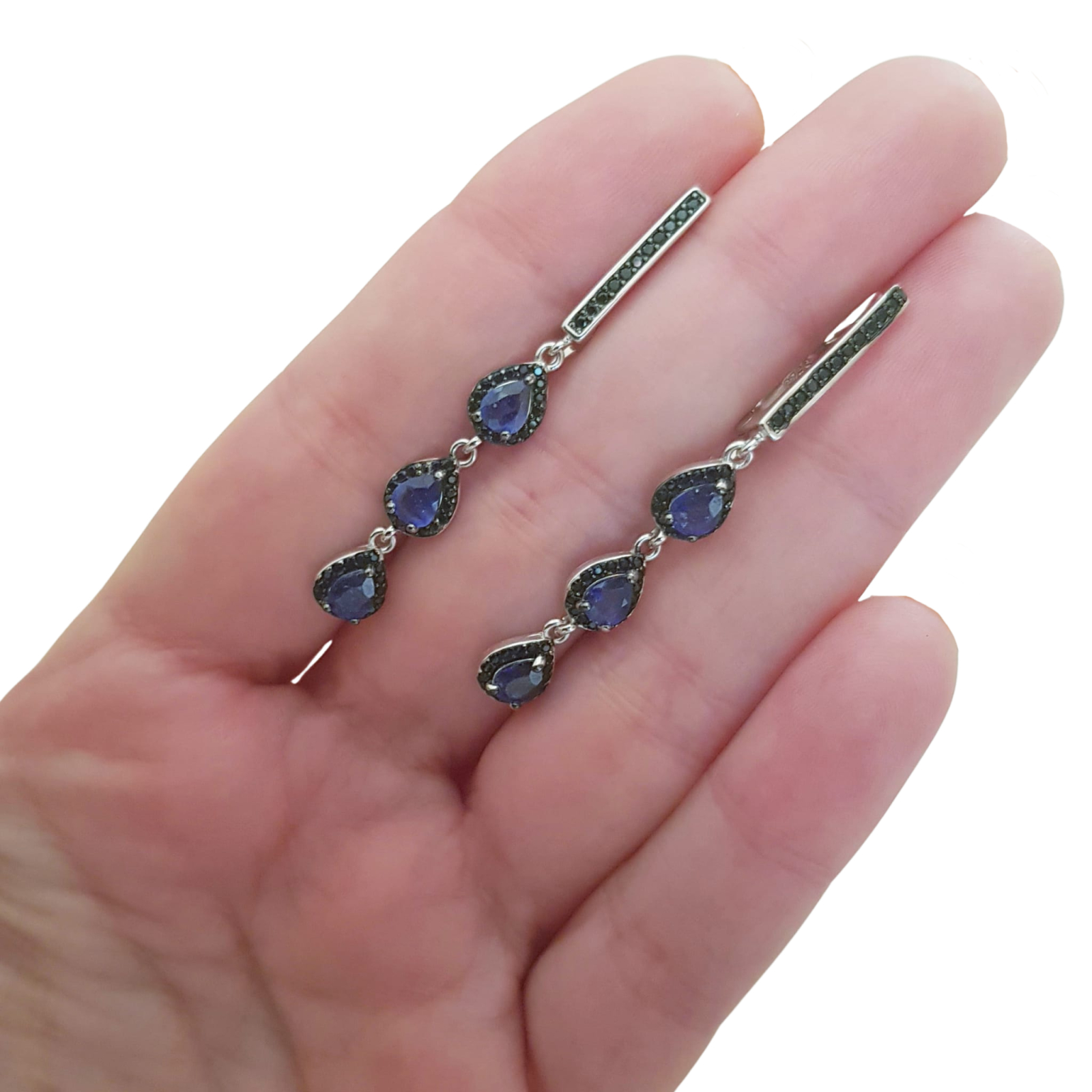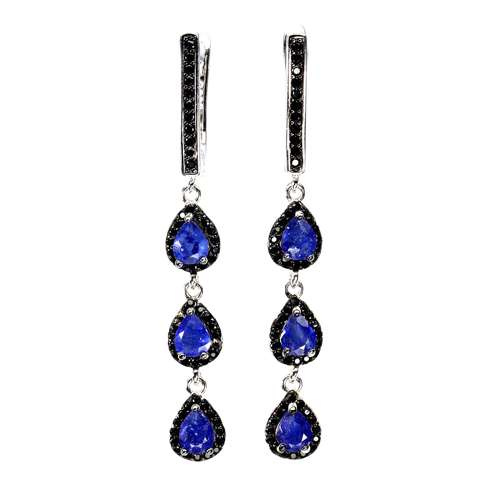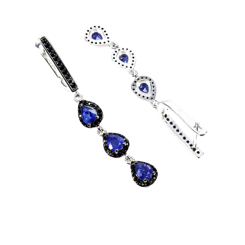 Bijuterii argint,: Cercei argint, 925, aurit cu aur alb de 14k, cu pietre naturale: safir si spinel.