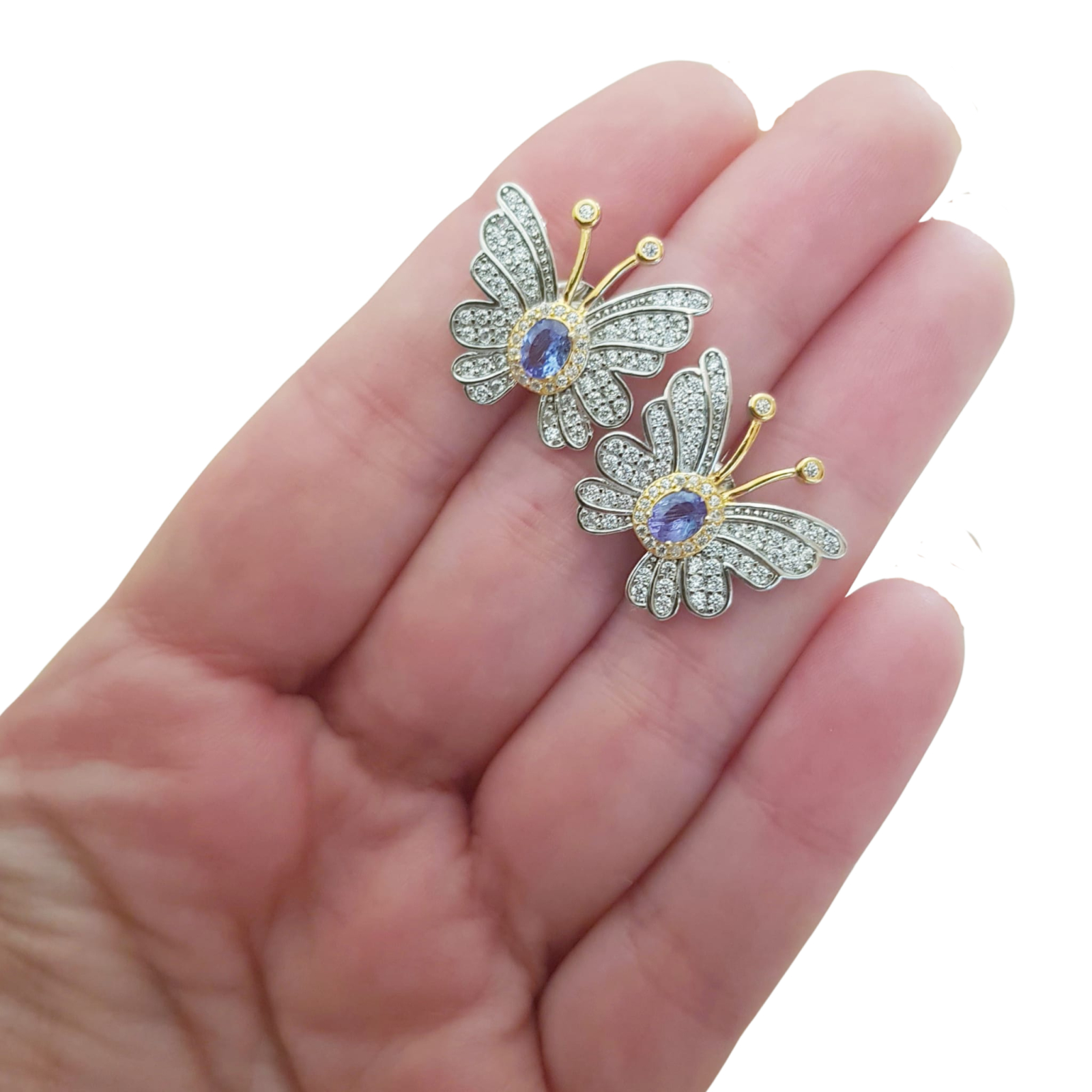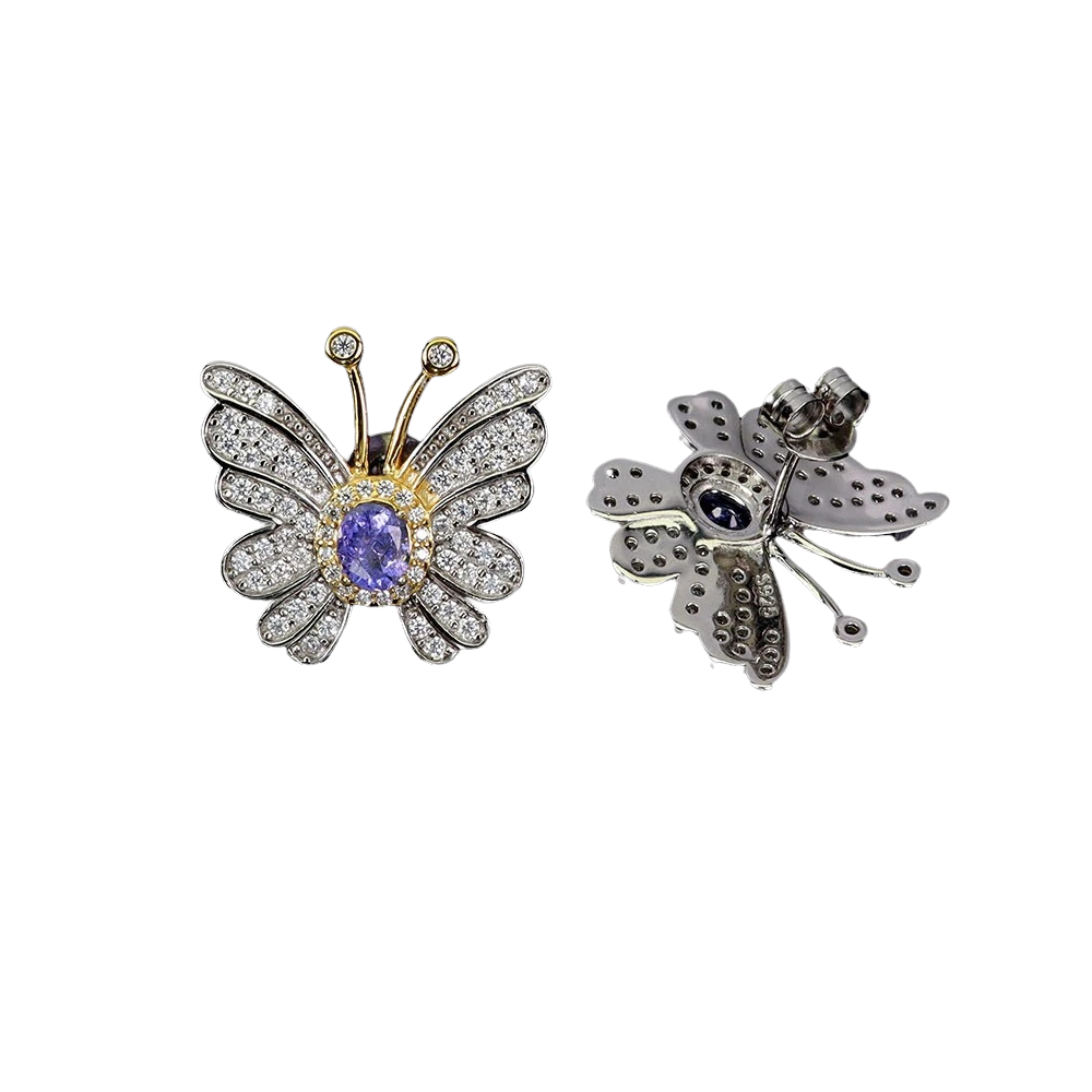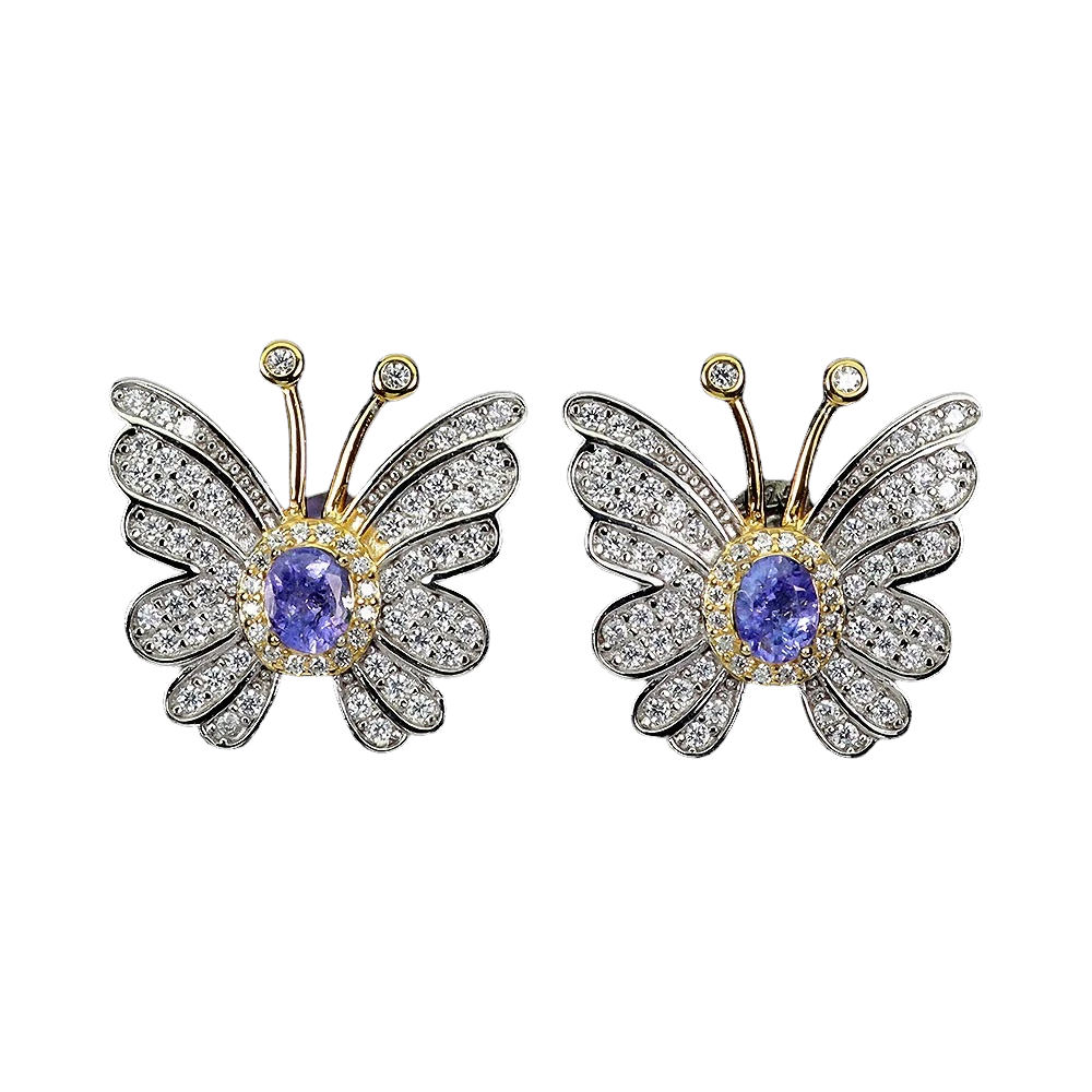 Bijuterii argint,: Cercei argint 925, aurit cu aur alb si galben de 14k, cu pietre naturale: tanzanit; cz.