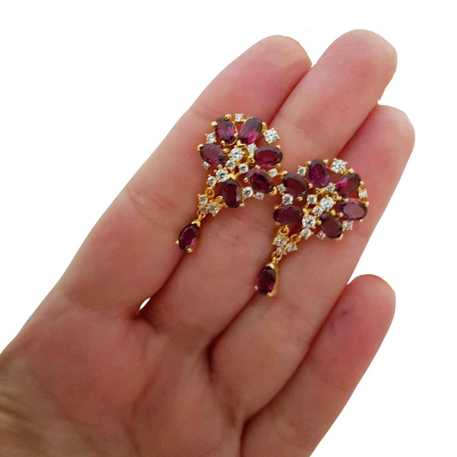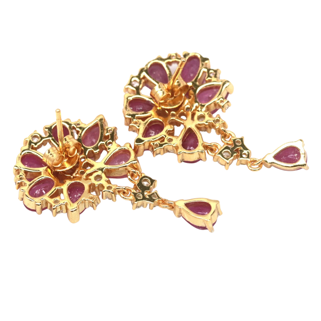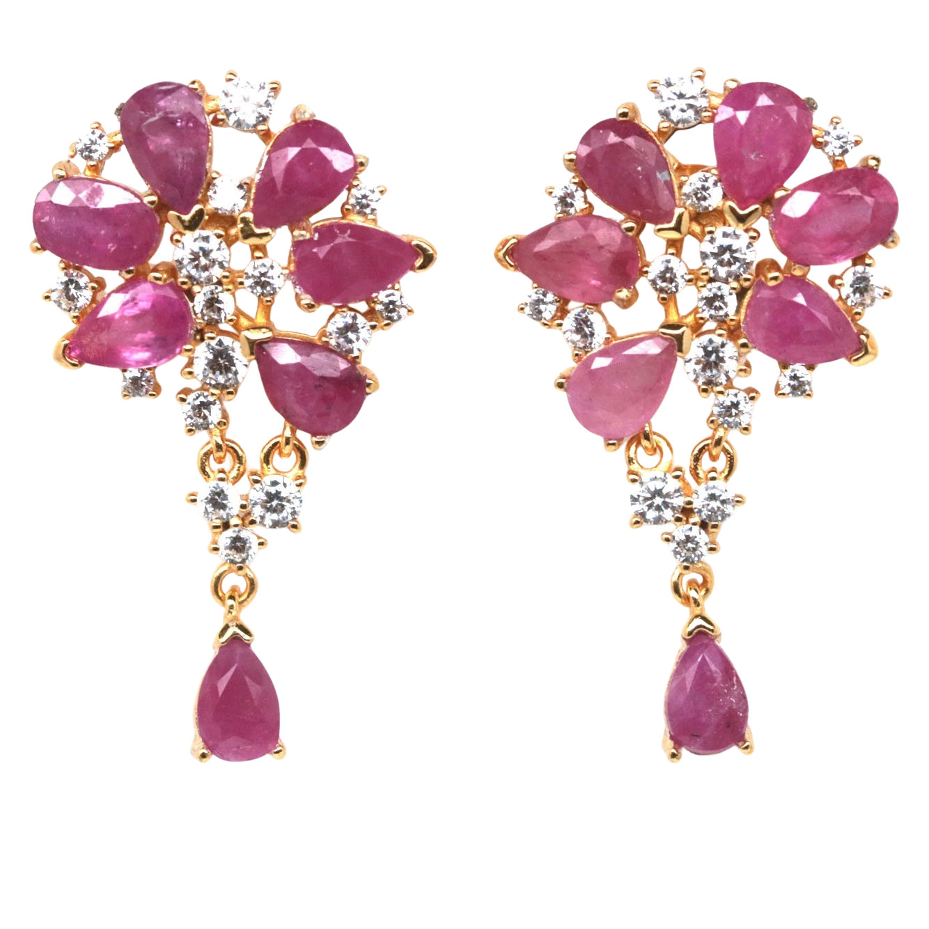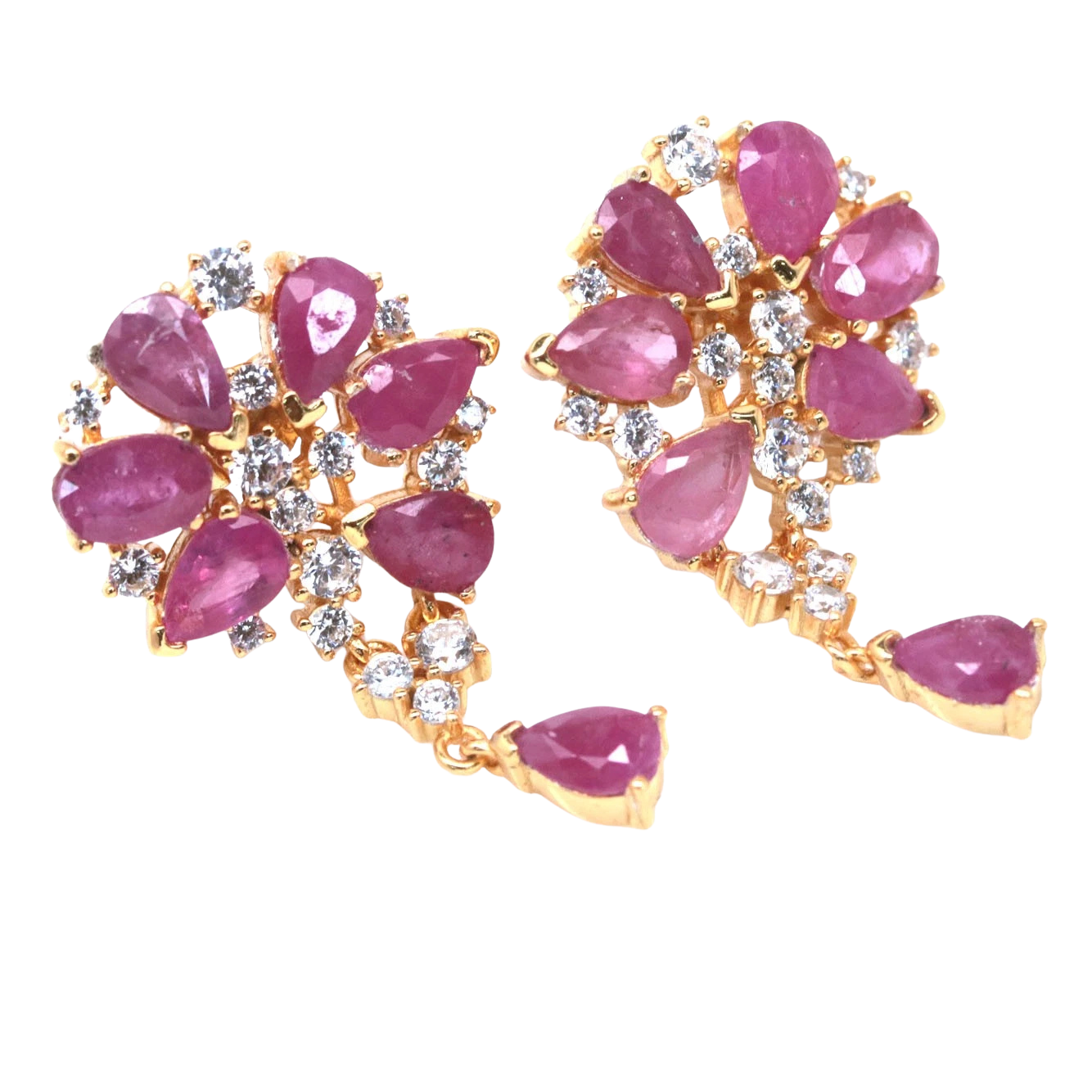 Bijuterii argint,: Cercei argint, 925, aurit cu aur galben de 14k, cu pietre naturale: rubin; cz.