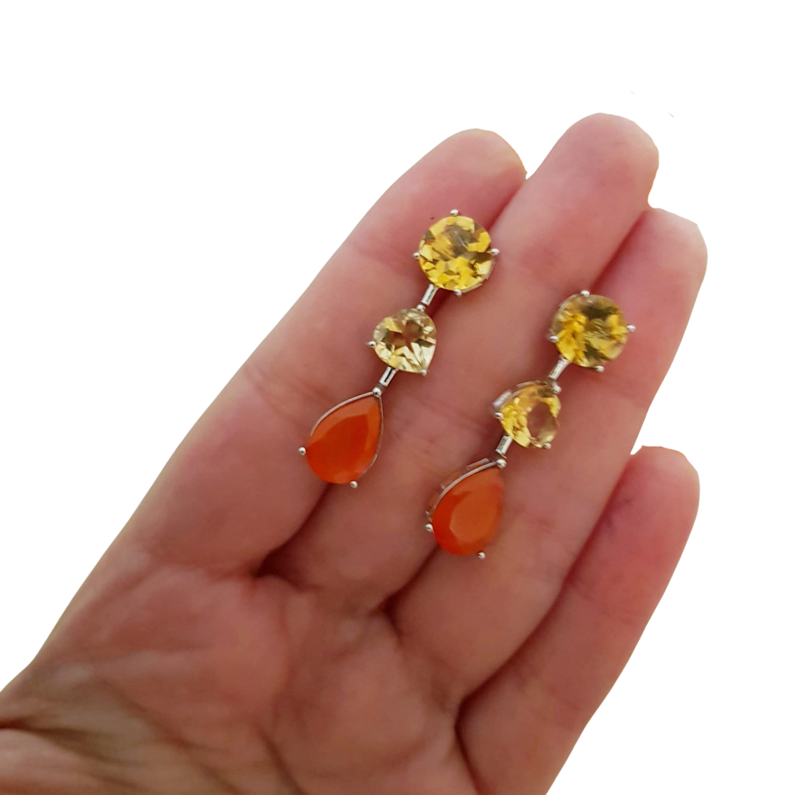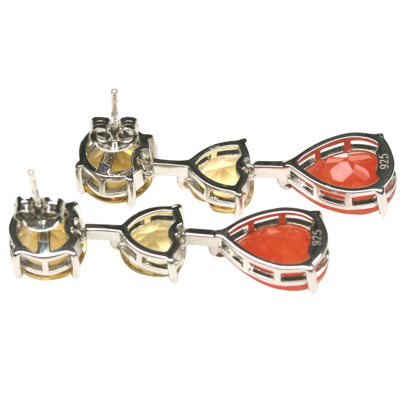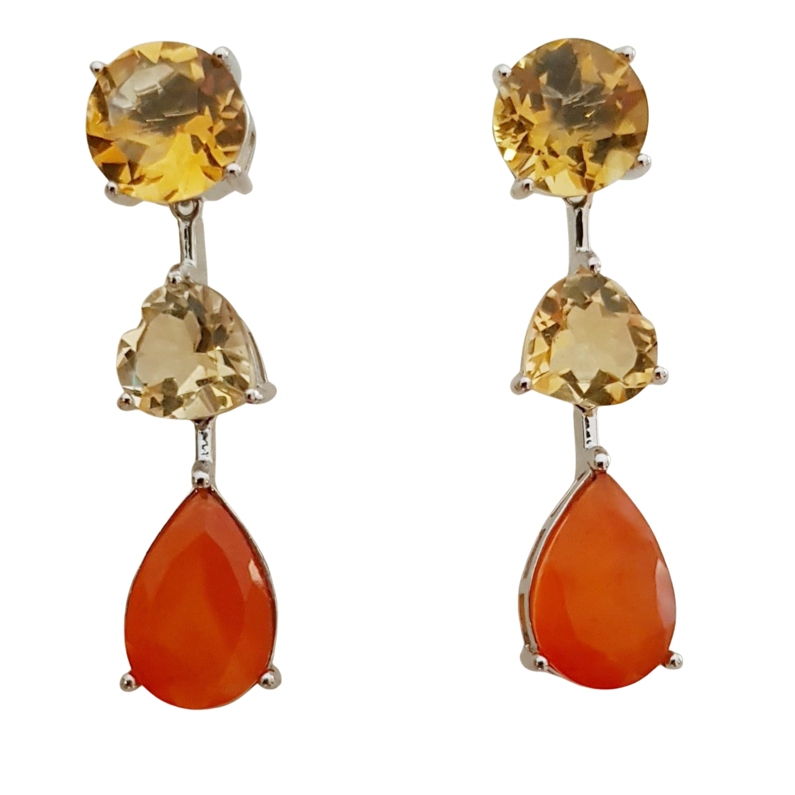 Bijuterii argint,: Cercei argint, 925, aurit cu aur alb de 14k, cu pietre naturale: carneol si citrin.