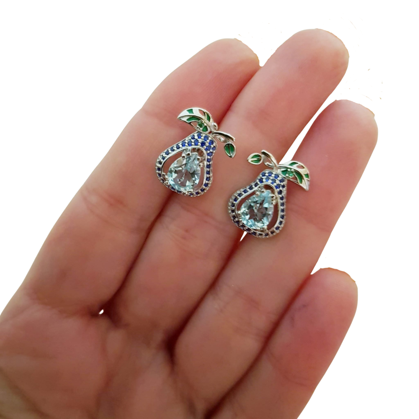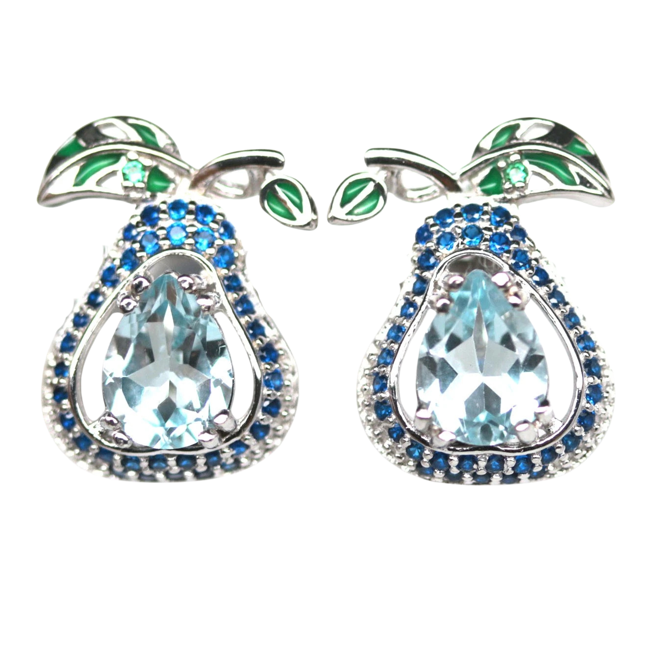 Bijuterii argint,: Cercei argint, 925, aurit cu aur alb de 14k, cu pietre naturale: topaz; cz si email.