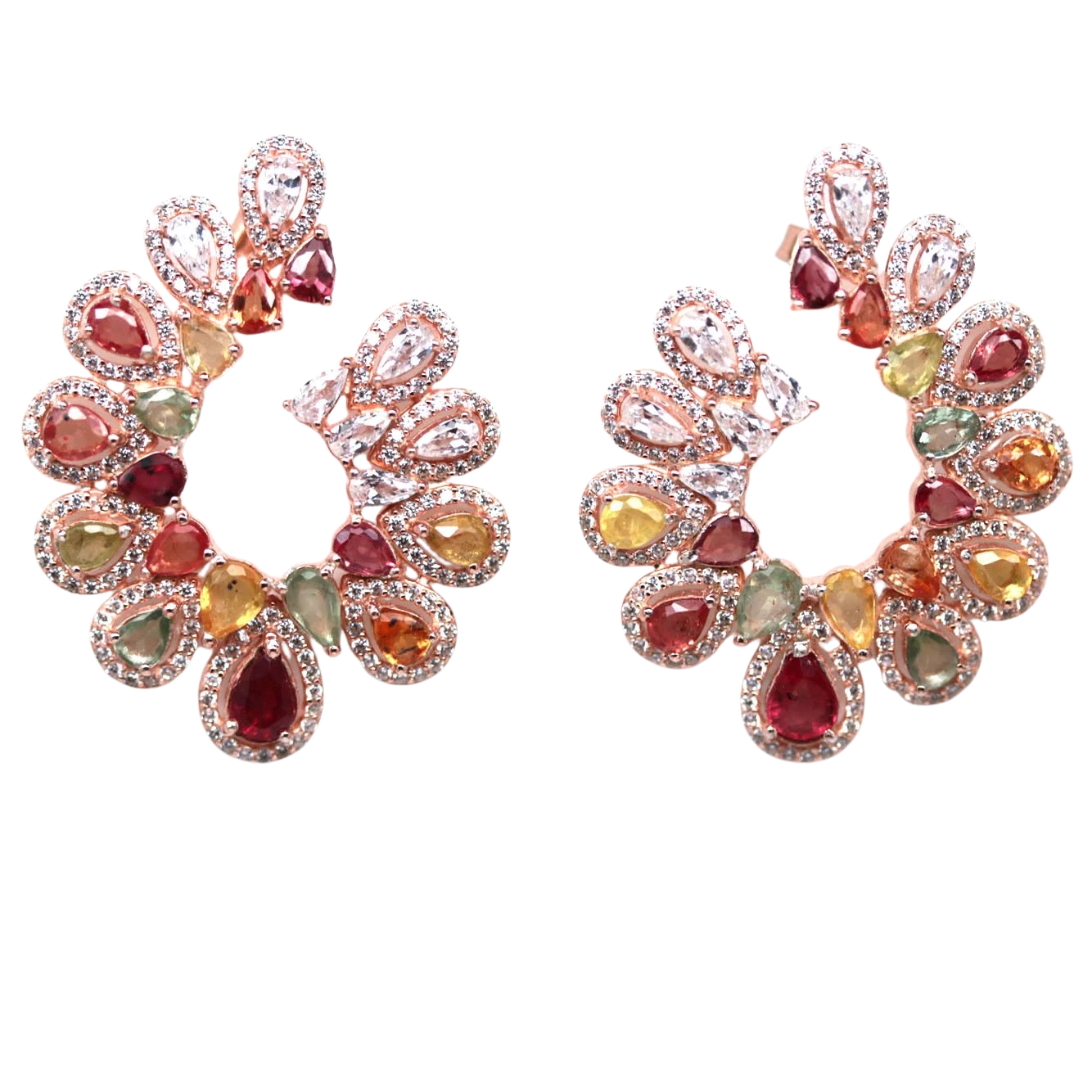 Bijuterii argint,: Cercei argint 925, aurit cu aur roz de 14k, cu pietre naturale: safir multicolor (fancy).