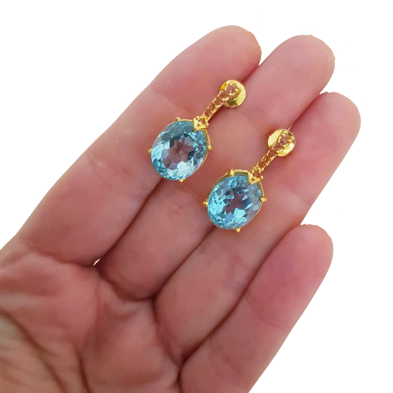 Bijuterii argint,: Cercei argint, 925, aurit cu aur galben de 14k, cu pietre naturale: topaz si granat.