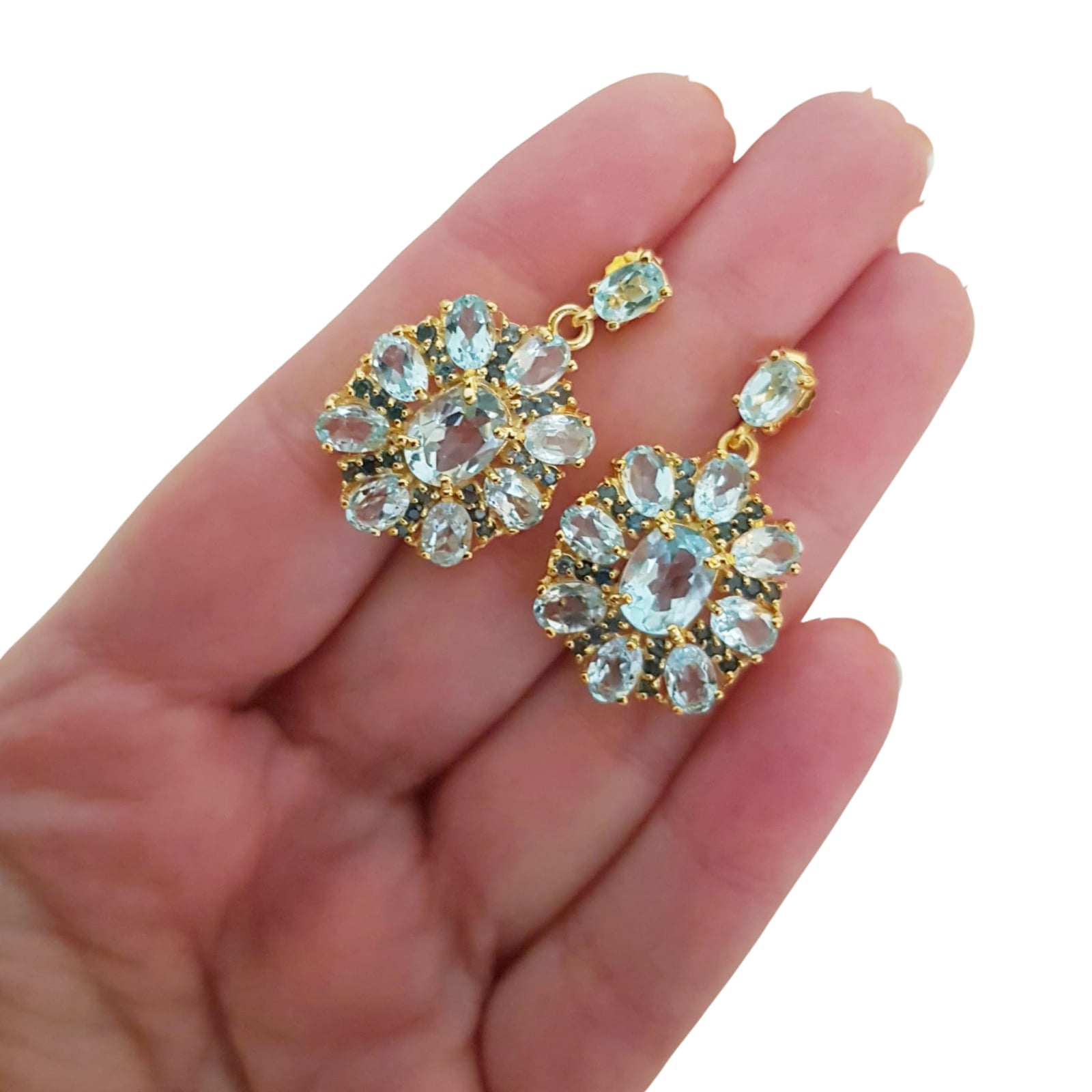Bijuterii argint,: Cercei argint, 925, aurit cu aur galben de 14k, cu pietre naturale: topaz si safir.