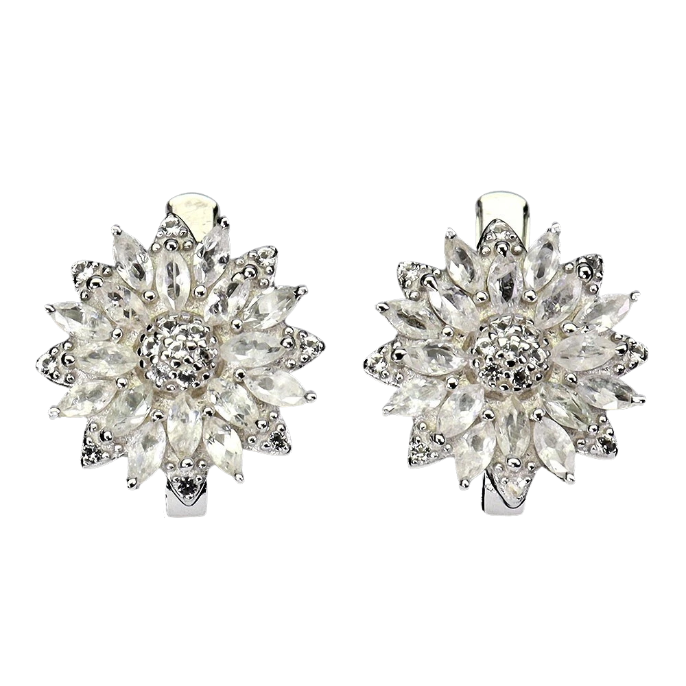 Bijuterii argint,: Cercei argint, 925, aurit cu aur alb de 14k, cu pietre naturale: safir alb.