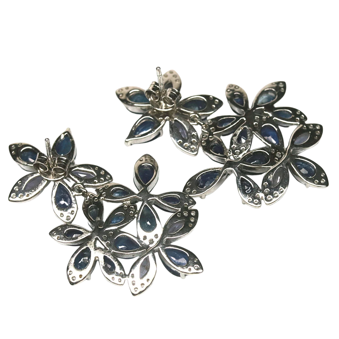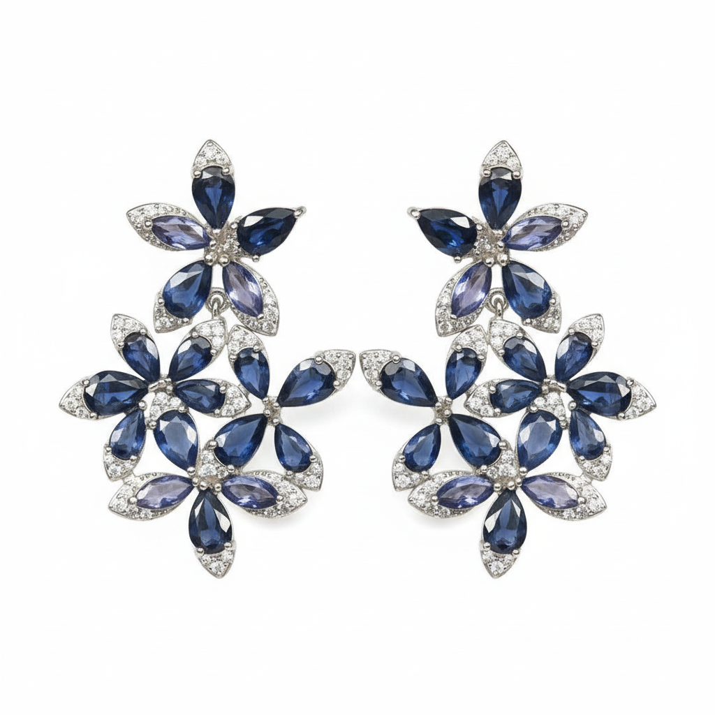 Bijuterii argint,: Cercei argint, 925, aurit cu aur alb de 14k, cu pietre naturale: safir si tanzanit; cz.