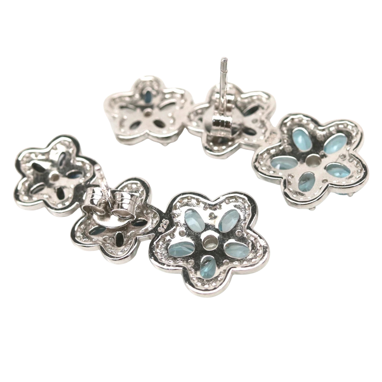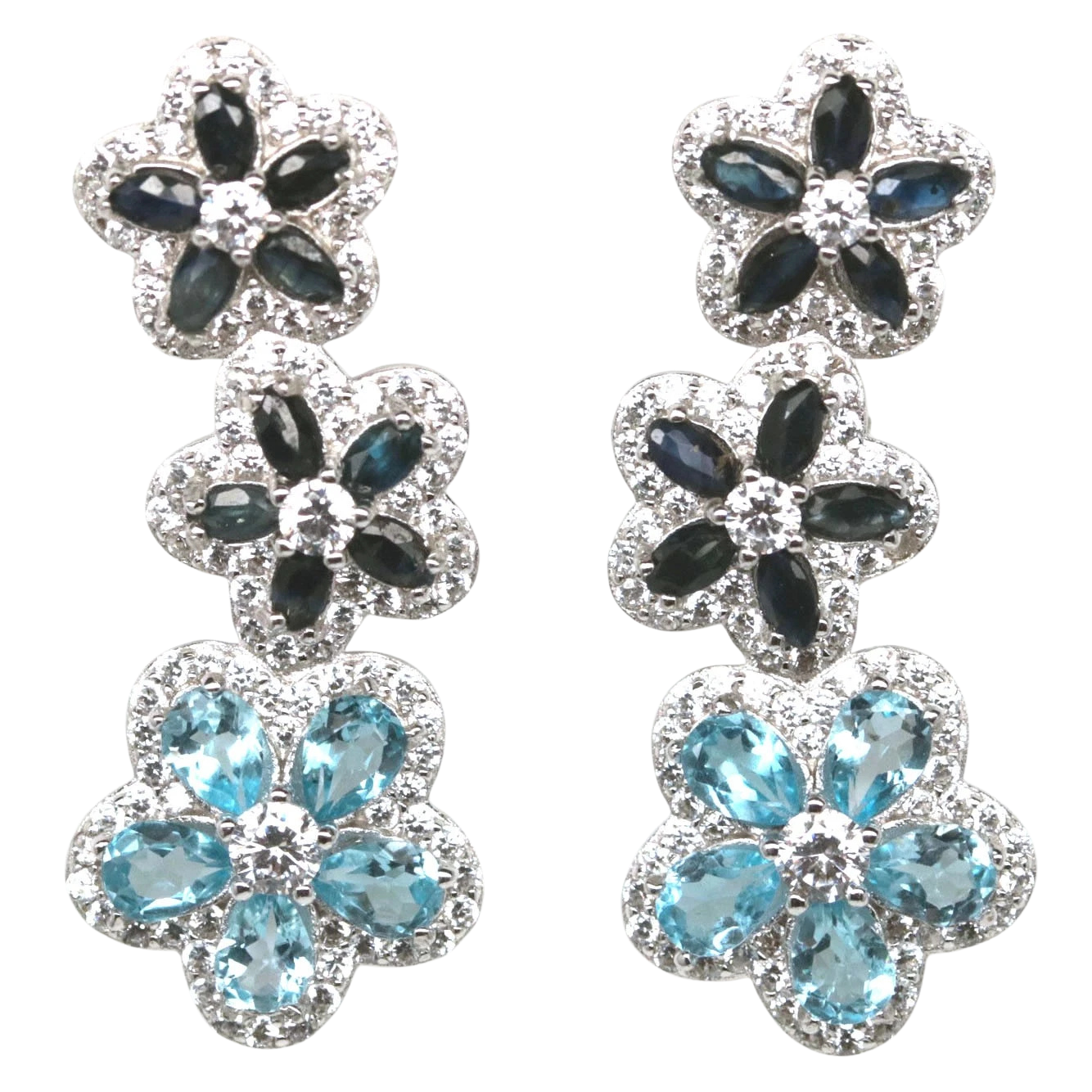 Bijuterii argint,: Cercei argint, 925, aurit cu aur alb de 14k, cu pietre naturale: topaz si safir; cz.