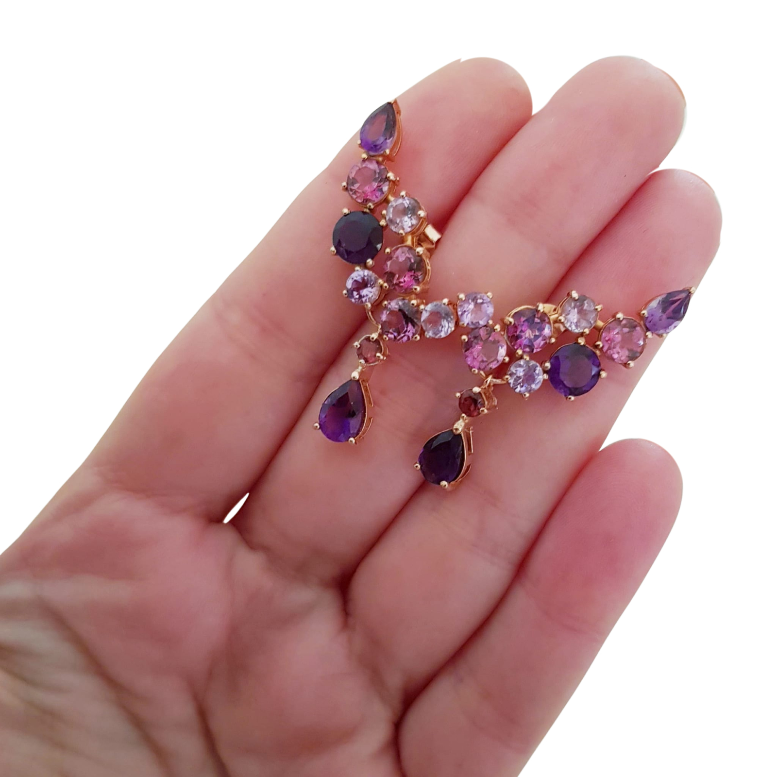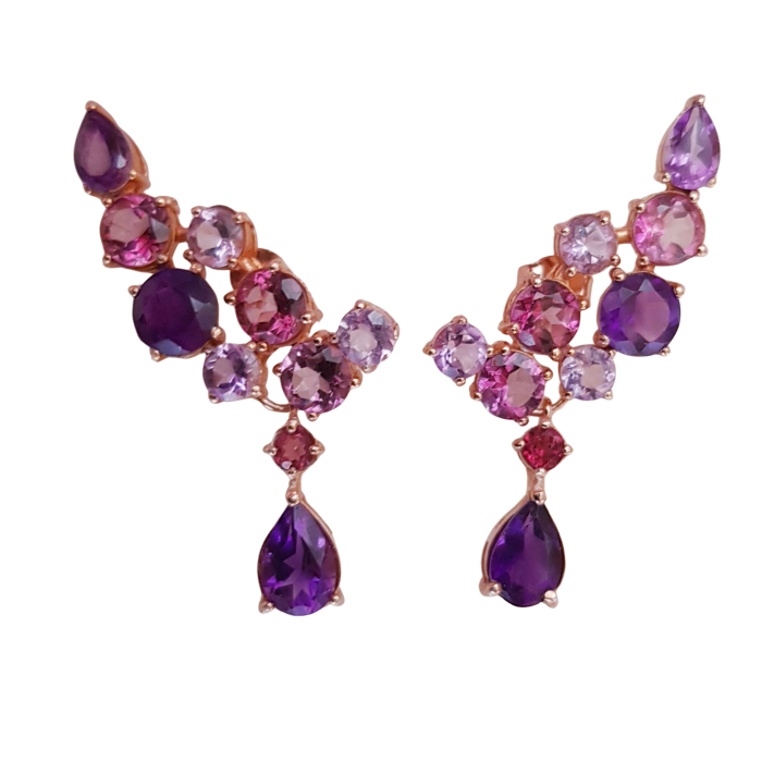 Bijuterii argint,: Cercei argint, 925, aurit cu aur roz de 14k, cu pietre naturale: ametist si topaz (trat.).