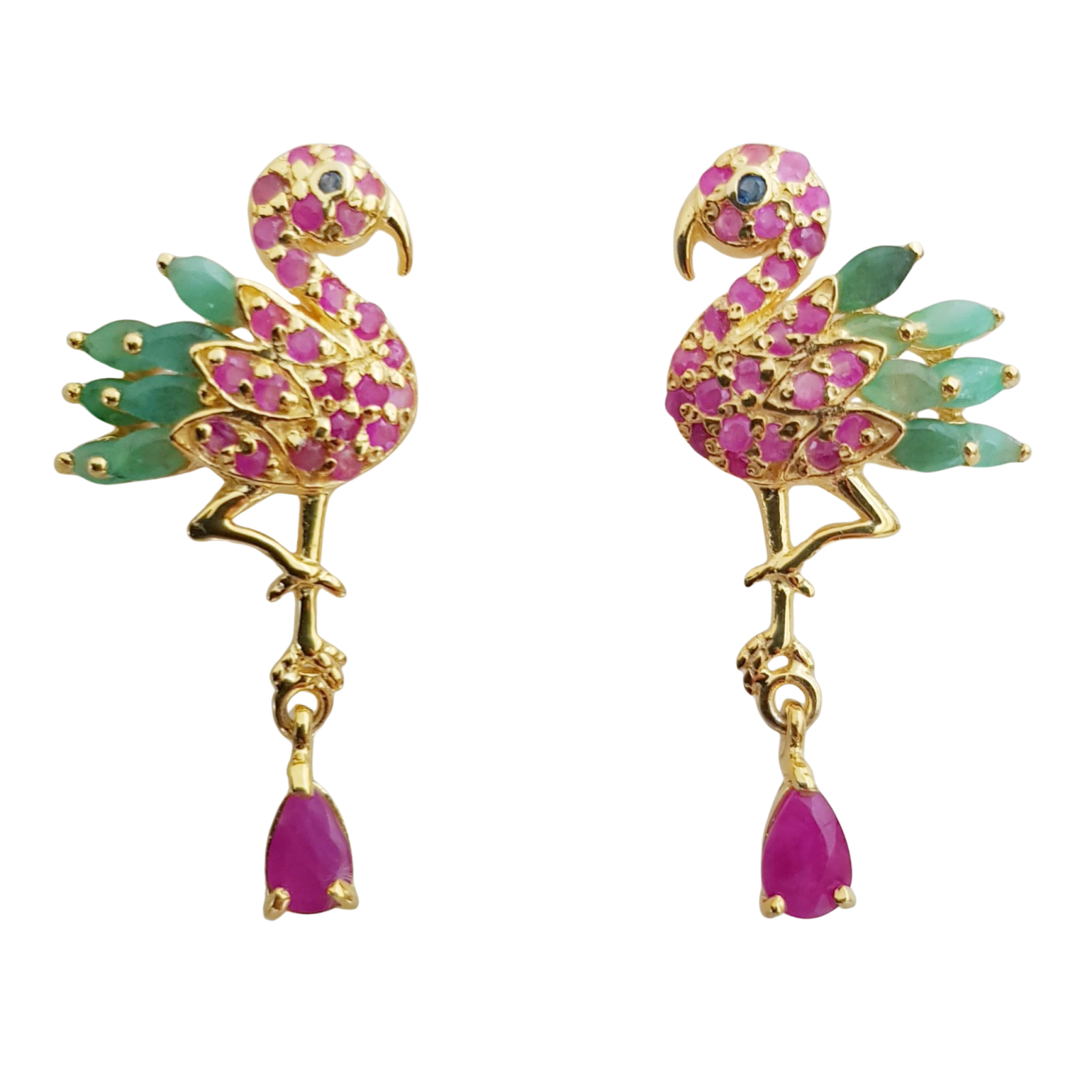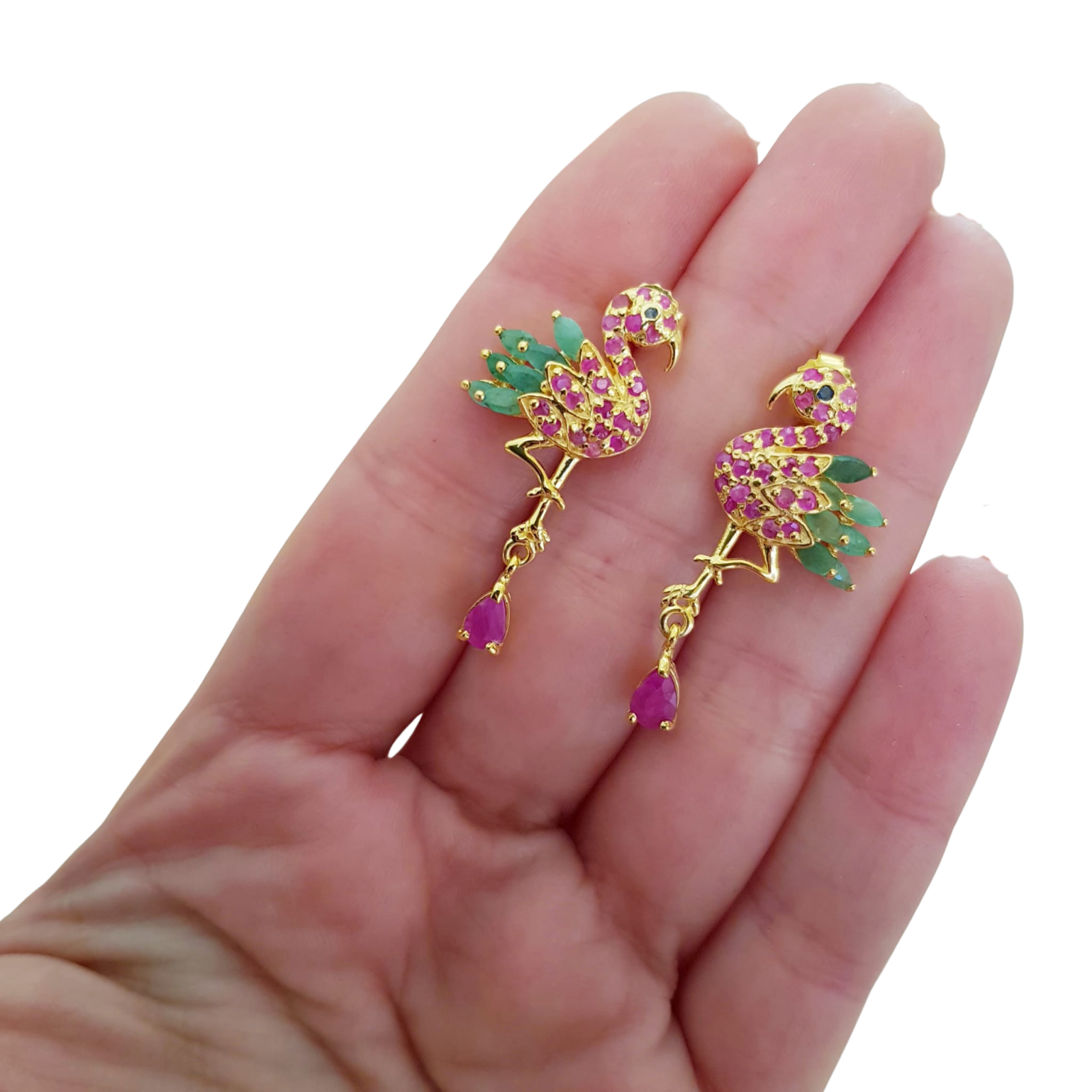 Bijuterii argint,: Cercei argint, 925, aurit cu aur galben de 14k, cu pietre naturale: rubin, smarald si safir.
