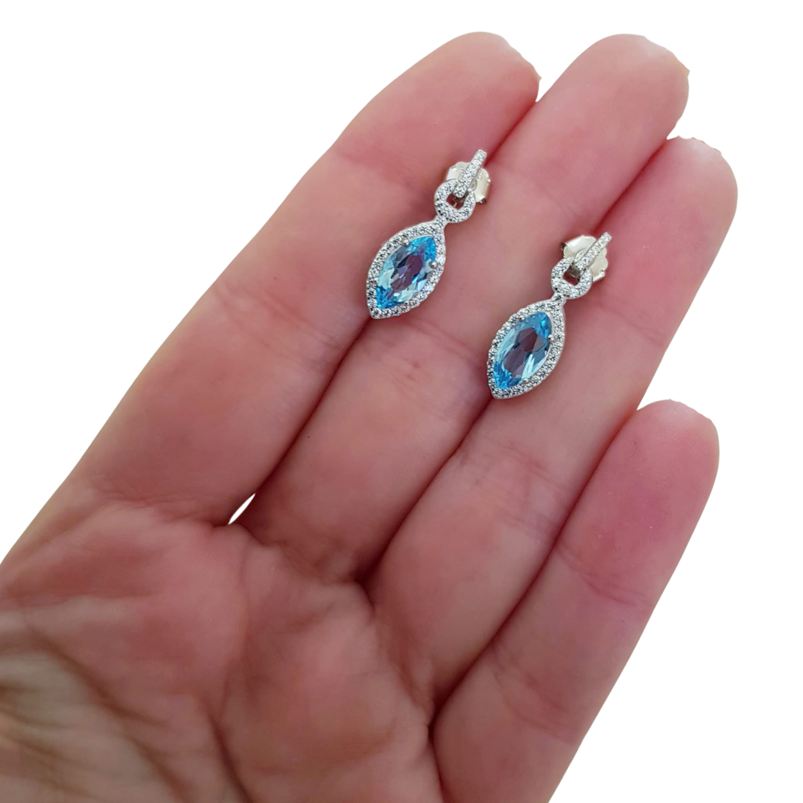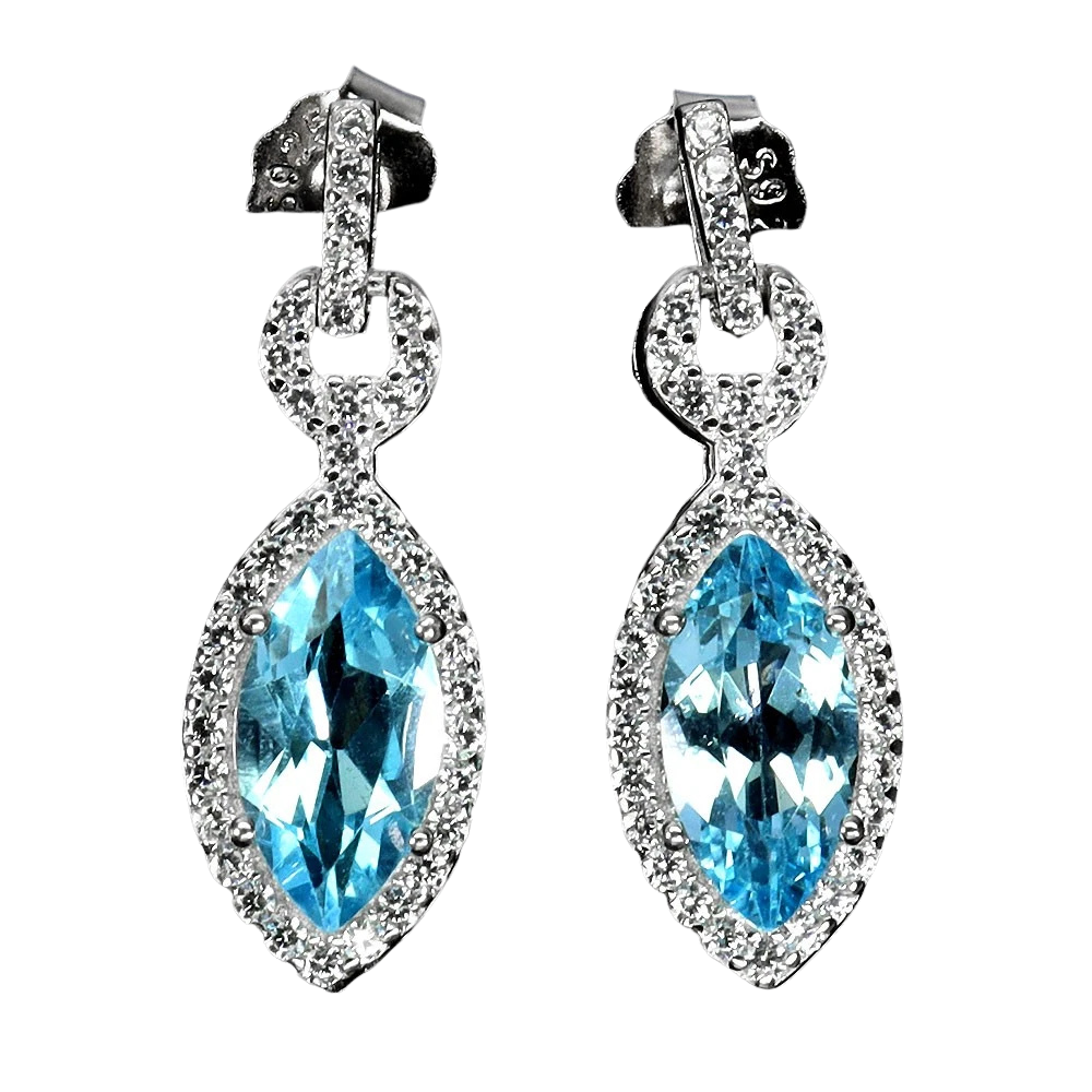 Bijuterii argint,: Cercei argint, 925, aurit cu aur alb de 14k, cu pietre naturale: topaz; cz.