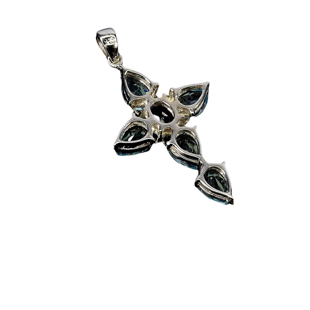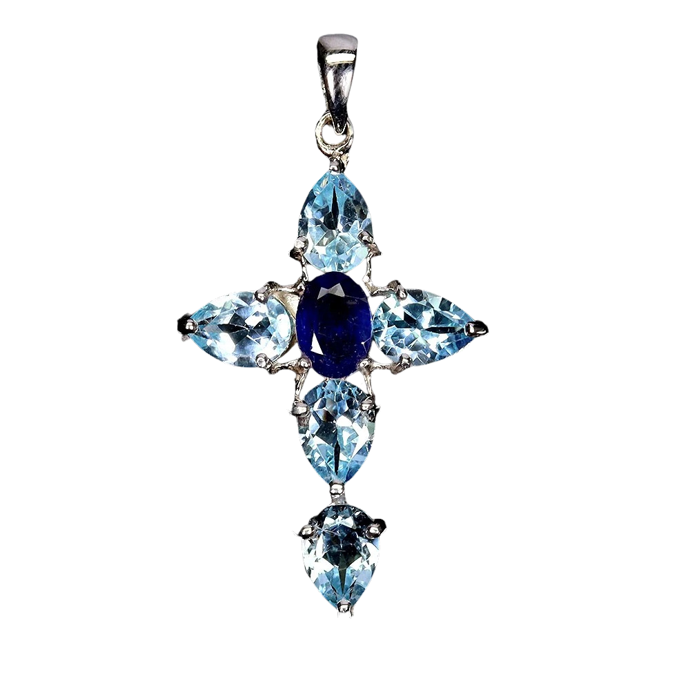 Bijuterii argint,: Pandantiv argint 925 aurit cu aur alb de 14 k cu pietre naturale: topaz si safir.