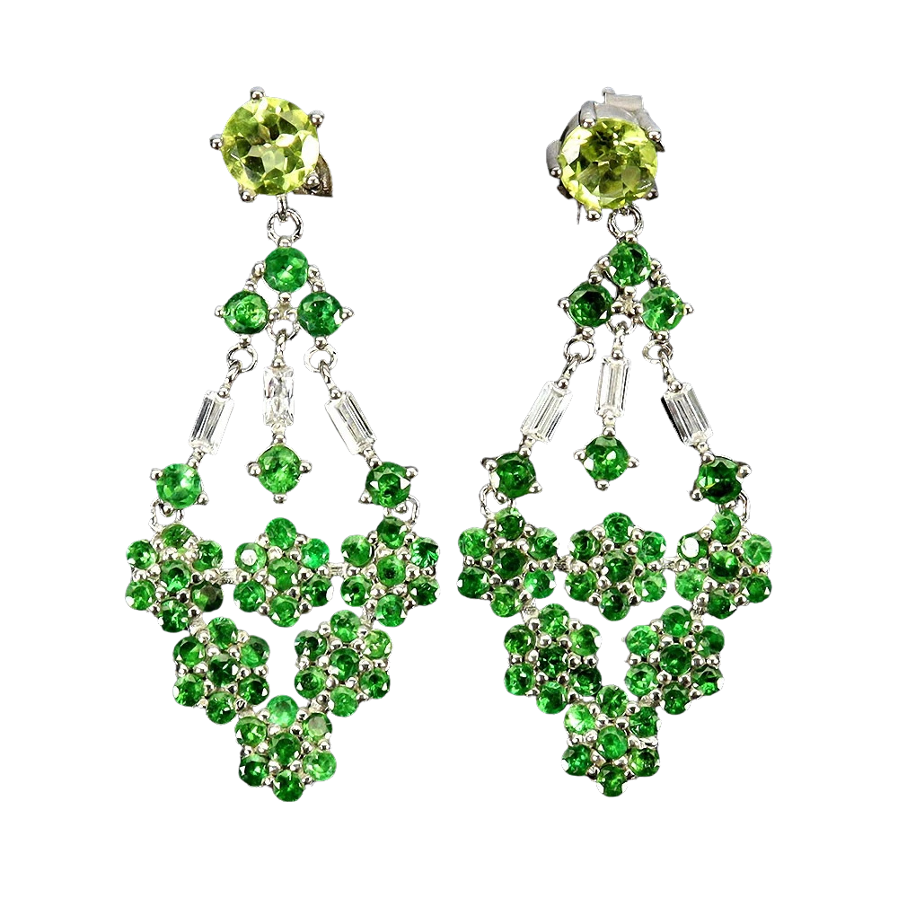 Bijuterii argint,: Cercei argint, 925, aurit cu aur alb de 14k, cu pietre naturale: tsavorit si peridot; cz.